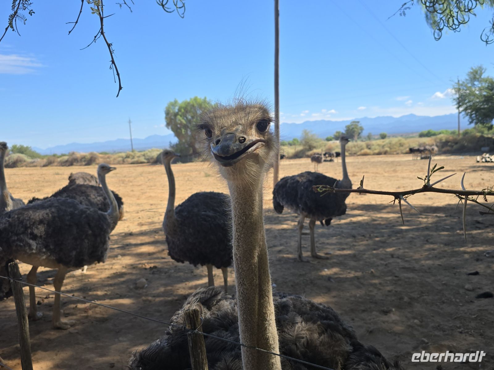 – Ein neuer Reisetag beginnt, und wie könnte man ihn besser starten als mit einem stärkenden Frühstück auf der Terrasse? Gesund und energiereich – also genau das, was wir brauchen, um uns den kommenden Abenteuern zu stellen. Koffer verladen, rein ins Fahrzeug – los geht’s! Oder auch nicht. Denn weit kommen wir erstmal nicht, bevor wir in Oudtshoorn einen Stopp einlegen.