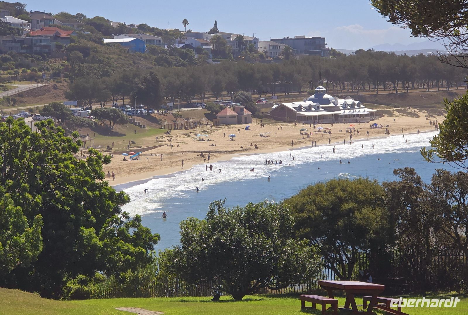 Genug Hitze, Staub und Federn – Zeit für frische Meeresluft! Wir fahren zurück an die Küste in den Badeort Knysna, vorher haben wir allerdings die Chance bei einem Picknick unsere Füsschen in den indischen Ozean zu tauchen und einen kleinen Strandspaziergang zu machen in Wilderness. Im Hotel kurz erstmal ausruhen und dann ein kleiner Spaziergang führt uns zur Waterfront, wo wir uns auf ein entspanntes Dinner freuen. Doch Entspannung? Fehlanzeige! Auf einer großen Leinwand läuft ein Fußballspiel, und die Fans toben, als säßen sie mitten im Stadion. Die Stimmung? Hochgekocht! Das Essen? Zum Glück genauso gut wie die Atmosphäre – und somit ein perfekter Abschluss eines ereignisreichen Tages.