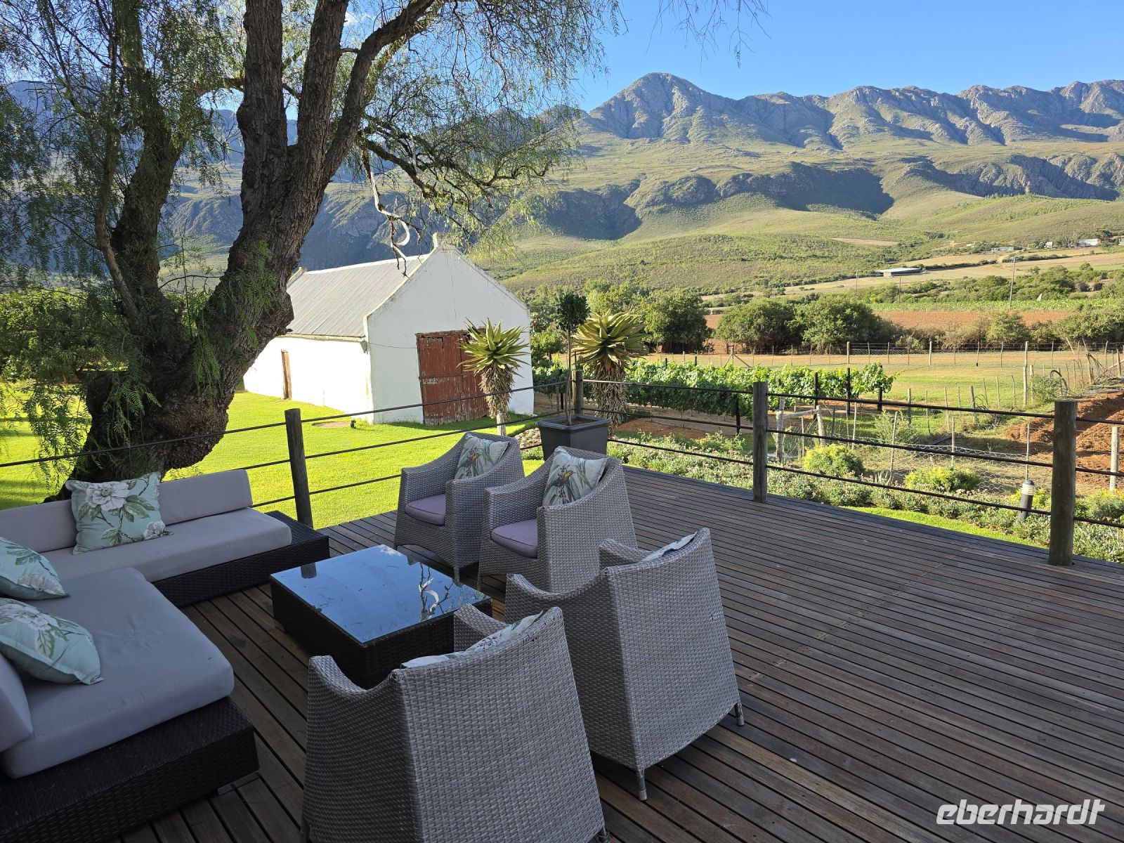 Dann hieß es: Weiterfahrt ins Landesinnere. Vorbei an der Straußenhauptstadt **Oudtshoorn** führte uns unser Weg zum idyllischen **Swartberg Manor House**, unserer luxuriösen Unterkunft für die Nacht. Dort angekommen, erwartete uns ein **leckeres Willkommensgetränk** auf der wundervollen Terrasse mit Blick in die weite Natur – Entspannung pur!