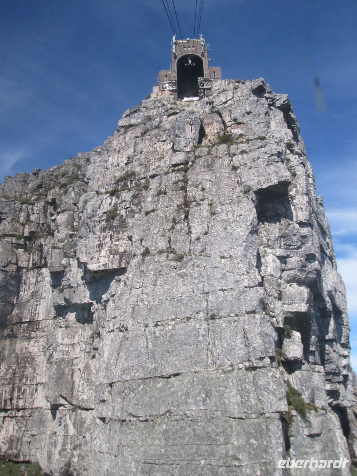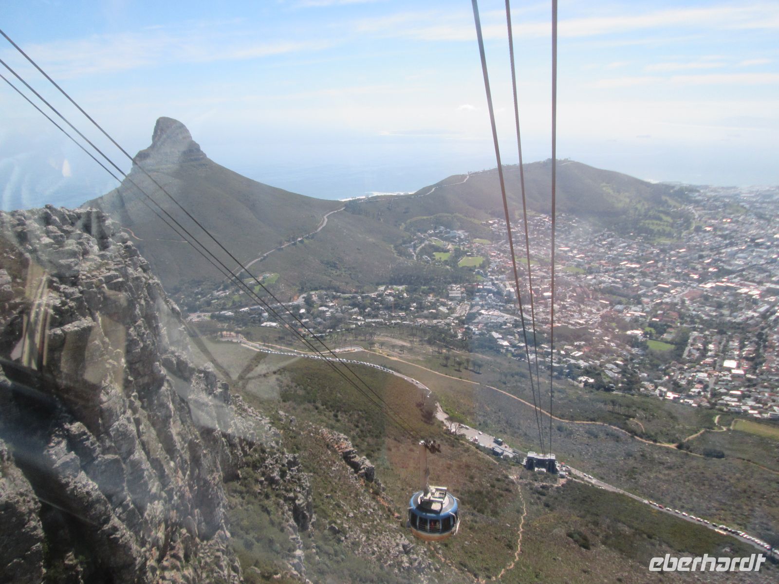 Die ca. 25 Minuten Fahrzeit vom "Cape Town International Airport" bis zur Talstation der Gondel am Tafelberg fuhr unser Chauffeur Kashief souverän. Ohne Anstehen, was sonst immer der Fall ist, waren wir auch schon nach dem Ticketkauf in der Gondel. Diese drehte sich, so dass alle Besucher einen wunderbaren Rundumblick genießen konnten.