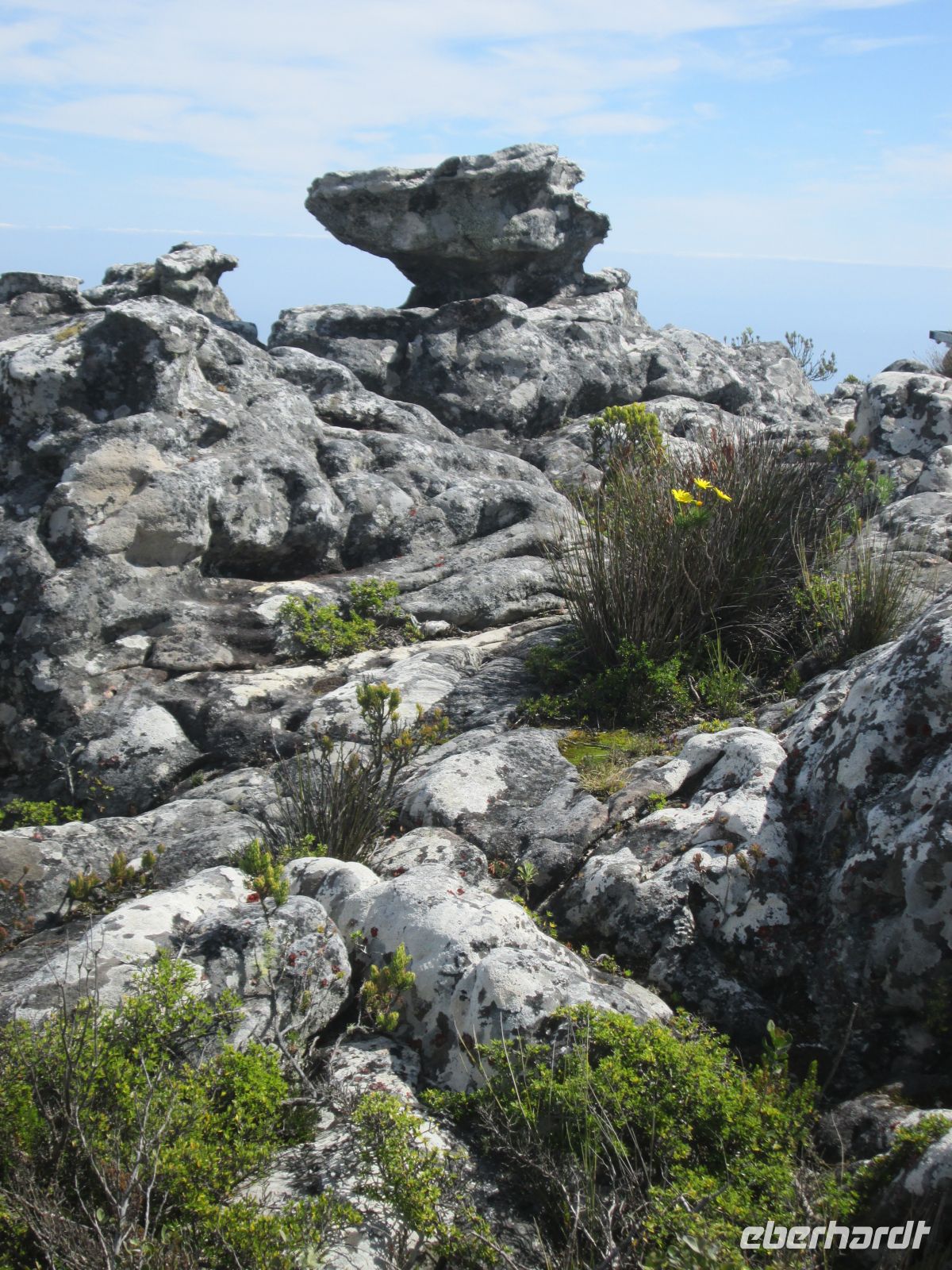 In unserer Freizeit auf dem Gipfel konnten wir immer wieder die wunderbare Aussicht genießen und auf dem Rundwanderweg die ersten tollen Fotos machen. Unterwegs begrüßten uns die trolligen Klippschliefer und viele Kolibris, die, so konnte man glauben, uns ein Willkommenslied trällerten. Willkommen in Kapstadt! Willkommen in Südafrika!