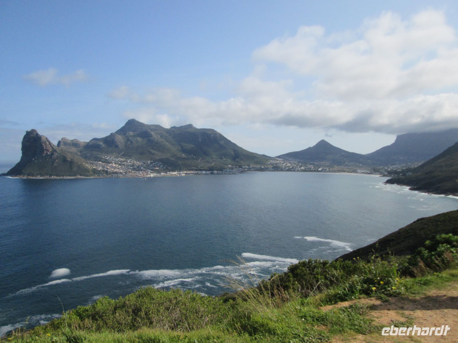 Der Atlantik versprühte noch einen zarten Morgennebel, als wir unseren ersten Fotostopp an Maidens Cove einlegten, bevor die Fahrt Richtung Hout Bay führte. Fakultativ nahmen wir an einer Bootstour zu Seal Island/ Duiker Island teil. Hunderte von Robben tummeln sich auf dem relativ kleinen Eiland, was Schutzgebiet ist. Noch den etwas strengen Geruch in der Nase, ging es zur anderen Seite zum Chapmans Peak Drive. Diese Küstenstraße wurde im Mai 1922 eröffnet und führt von der Hout Bay nach Noordhoek. König Albert war der erste, der diese Straße befahren durfte. Heute ist Chapmans Peak Drive mautpflichtig und kostet für einen Bus 668 ZAR, was etwa 32 € entspricht. Herrliche Ausblicke, begleitet von Sonnenschein und einer einzigartigen Farbpalette von Meer, Felsen und Vegetation entlockte uns immer wieder ein "wow" oder "oh".