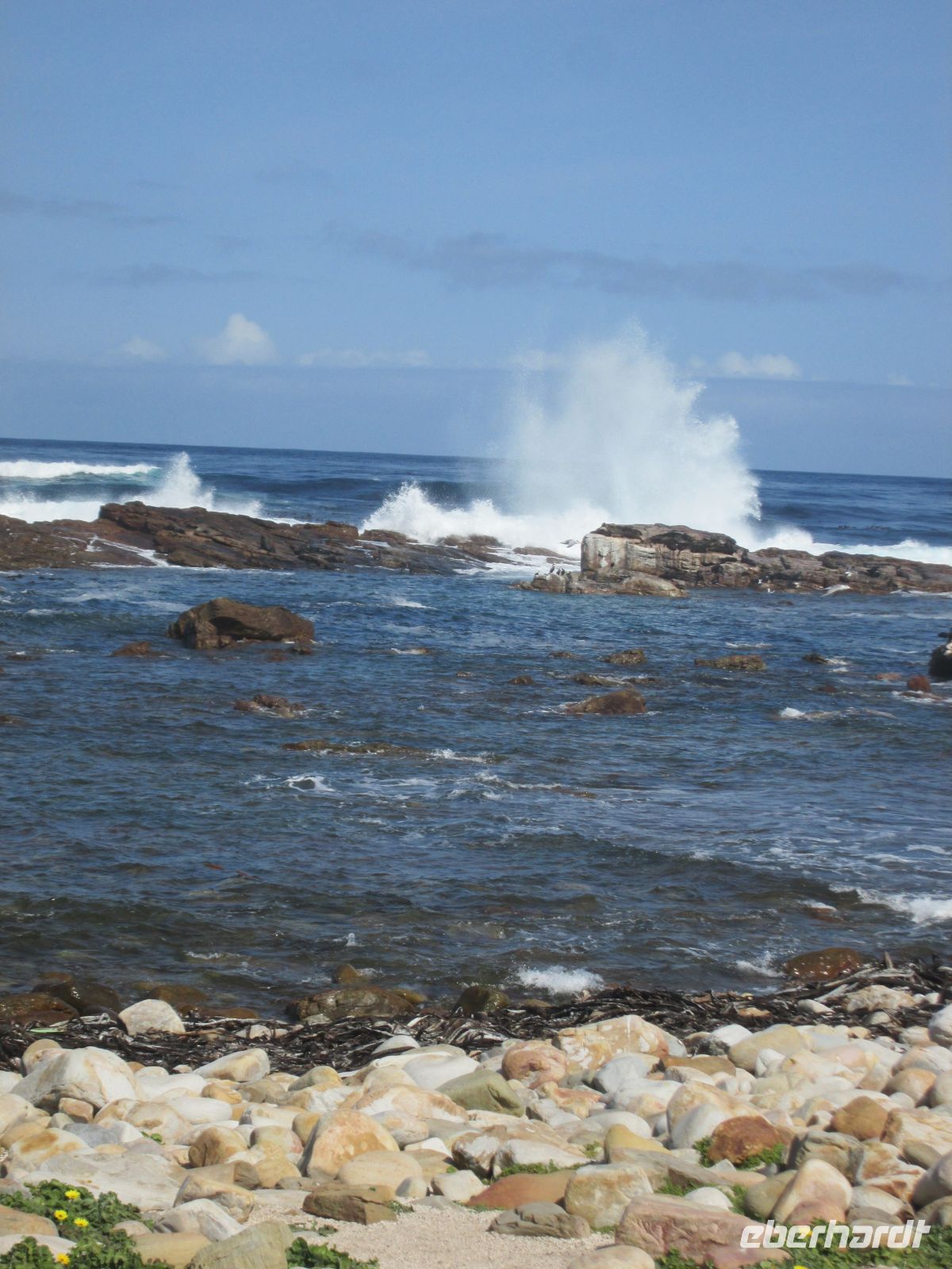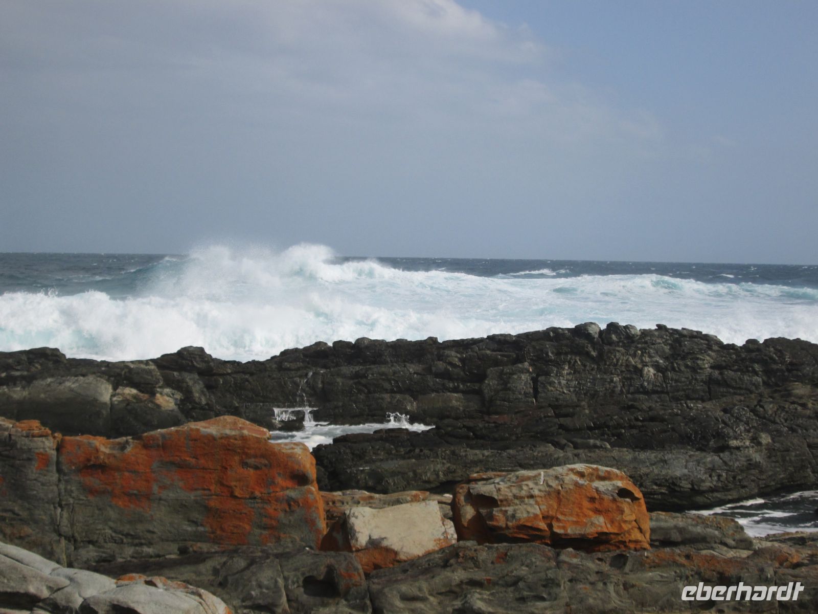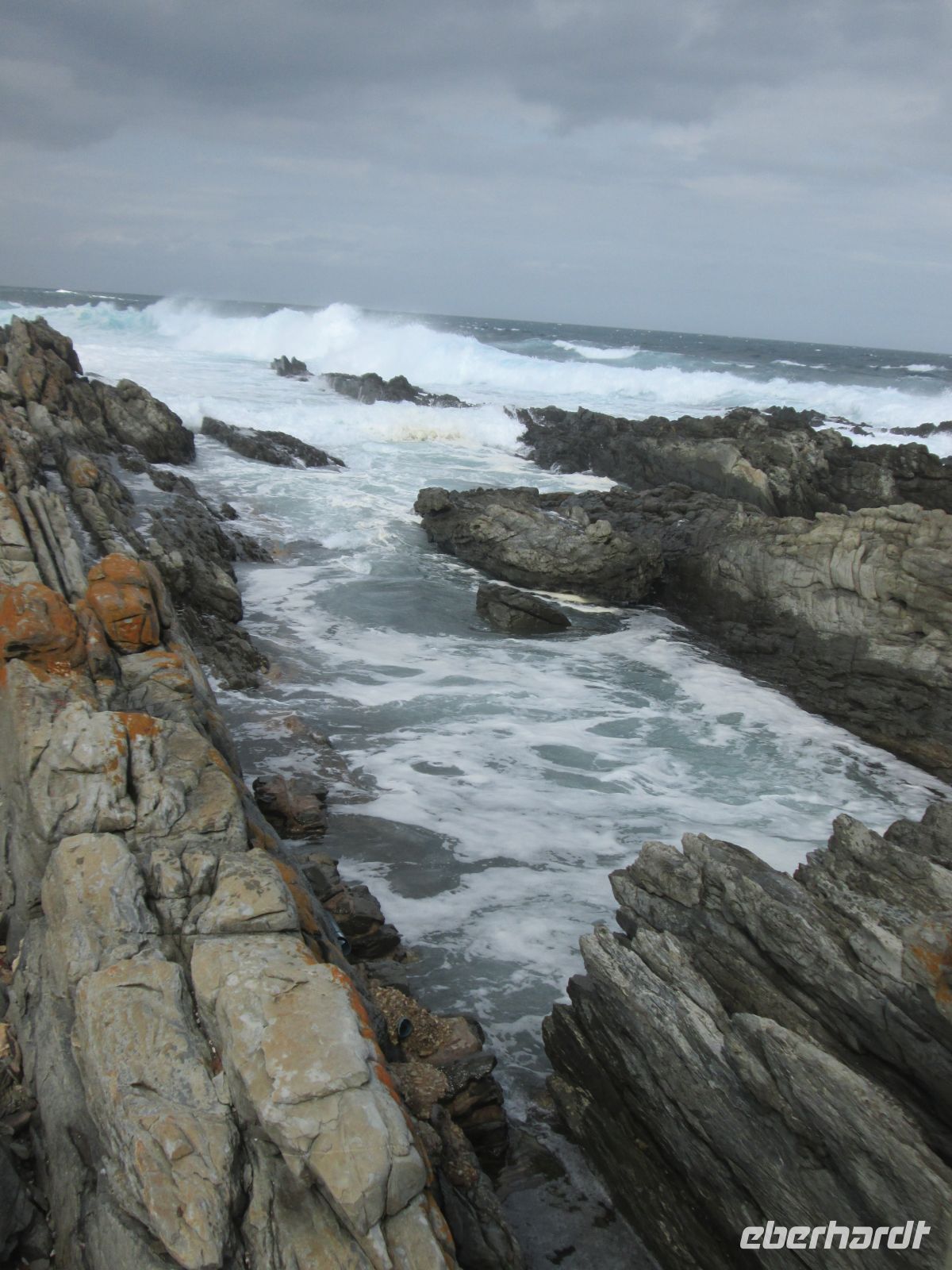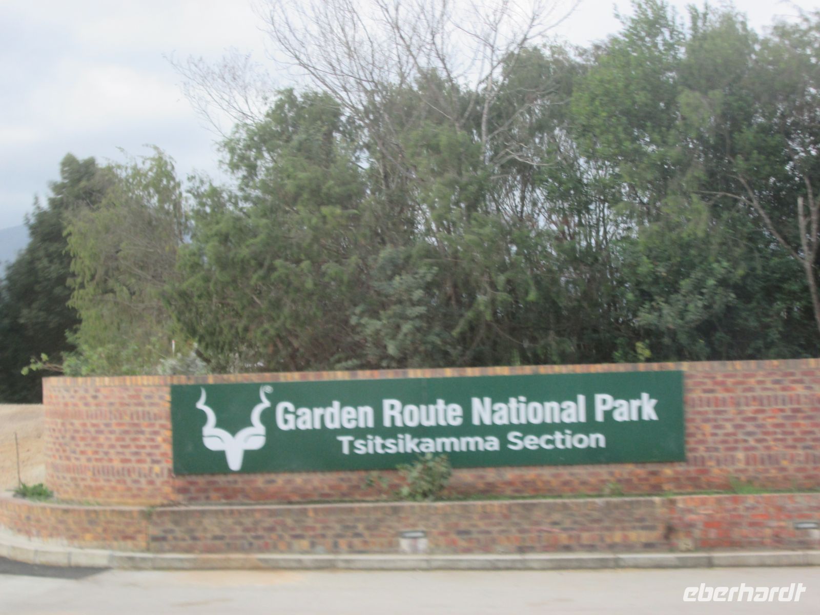 Weiter ging es in den Tsitsikamma-Nationalpark, in dem wir wieder am Meer waren. Er gehört zur Garten Route, die sich offiziell zwischen Mosselbay und Port Elisabeth erstreckt. Im Nationalpark gibt es verschiedene Unterkunftsmöglichkeiten und gekennzeichnete Wanderwege, von kurz und leicht bis über mehrere Tage dauernd. Immer wieder gibt es atemberaubende Blicke auf das Meer, das sich bei unserem Aufenthalt wild und stürmisch präsentierte.