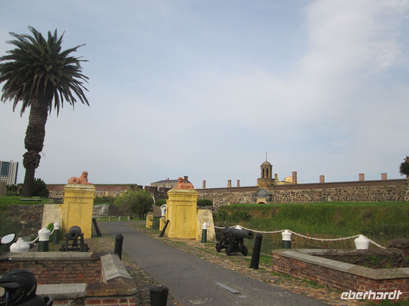 1652, so die Info von Marion, wurde der Park von der VOC, der Niederländischen Ostindien-Kompanie als Obst-und Gemüsegarten angelegt, um damit Schiffsmannschaften zu versorgen. Heute präsentiert sich uns nur noch ein kleiner Teil als Gemüse-, und Kräutergarten, der andere Teil lädt zum Spazieren zwischen Ficusbäumen, Clivia-Beeten, Strelitzien-Büschen, Wildbananen und Magnolienbäumen ein. Hin und wieder begrüßt uns eine Nilgansfamilie, deren Mama durch permanentes Rufen ihre Jungen um sich haben möchte, und wir machten Bekanntschaft mit Cecil Rhodes. In seine Biografie hineinzuschauen, ist recht interessant, hat er doch die Geschichte in Südafrika entscheidend mit geprägt. Aufgrund eines Tuberkuloseleidens kam er von England nach Südafrika auf eine Farm zu seinem Bruder, um dieses auszukurieren. Das Farmleben gefiel ihm nicht, stattdessen vielmehr glitzernde Steinchen, die Diamanten und der damit verbundene Verkauf. Sowohl in England, als auch in Südafrika hatte er gute Kontakte zu wichtigen Personen, und er war politisch sehr aktiv. Sein ehrgeiziges Ziel: er wollte ganz Afrika der britischen Krone unterstellen. Cecil Rhodes wurde Premierminister der Kapkolonie, betrieb seine Expansionspolitik weiter, bis er schließlich Rhodesien, das heutige Simbabwe, gründete. Mit seiner ausgestreckten linken Hand hoch oben auf dem Sockel in Companys Garden zeigt er Richtung Norden.