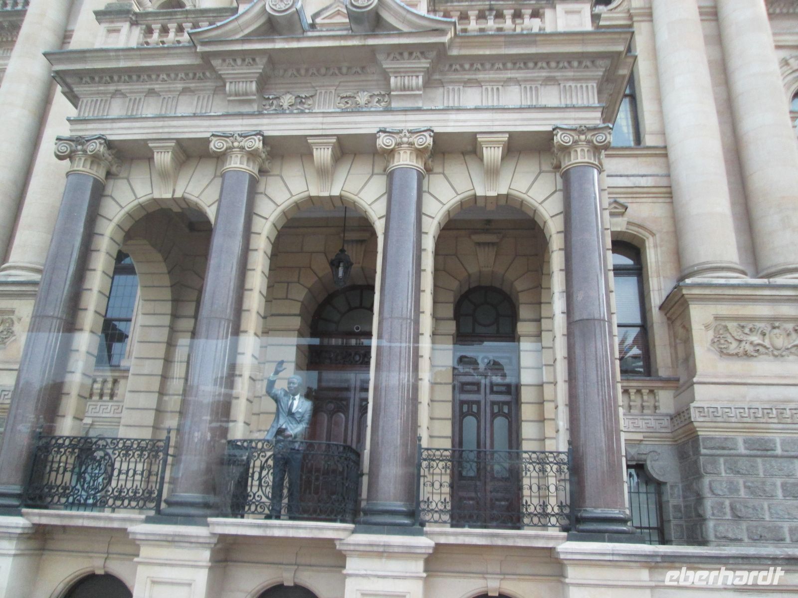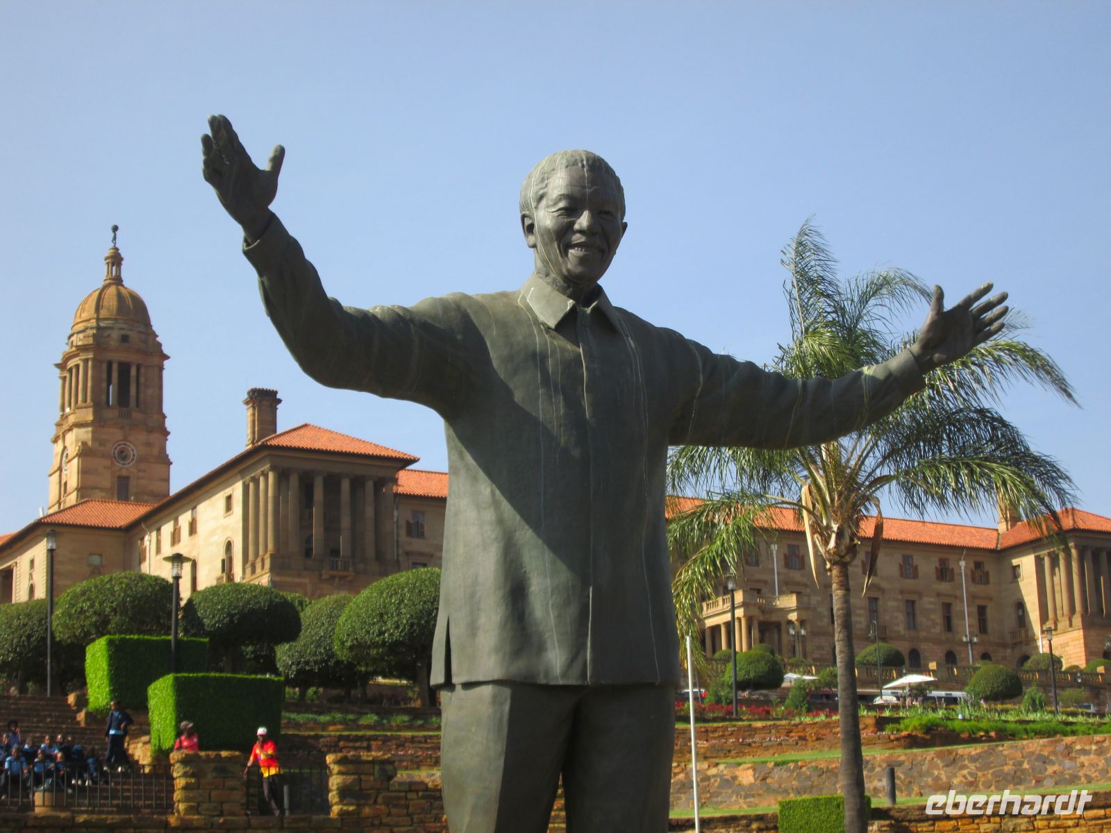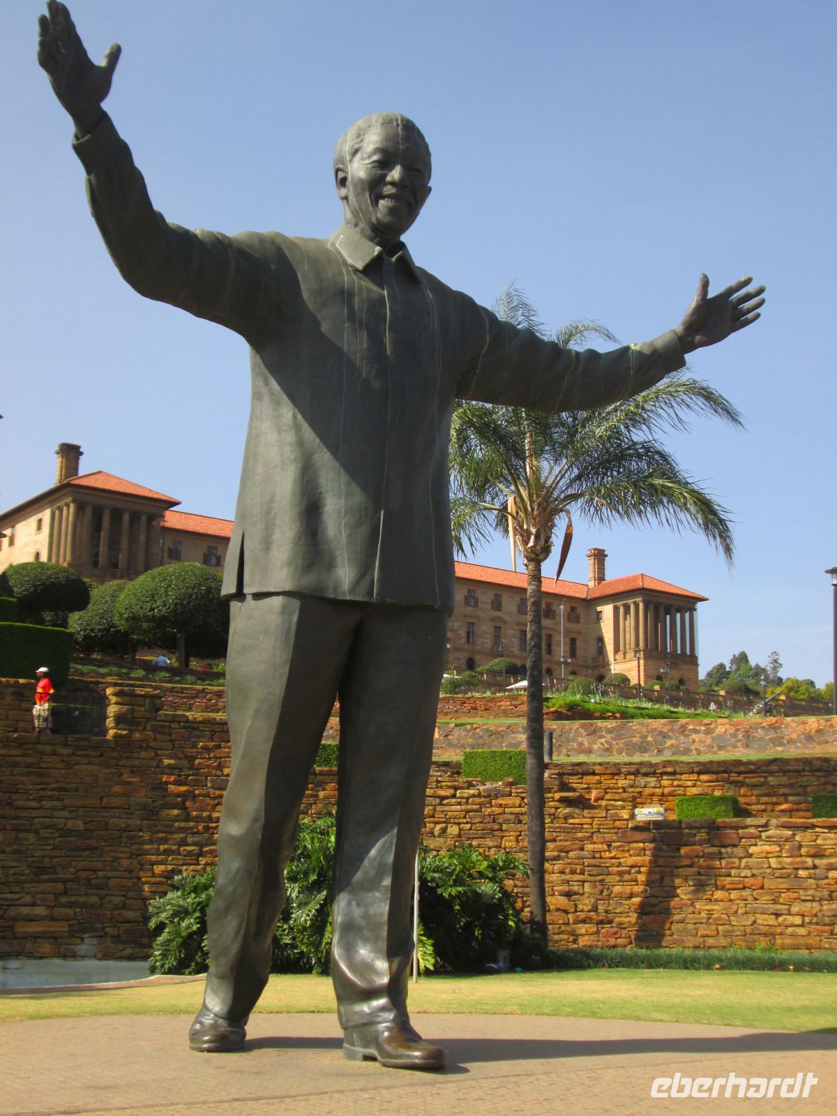 Eine andere Statue, 9 m hoch und aus Bronze, zeigt den einstigen Apartheidgegner und späteren Präsidenten Nelson Mandela. Seine Arme sind ausgestreckt, als Umarmung der Menschen soll man dies verstanden wissen. Mögen sich seine Gedanken und Wünsche für ein friedliches Miteinander in den Köpfen ALLER doch endlich verankern !