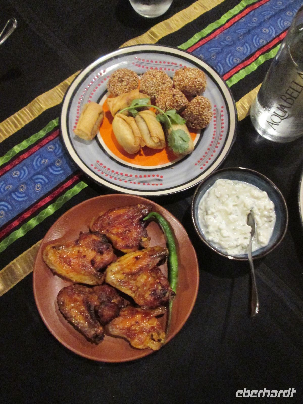 Ein Abendessen der besonderen Art wurde uns im Restaurant "Gold" serviert: typische Speisen aus verschiedenen afrikanischen Ländern, begleitet von Musik und Tanz.