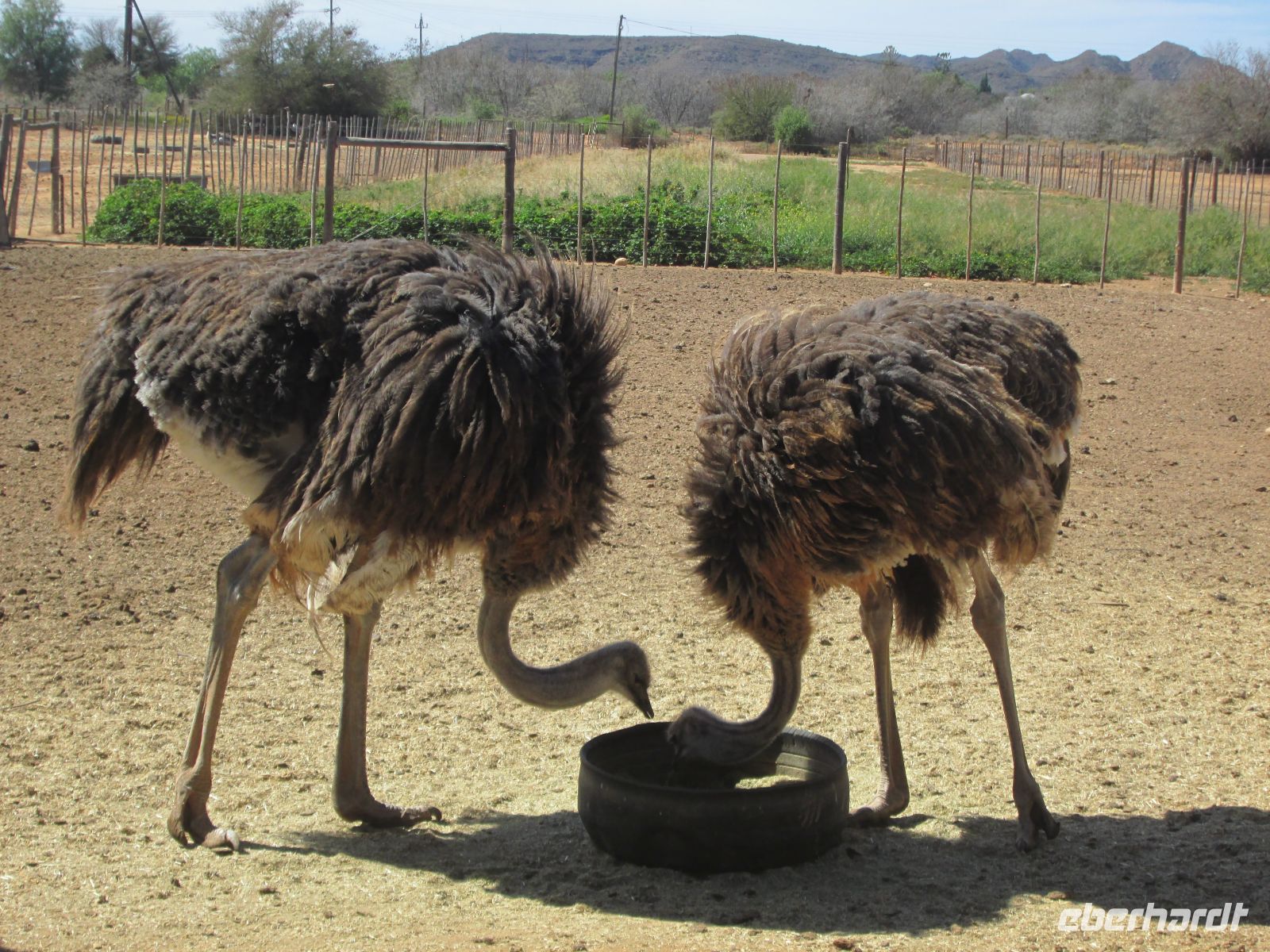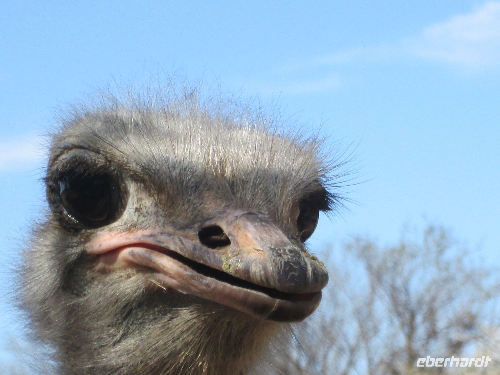 Zu nahe sollten wir den Tieren jedoch nicht kommen. Da sie hervorragend sehen, könnte es passieren, das man auf einmal keine Brille oder Halskette mehr trägt. Alles was irgendwie glänzt und funkelt, interessiert diese Tiere besonders, und sie möchten es haben. So erklärte uns Geraldine, dass man in Mägen toter Tiere z.B. mehrere Kilogramm Steinchen, 1 kleines Spielzeug-Auto, Auto-Zündkerzen und Münzgeld fand.