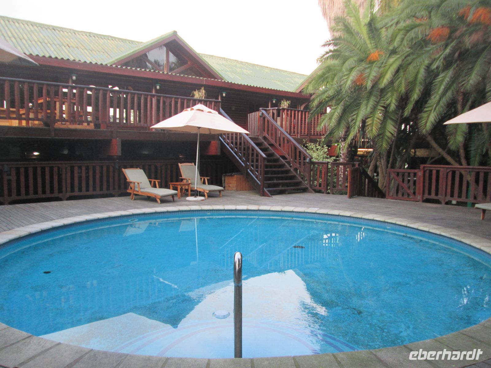 Weitere 20 Minuten waren wir unterwegs, und alsbald wurden wir in der Pioneers Lodge, unser zu Hause für die nächsten und leider auch letzten 2 Nächte im südlichen Afrika, begrüßt. Einige allgemeine Informationen gab es und schon trennten sich unsere Wege. Einige fuhren mit dem Taxi in die City, andere genossen bei einer Temperatur von 36 Grad Ruhe und Entspannung an den 2 vorhandenen Pools.