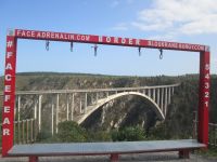 Wir trennten uns um die Mittagszeit erst einmal vom Meer und fuhren weiter Richtung Osten. Unterwegs passierten wir die Bloukrans Bridge, von welcher Bungee Sprünge angeboten werden. Für umgerechnet etwa 85 € darf der "Adrenalinjunkee" sich 216 m in die Tiefe stürzen. Schon beim Hinschauen überkam uns ein "oh nein" oder "Hilfe". Aber wer das Besondere sucht, soll es auch bekommen und den Bungee Sprung genießen.