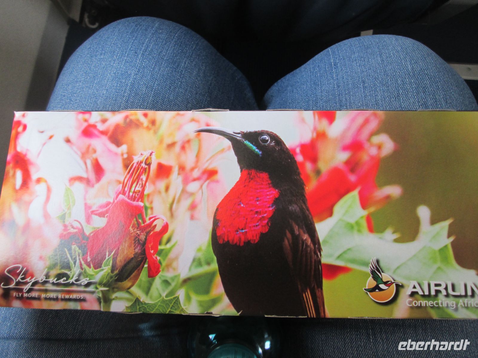 Der Flug nach Windhoek in Namibia startete überpünktlich. Es war die selbe Maschine, mit der wir weiter nach Frankfurt fliegen sollten. Dennoch musste man den Flieger in Windhoek verlassen, durch eine Sicherheitskontrolle und dann hieß es über 2 Stunden nochmals warten.