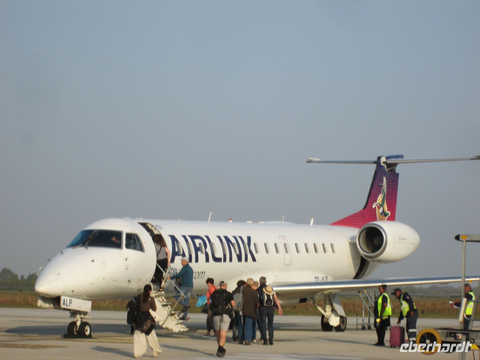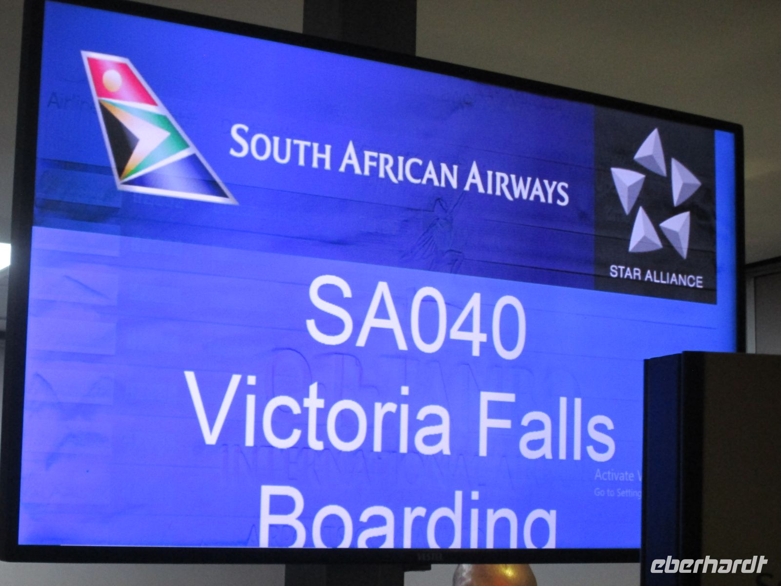 Diesmal klappte alles mit dem Flugzeug. Pünktlich waren Start in Johannesburg/Südafrika und Landung in Victoria Falls/Simbabwe.