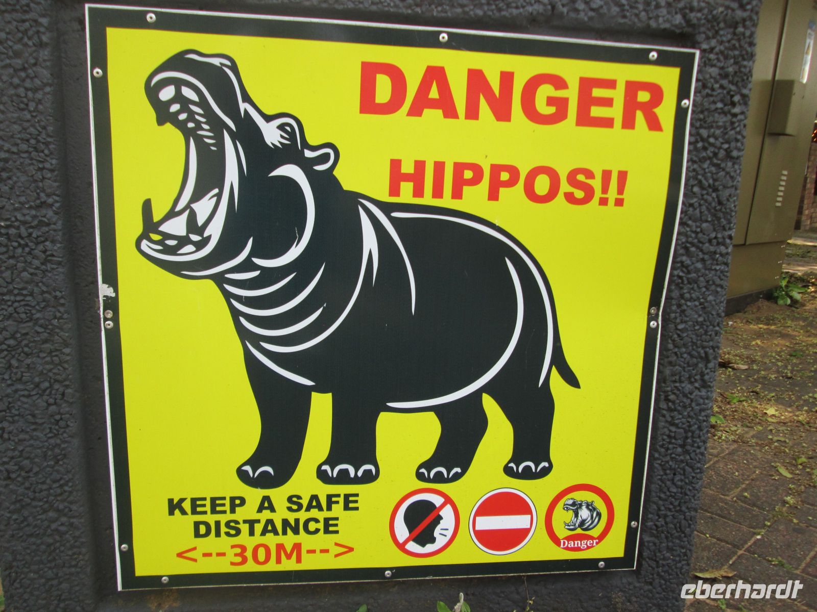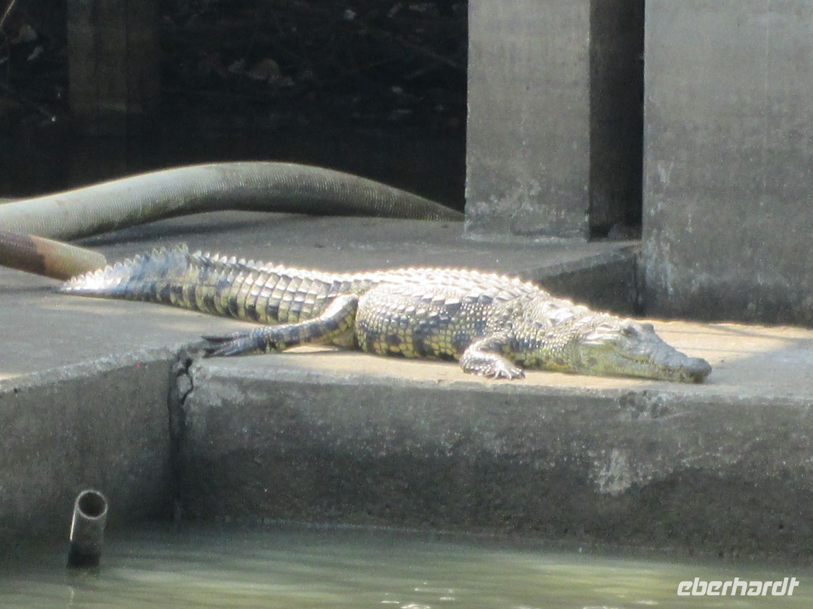 Erst in der Nacht verlassen sie ihre feuchtes Refugium und fressen an Land als Vegetarier bis zu 40 kg. Kaum vorstellbar, dass diese Tiere dem Menschen sehr gefährlich werden können, weil sie bis zu 30 km/h schnell sind. Also lieber aus der Ferne genießen. Auch 2 Krokodile erspähten wir. Eines davon sogar relativ nahe von parkenden Autos. Da ist Vorsicht geboten.