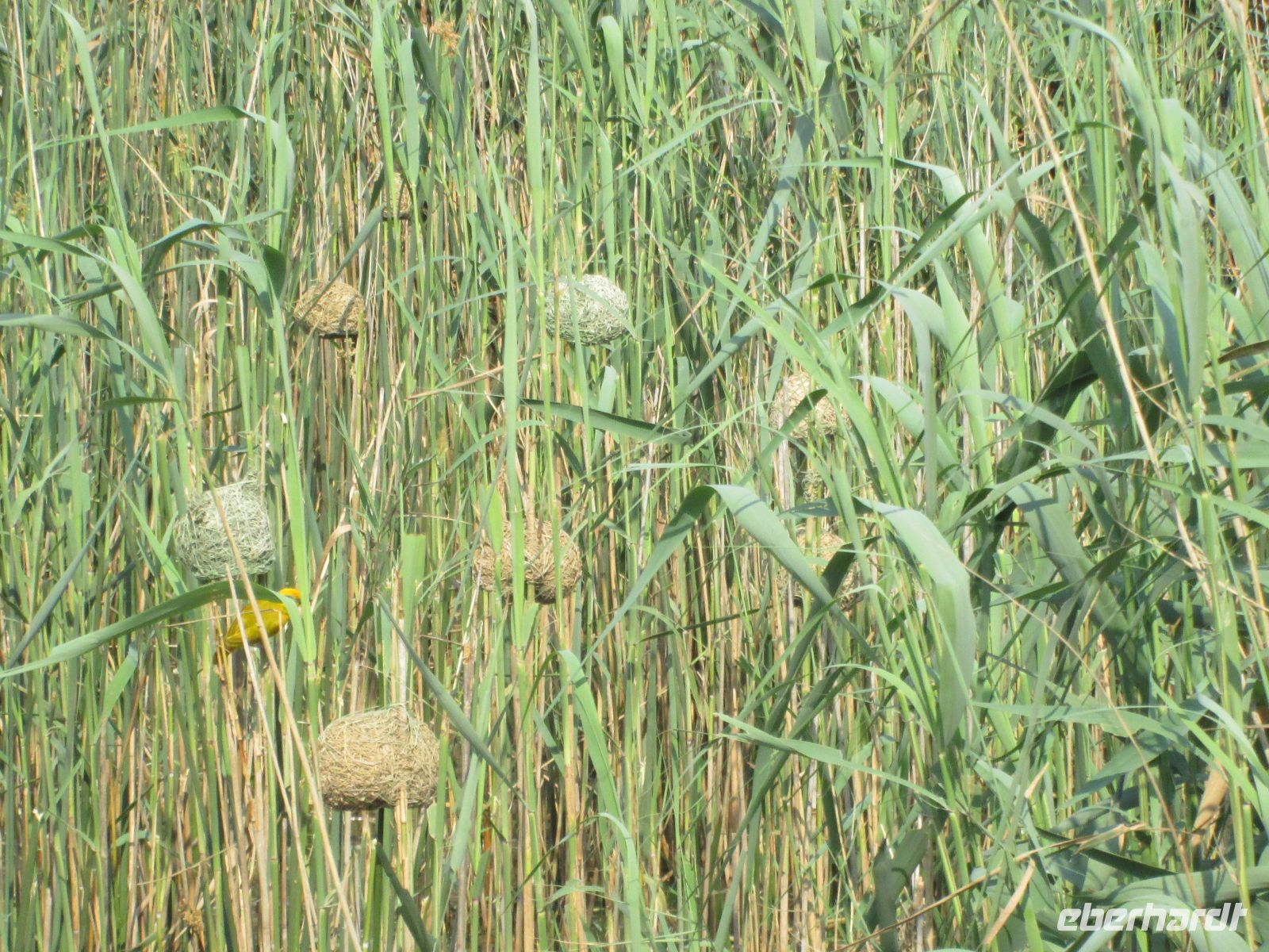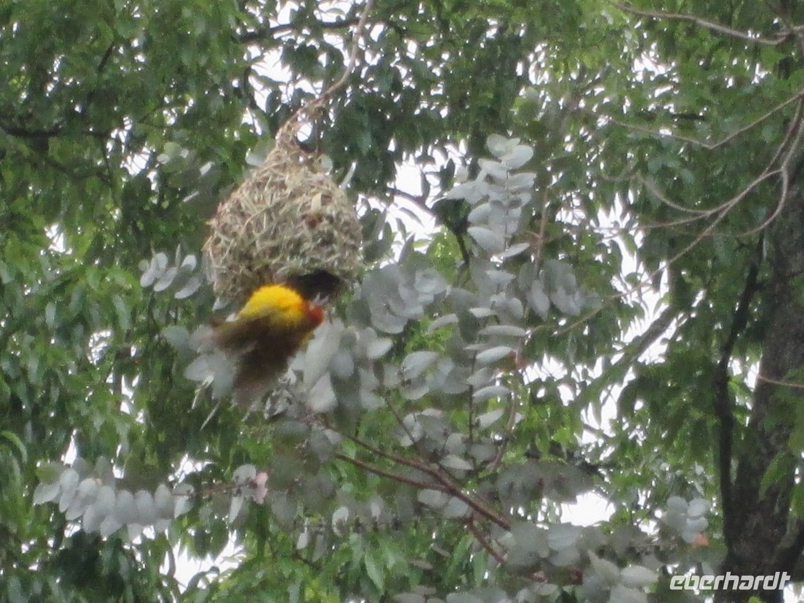 Noch 1 h Fahrzeit, dann hatten wir "Forester Arms" erreicht. Nahe des Eingangs zur Rezeption verrichteten Webervögel gerade ihre Nestbauten.
