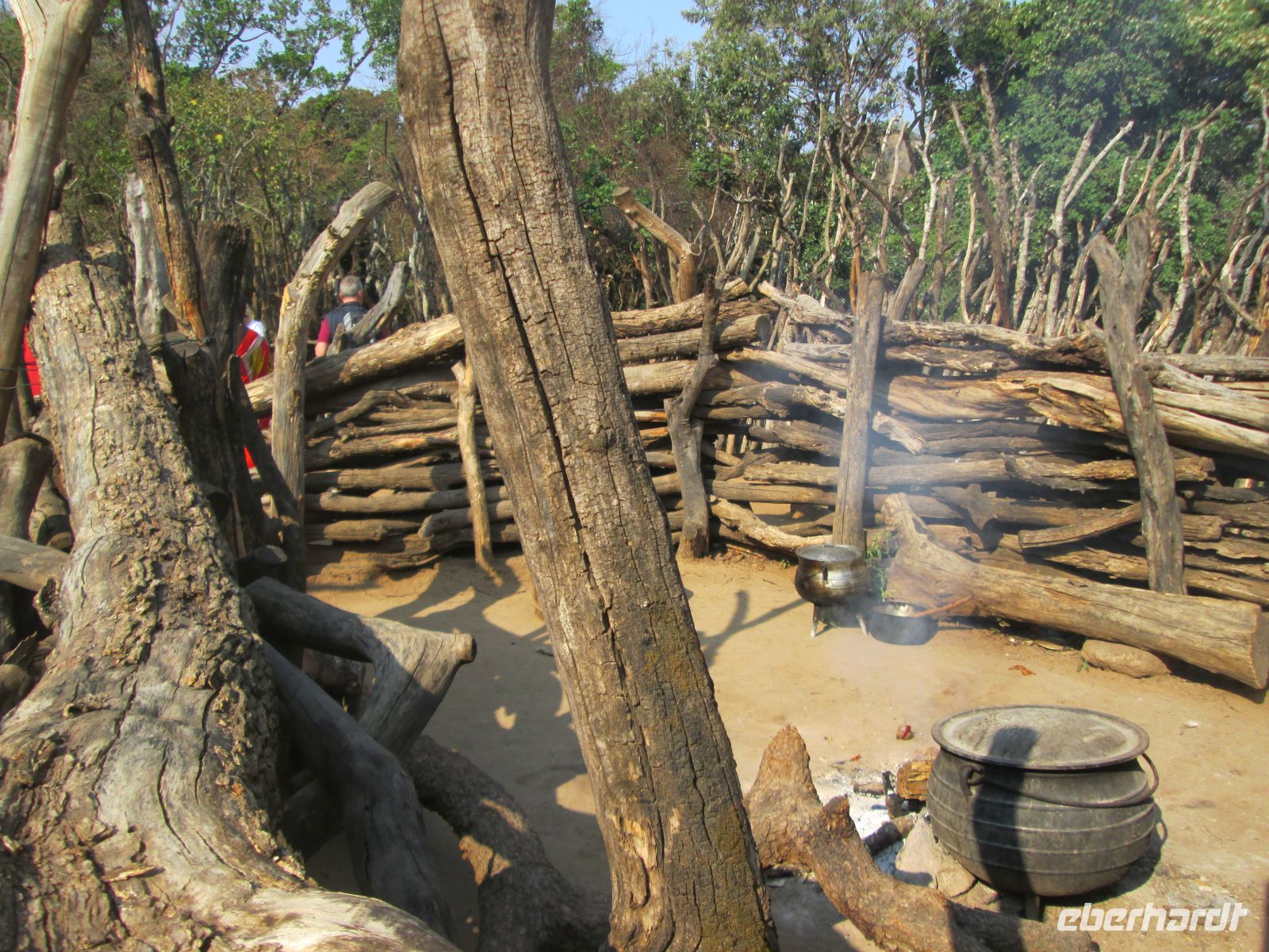 Außerhalb klärte uns "Gift" über die Lehmhüten und ihre Bewohner auf. In der Mitte wohnt die Mutter des ältesten Sohnes , umgeben von den Hütten der 2 Ehefrauen desselben. Die Frauen dürfen tagsüber sich nur in einem bestimmten Terrain an der Feuerstelle aufhalten, weil sie für das Kochen zuständig sind. Auch die Männer halten sich separat auf. Der König Mwasti III. war bei der Eröffnung zugegen und bezeichnete das Dorf "Der Stolz des Swasi-Volkes".