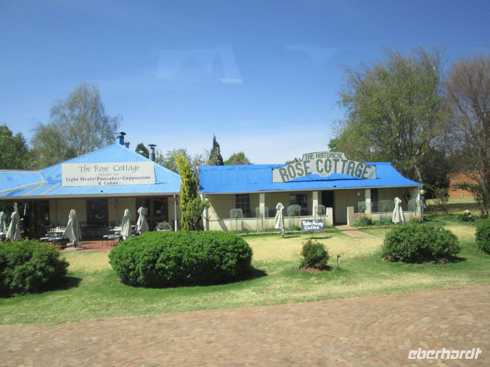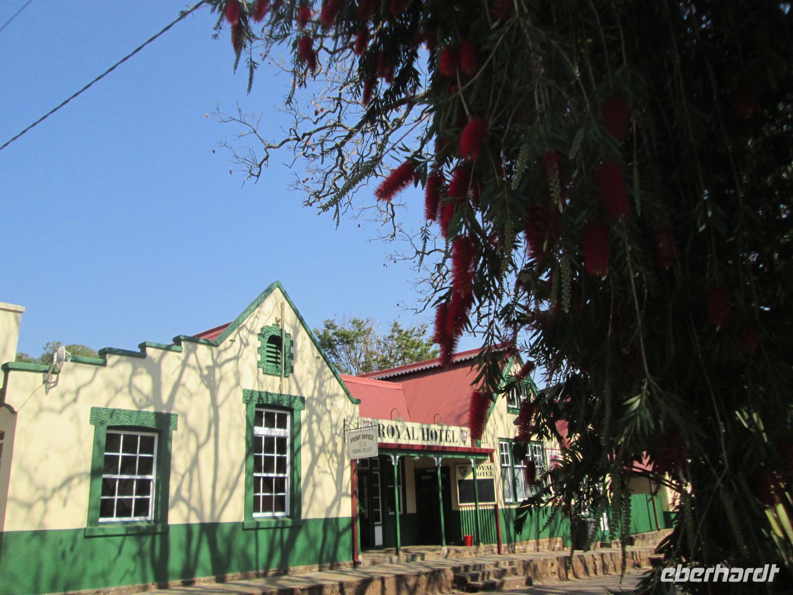 Den ersten Besuch statteten wir einem verschlafenen Goldgräberstädtchen ab. Pilgrim's Rest sein Name, wobei bis heute keiner genau sagen kann, woher der Name stammt. Bekannt ist jedoch, dass es einst einen Goldgräber namens Alec "Wheelbarrow" ("Schubkarre") Patterson gegeben hat, der von Goldvorkommen nahe der Stadt Sabie hörte. Dort, so glaubte er, gäbe es schon zu viele Goldsucher, und er ging mit seiner Schubkarre nach Pilgrim's Rest. Er fand tatsächlich Gold, behielt das Wissen aber zunächst für sich. Andere Goldgräber waren nicht so verschwiegen, und so wurde Pilgrim's Rest 1873 offiziell zur Fundstelle erklärt. Die Goldsucher hausten zunächst in Zelten, später in Häusern. Der Ort wurde größer, es entstanden eine Post, eine Garage, anfangs für die Kutschen, später für die Karosserien, eine Münzprägestätte, eine Destillerie, Pubs, Hotels, usw.