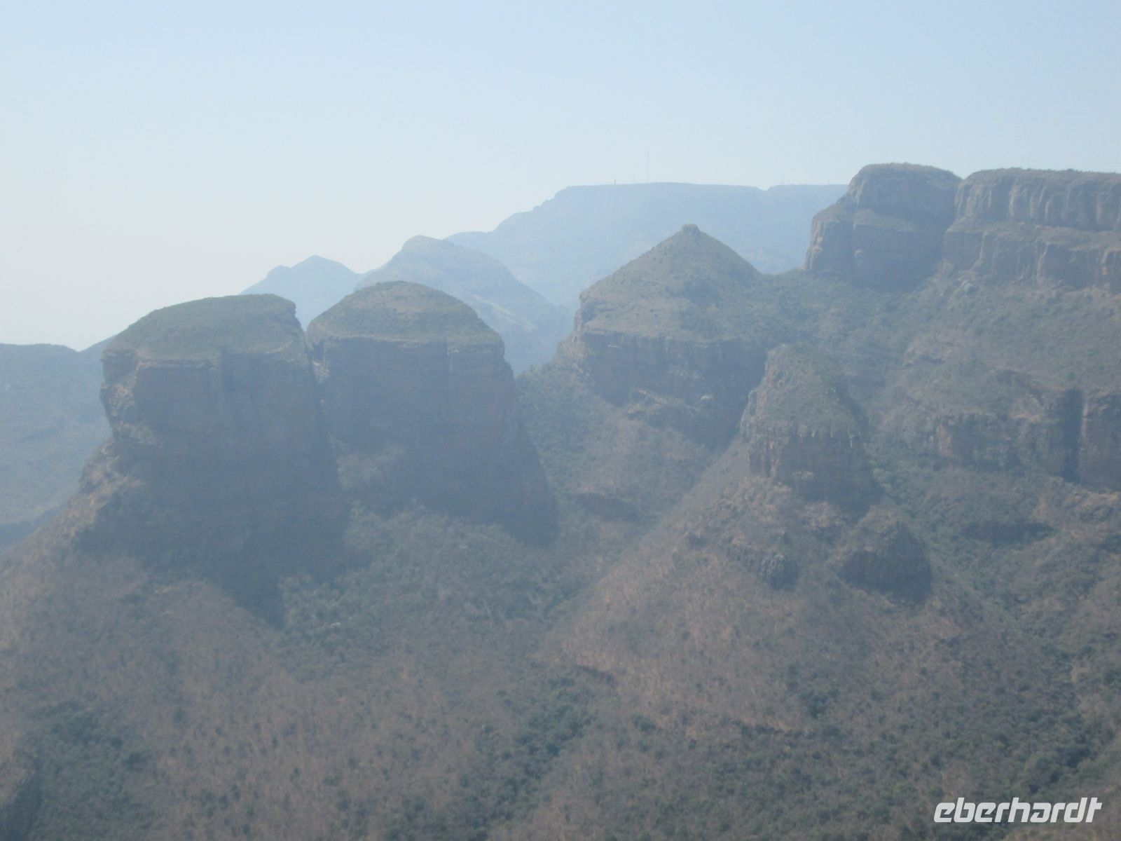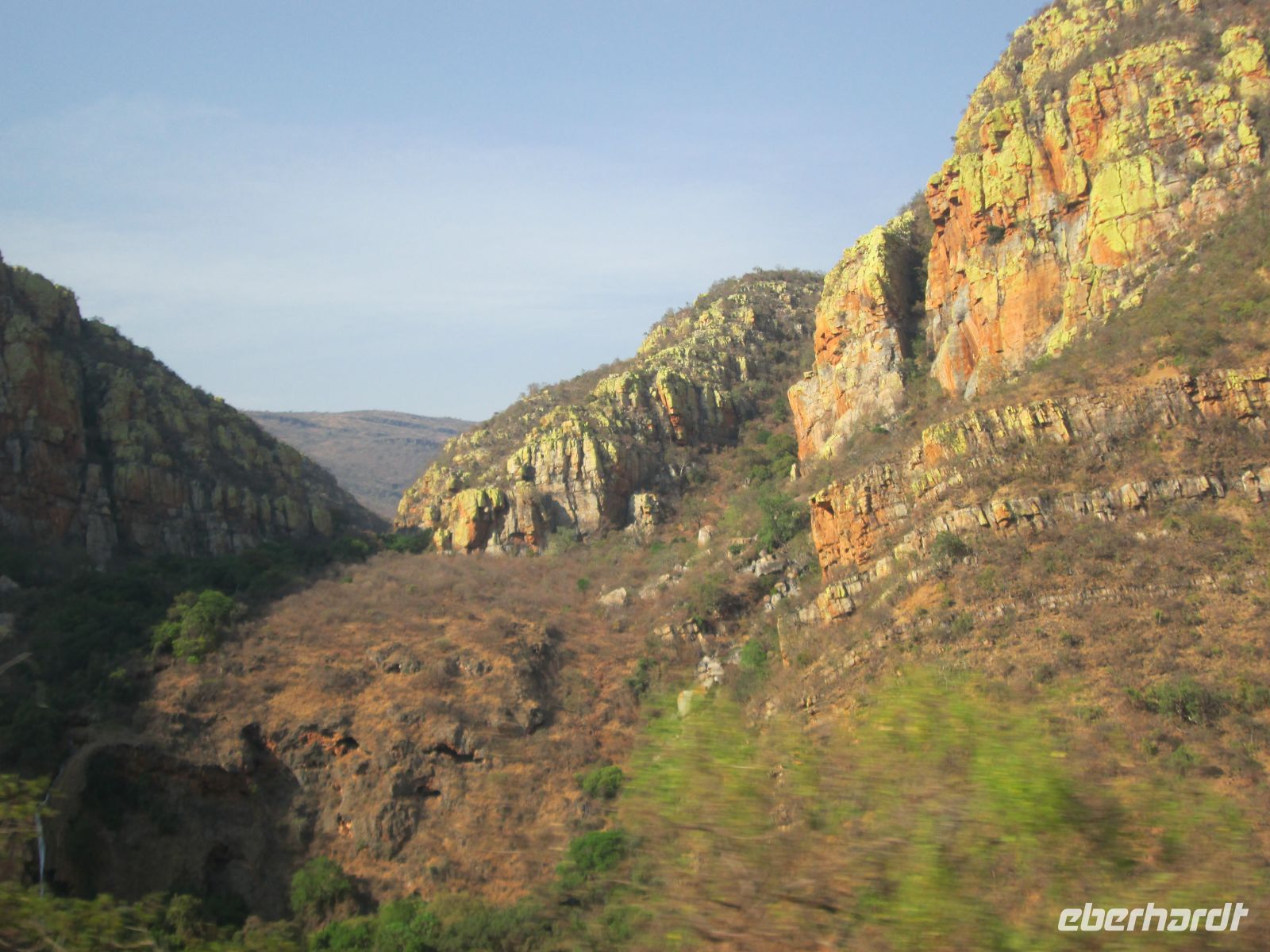 Der Fluss Blyde hat in vielen Millionen Jahren sein Bett etwa 800 m tief in die Gesteinsformationen geschaffen, so dass er heute als 3.größter Canyon der Welt gilt.
