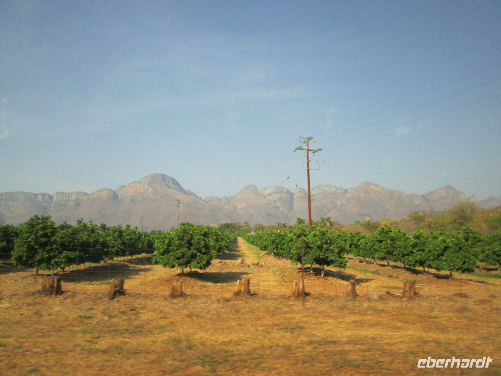 Unterwegs begleiteten uns kilometerlange Zitrus-und Mangoplantagen. Die Ernte der saftigen Früchte erfolgt im Januar und Februar.