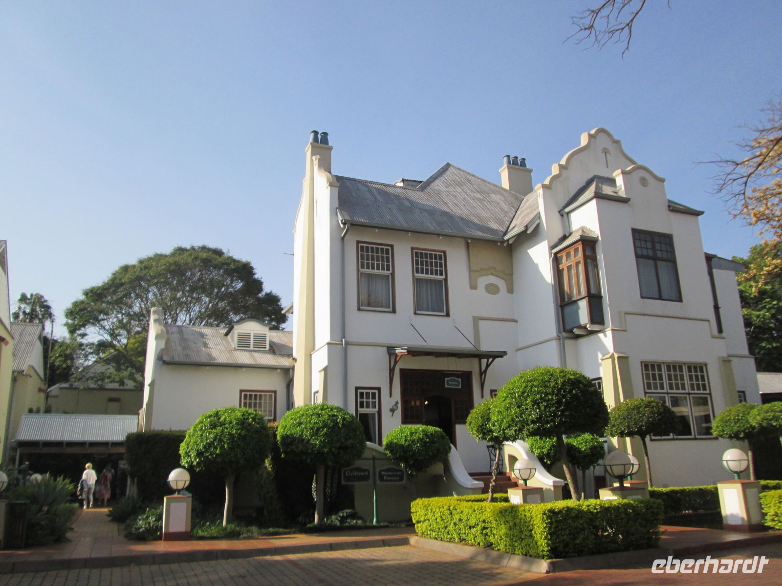 Unser letztes Hotel in Südafrika, in Pretoria, war ein umgebautes Herrenhaus. Very old british-war der erste Gedanke. Sir Ernest Chappell, rechte Hand von Lord Alfred Milner, der Governeur der Transvaal Companie nach Paul Kruger war, ließ 1904 dieses Gebäude im victorianischen Stil errichten. Chappell war bis zu seiner Abreise 1929 auch Mitherausgeber der "Neuen Zeitung" in Pretoria. 1929 wurde die Villa für 5000 Pfund von Claudius de Vries, einem Börsenmakler, gekauft. 1994 wurde die Villa zum Hotel umgebaut und Nebengebäude entstanden. Wohl gefühlt haben wir uns sehr.