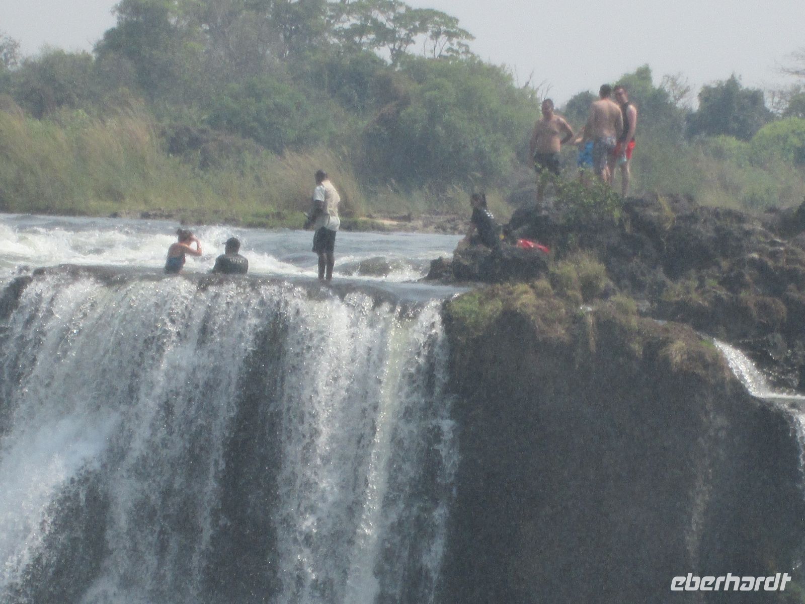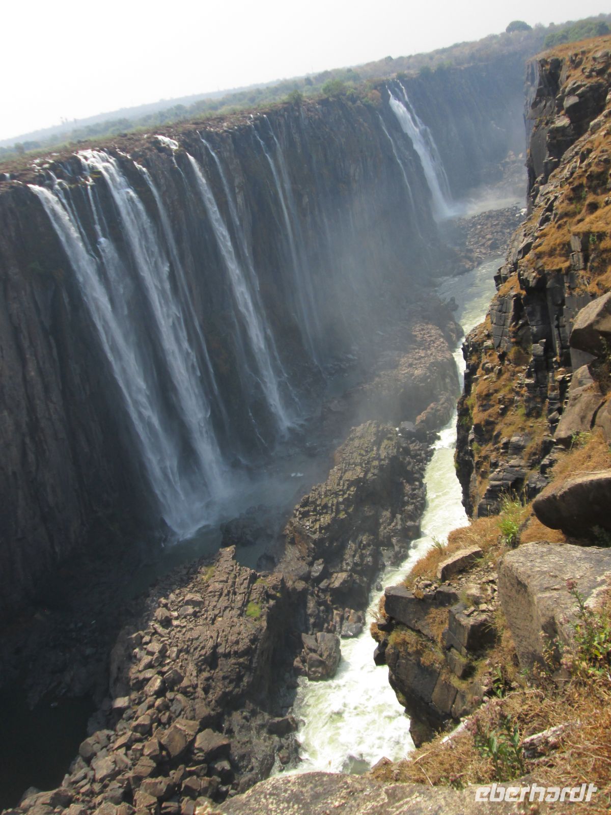 Nach Entrichten der Nationalparkgebühr begann unser "Staunen". Die Victoria Wasserfälle, nach der britischen Königin benannt durch ihren Entdecker David Livingstone, unterteilt man in den Devil's Cataract, die Main Falls, Rainforest Falls, den Horseshoe Fall und die Rainbow Falls.