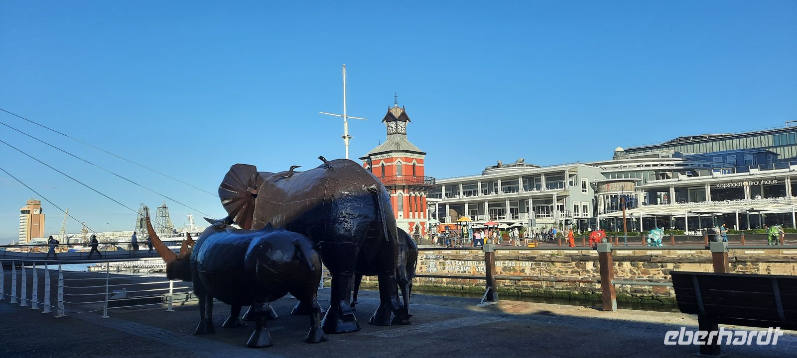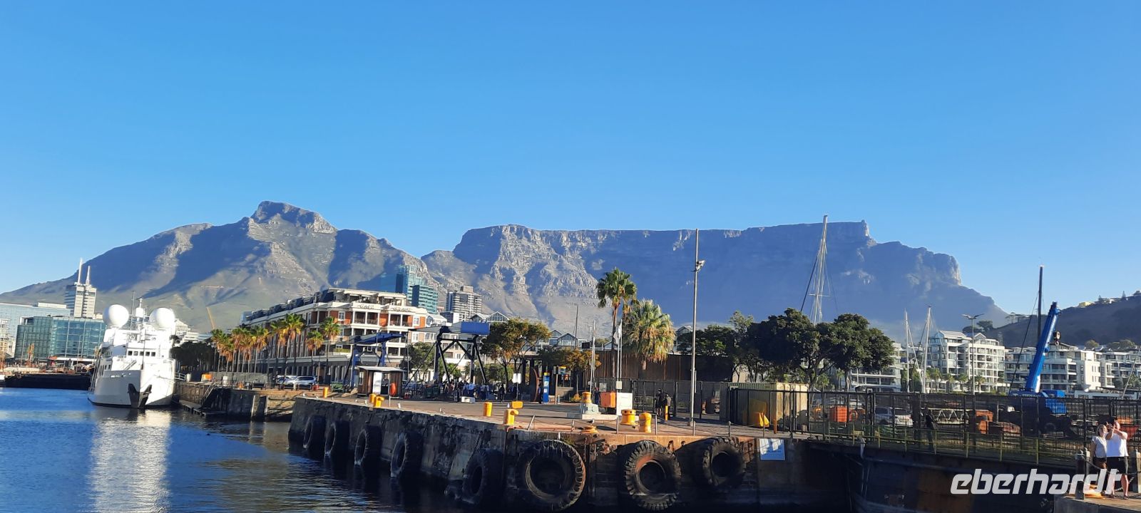Am späten Vormittag landeten wir im sonnigen Kapstadt. Die Uhren mussten wir eine Stunde vorstellen. Am Flughafen begrüßte uns Martina, unsere örtliche Reiseleitung und der junge Keys, unser Busfahrer. Schnell südafrikanische Rand an der Geld-Geb-Maschine geholt, Gepäck verstaut und los ging es schon zur ersten Erkundungsrunde in Kapstadt.