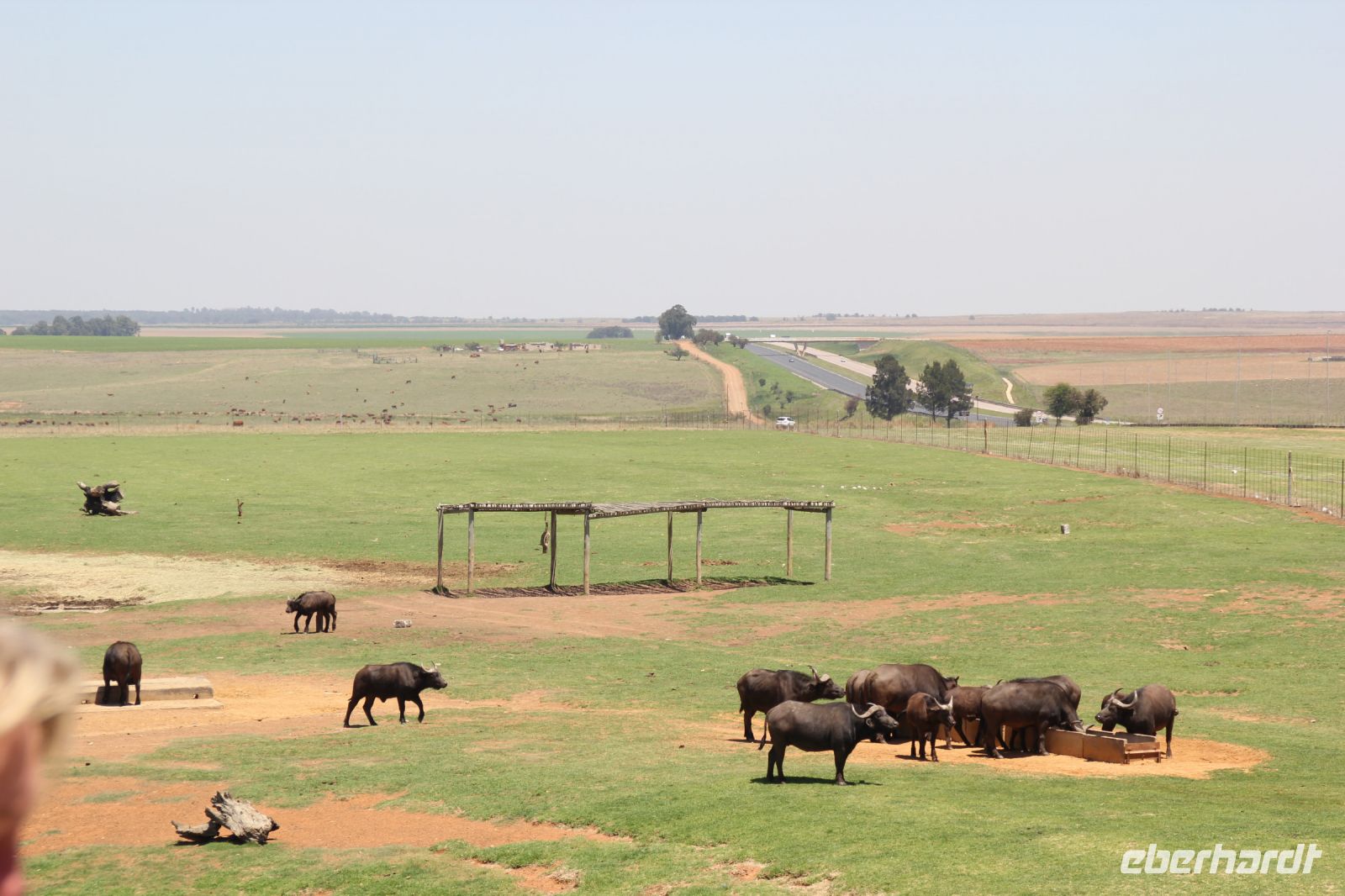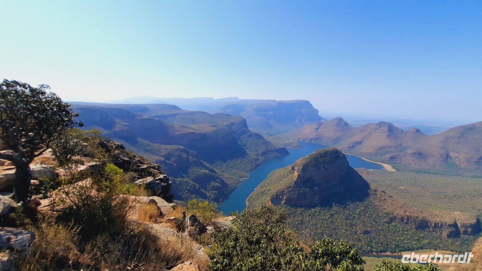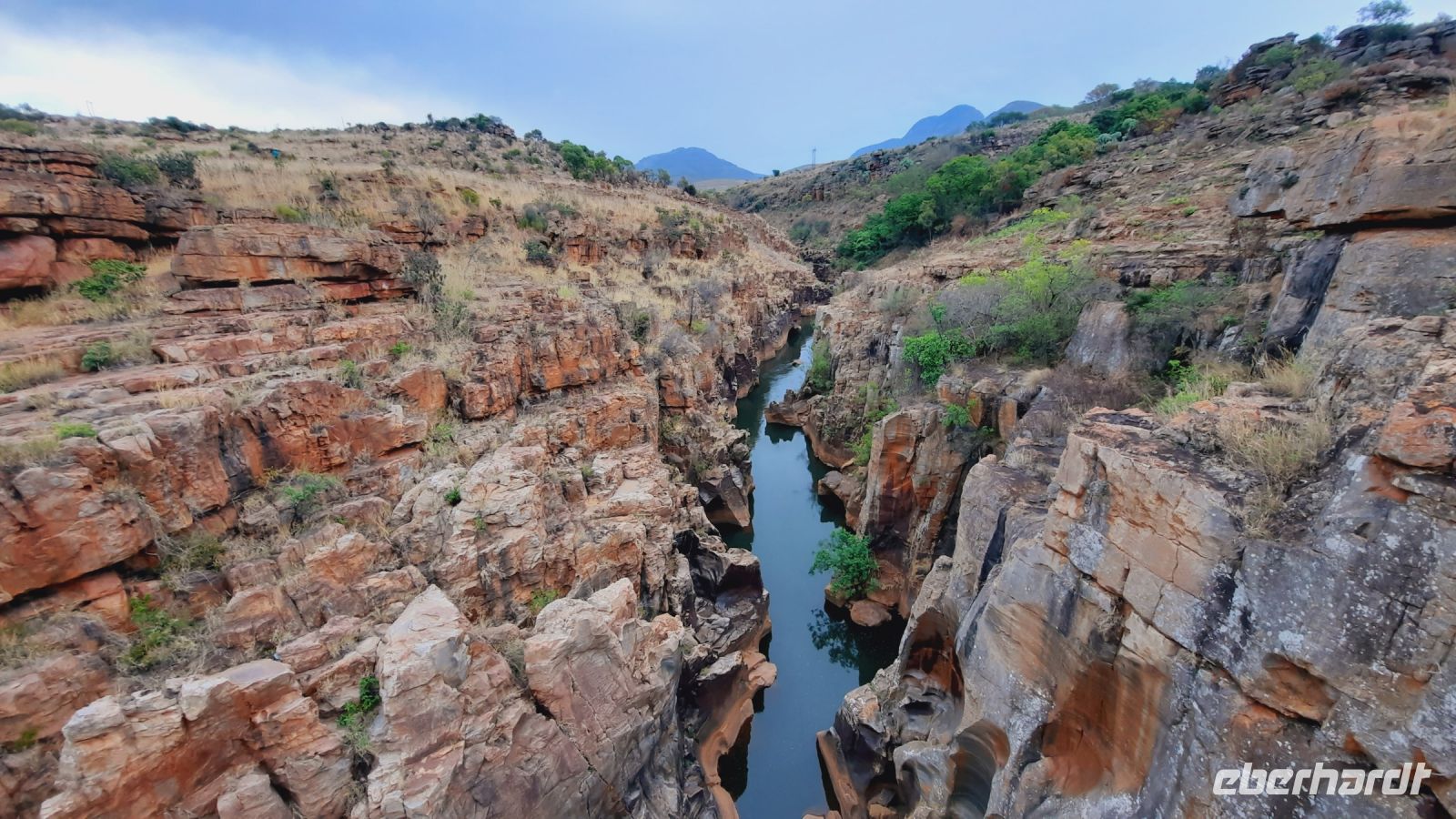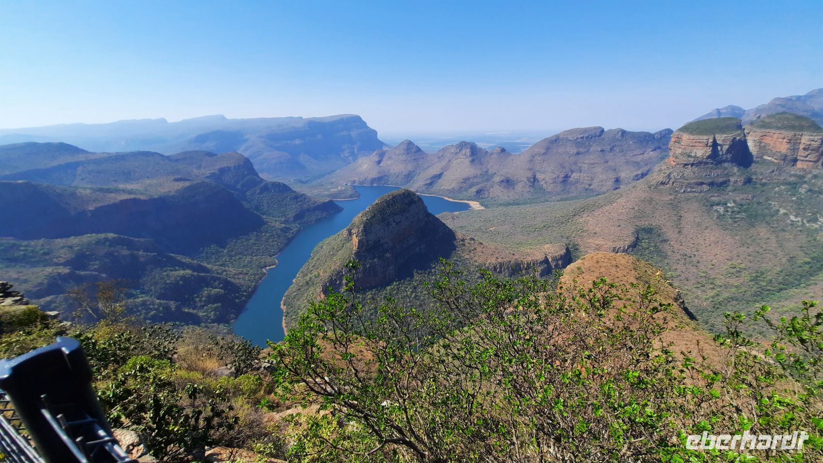 Wir verließen nun Pretoria Richtung Nord-Osten. Unterwegs durchfuhren wir riesige landwirtschaftliche Gebiete, sahen zahlreiche Silos und stoppten schließlich an einer Raststätte, in der wir die ersten Tiere auf den Kameras festhalten konnten. Sogar Büffel und in der Ferne auch ein paar Nashörner waren zu sehen. Gut gestärkt fuhren wir weiter in die Region Mpumalanga. Wir erreichten den imposanten Blyde River Canyon. Er ist der neben dem Grand Canyon in den USA und dem Fish River Canyon in Namibia der drittgrößte Canyon weltweit. Beeindruckt von dieser fantastischen Aussicht schossen wir hunderte Fotos. Wir wollten jeden neuen Blickwinkel genau festhalten.