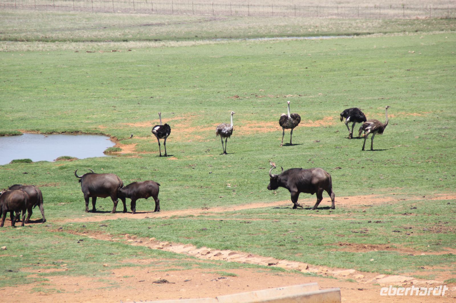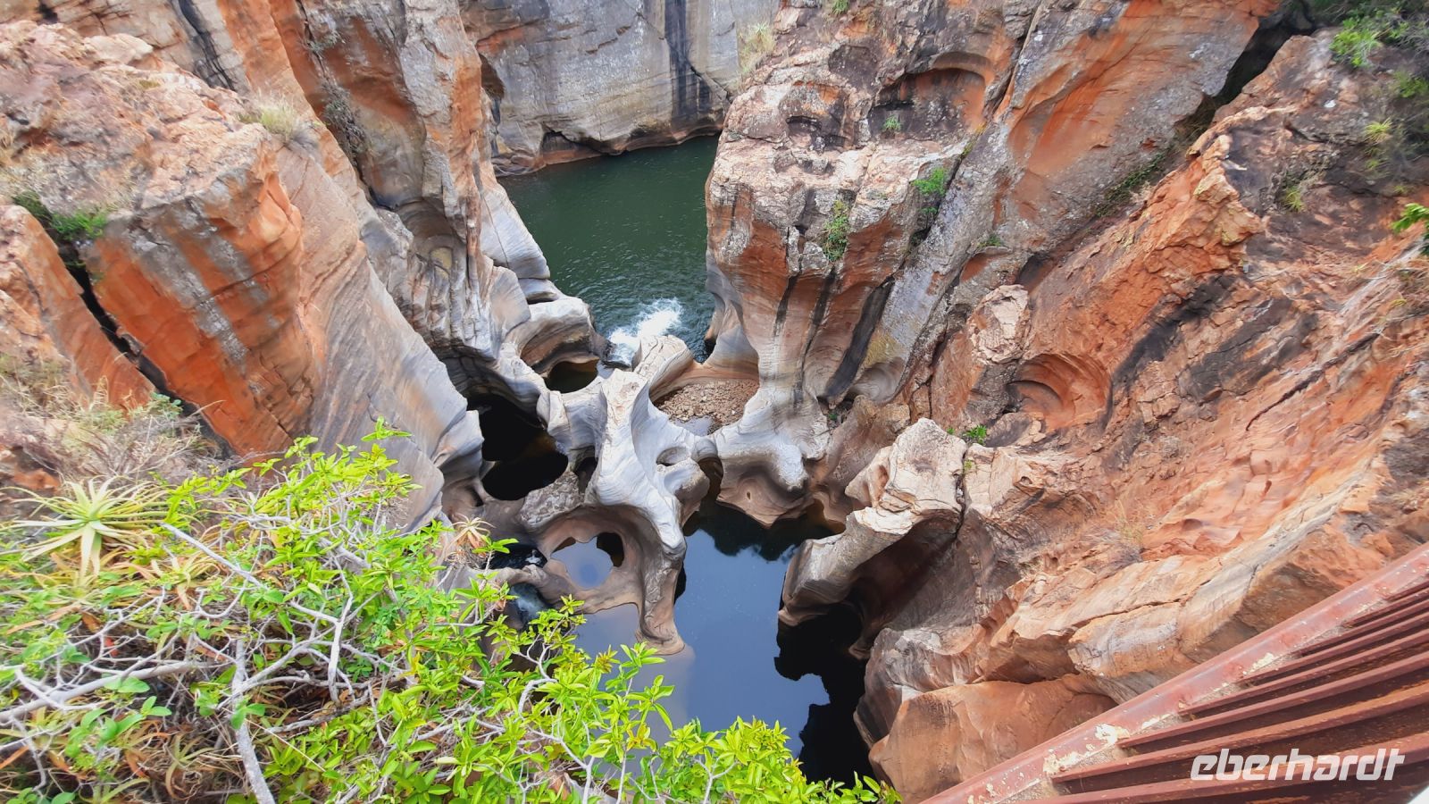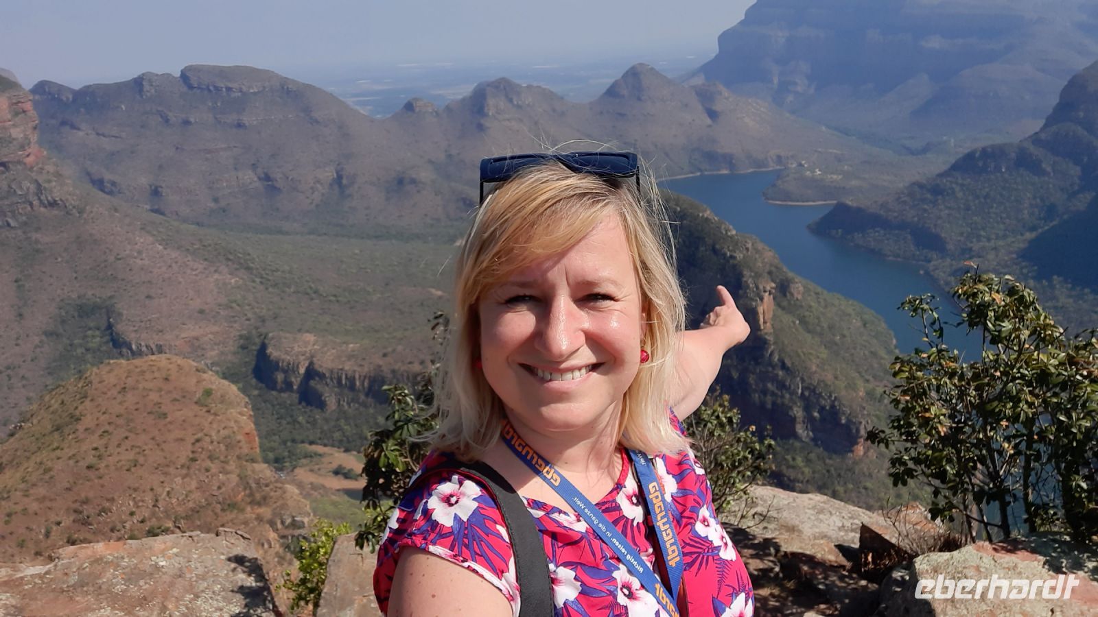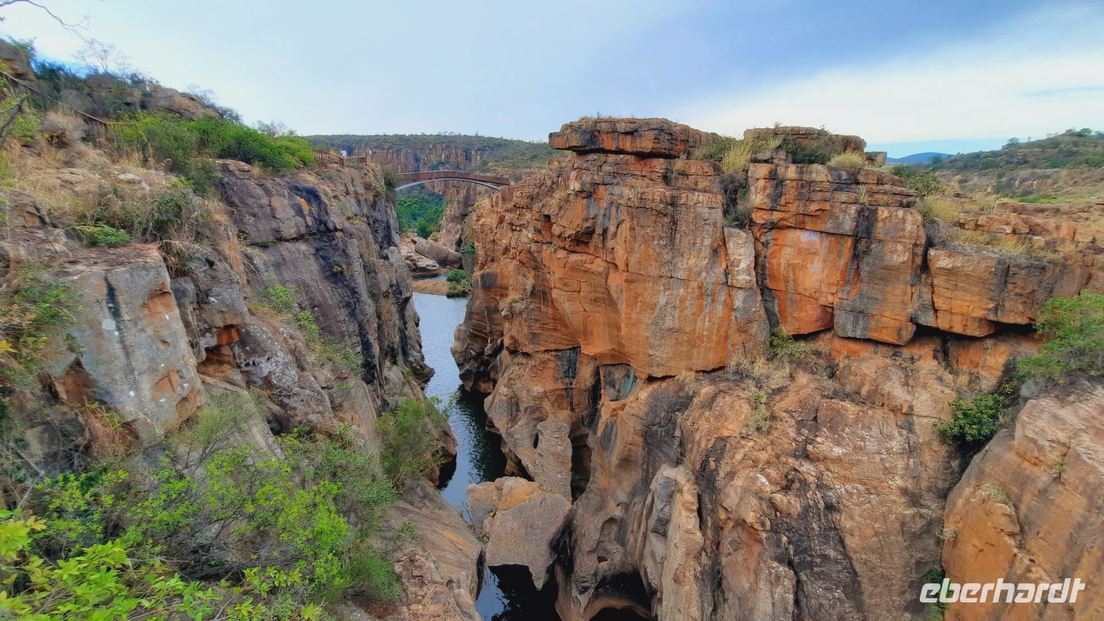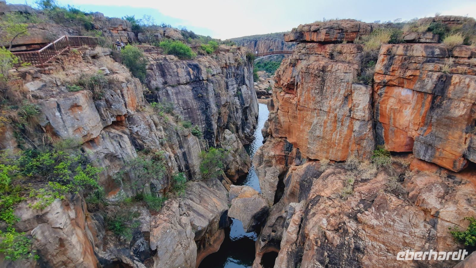 Wir verließen nun Pretoria Richtung Nord-Osten. Unterwegs durchfuhren wir riesige landwirtschaftliche Gebiete, sahen zahlreiche Silos und stoppten schließlich an einer Raststätte, in der wir die ersten Tiere auf den Kameras festhalten konnten. Sogar Büffel und in der Ferne auch ein paar Nashörner waren zu sehen. Gut gestärkt fuhren wir weiter in die Region Mpumalanga. Wir erreichten den imposanten Blyde River Canyon. Er ist der neben dem Grand Canyon in den USA und dem Fish River Canyon in Namibia der drittgrößte Canyon weltweit. Beeindruckt von dieser fantastischen Aussicht schossen wir hunderte Fotos. Wir wollten jeden neuen Blickwinkel genau festhalten.