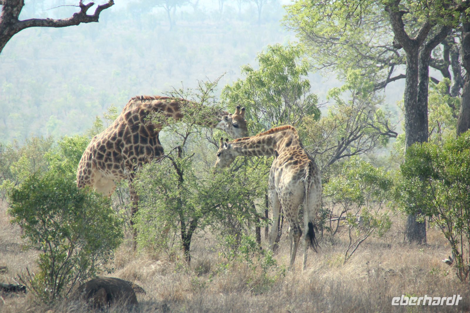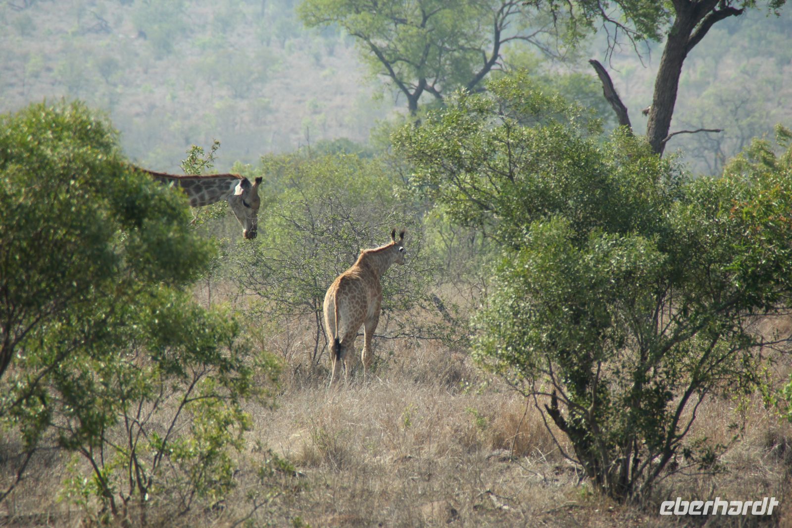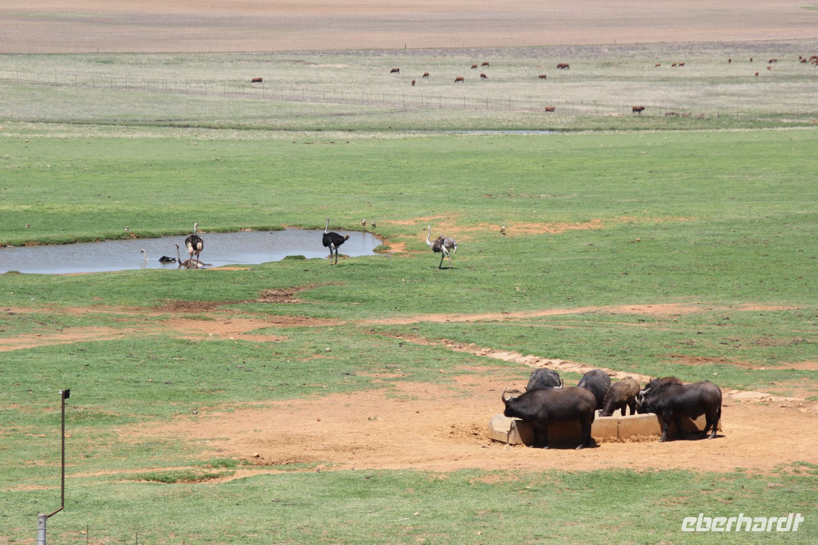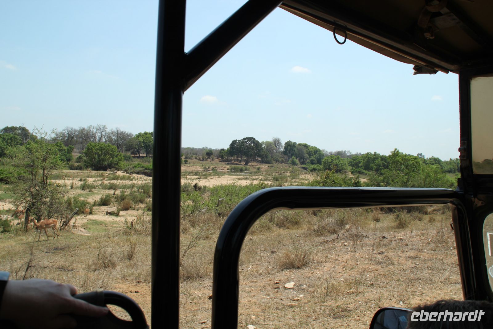 Wir verließen nun Pretoria Richtung Nord-Osten. Unterwegs durchfuhren wir riesige landwirtschaftliche Gebiete, sahen zahlreiche Silos und stoppten schließlich an einer Raststätte, in der wir die ersten Tiere auf den Kameras festhalten konnten. Sogar Büffel und in der Ferne auch ein paar Nashörner waren zu sehen. Gut gestärkt fuhren wir weiter in die Region Mpumalanga. Wir erreichten den imposanten Blyde River Canyon. Er ist der neben dem Grand Canyon in den USA und dem Fish River Canyon in Namibia der drittgrößte Canyon weltweit. Beeindruckt von dieser fantastischen Aussicht schossen wir hunderte Fotos. Wir wollten jeden neuen Blickwinkel genau festhalten.