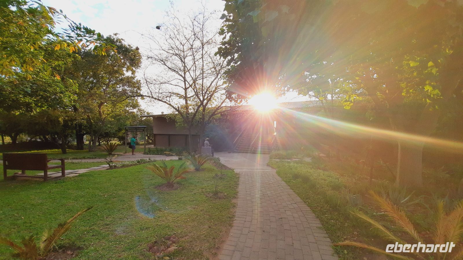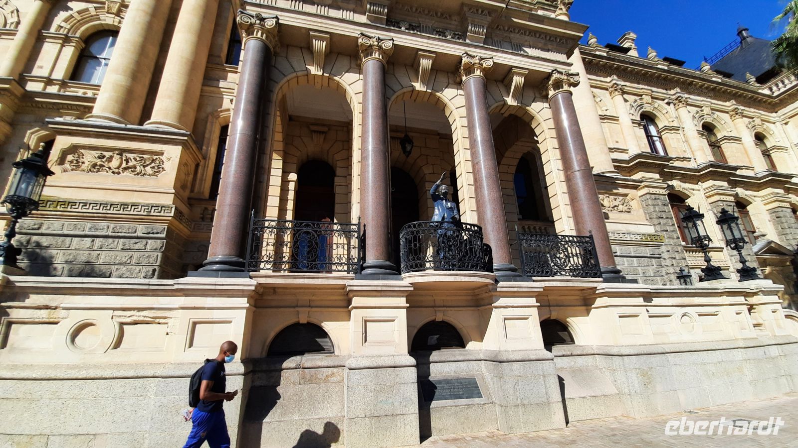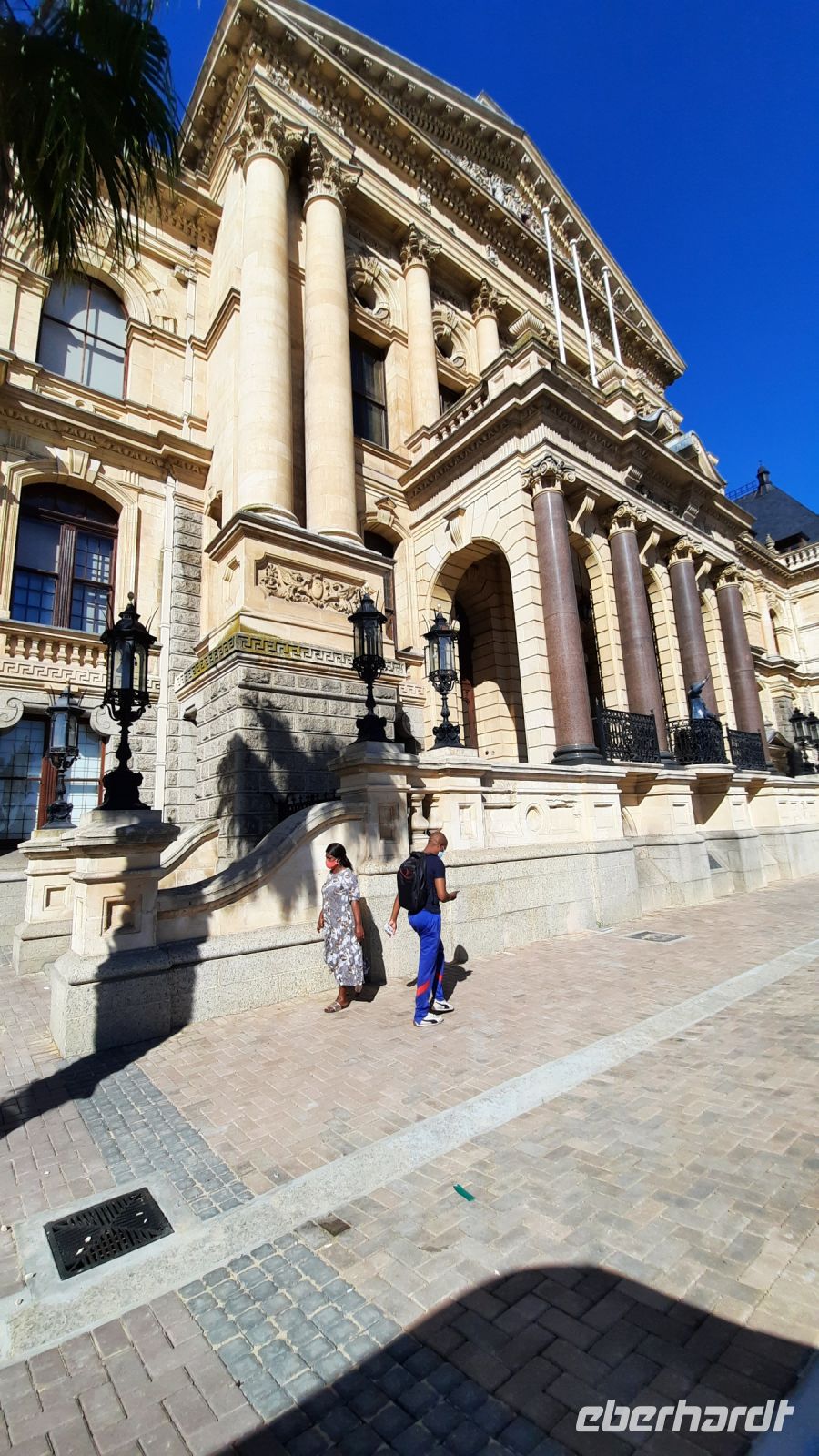 Nach einem guten Frühstück beluden wir unseren Kofferanhänger und fuhren Richtung Zentrum von Pretoria. Pretoria fungiert als eine der drei Hauptstädte Südafrikas mit einer Bevölkerung von mehr als einer Million Menschen, von denen die meisten Regierungsbeamte sind. Das Stadtzentrum mit seinem breiten Straßennetz ist recht simpel angelegt. Wir durchfuhren die Straßen, passierten den Church Square und stoppten am Kruger-Haus. Präsident Paul Kruger lebte in diesem hübschen Haus zwischen 1884 und 1901. Es war auch das erste Haus in Pretoria, welches Strom und ein Telefon besaß. Das kleine weiße Haus ist originalgetreu möbliert und zeigt viele Exponate aus dem Leben des beliebten Buren-Präsidenten.