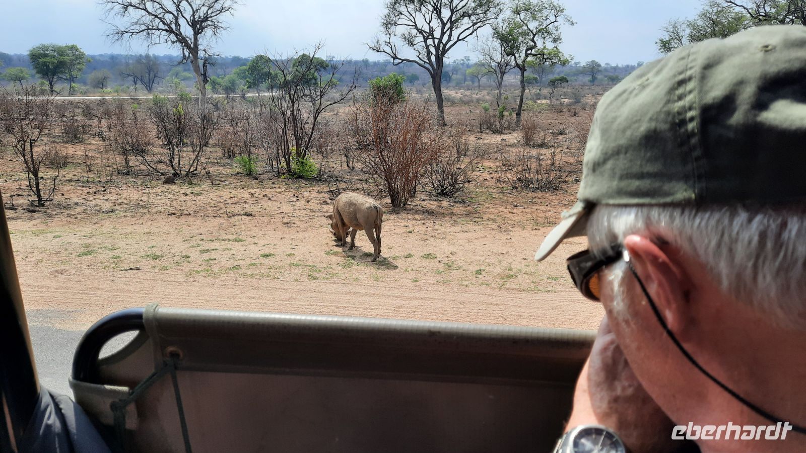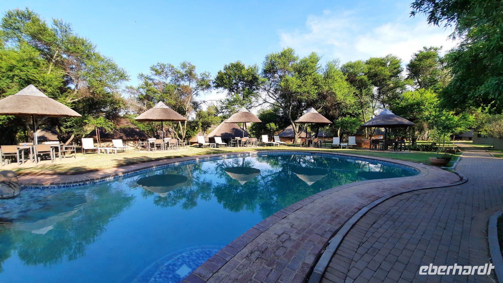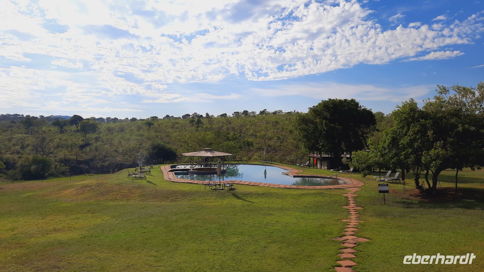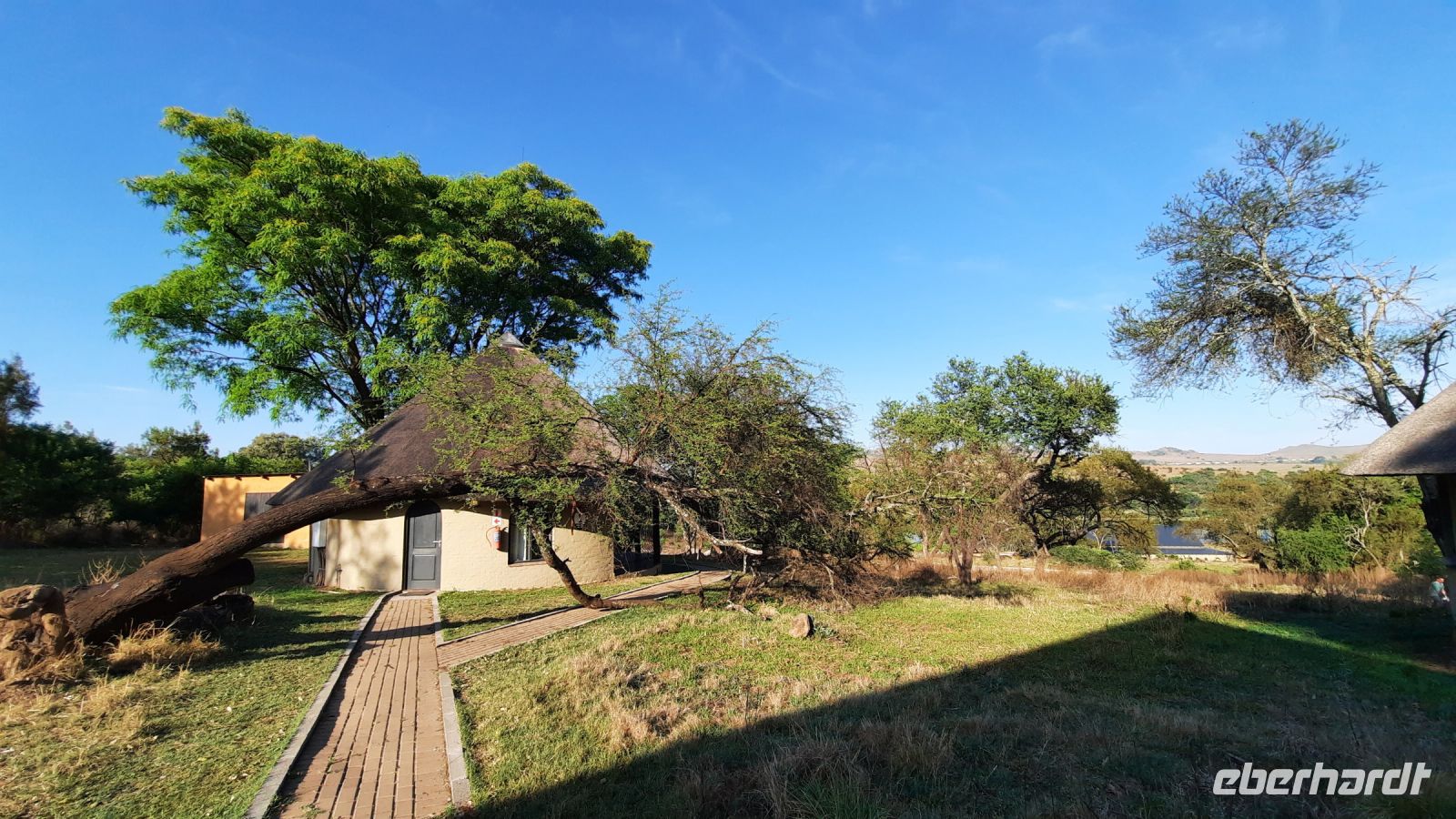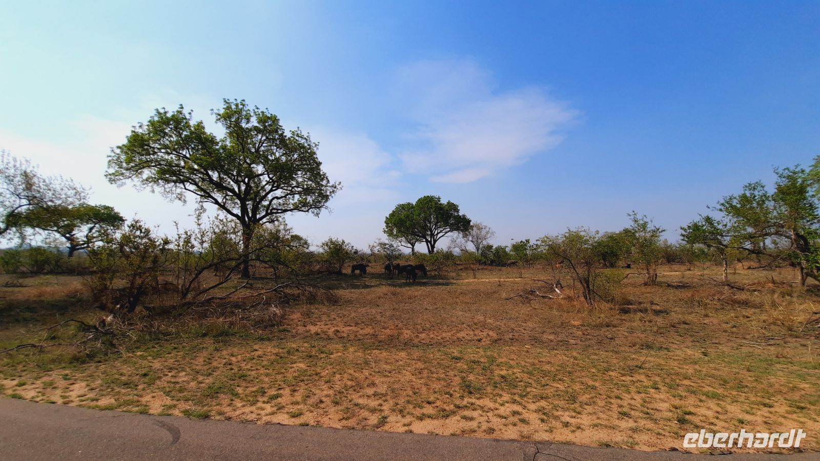 Guten Morgen Krüger-Nationalpark! Mit Sonnenaufgang trafen wir uns zu einem kurzen Frühstück und dann sollte unsere Safari auch schon losgehen. Kurz nachdem wir unsere Lodge verlassen hatten, begegneten wir auch schon zwei der Big Five. Wir sahen einen Büffel und einen frühstückenden Elefanten. Begeistert fuhren wir zum Tor Nnumbi Gate, meldeten unsere kleine illustre Gruppe an und schon machten wir uns auf, die wilden Tiere des Krüger zu entdecken. Schon bald sahen wir Zebras, Impalas, welche sich als Fast Food für die großen Raubtiere herausstellten, und auch ein paar Giraffen. Wir fuhren Wasserlöcher mit Flusspferden an, retteten kleine Schildkröten, kamen einer Büffelherde ganz nah, konnten uns von der Schönheit der Warzenschweine persönlich ein Bild von machen und befanden die majestätischen Kudus für zu schön, um gefressen zu werden. Plötzlich erspähte unser Fahrer etwas in der Ferne. Andere Autos standen bereits vor Ort. Da muss was sein! Und tatsächlich hatte es sich ein Rudel Wildhunde unter einem Baum gemütlich gemacht. Er erzählte uns, dass man sie nur sehr selten zu Gesicht bekommt. Nach einer Erfrischungspause in einem der nahe gelegenen Camps ging unsere Erkundungstour weiter. Nun endlich entdeckten wir auch eine Elefantenherde in der Ferne. Ein weiteres Highlight folgte direkt im Anschluss. Ganz in der Ferne konnte man an einem Wasserloch drei Löwen erkennen. Gut, dass ein Gast ein Fernglas dabei hatte. Während wir weiterfuhren, wären wir doch fast an einem kleinen Rudel junger Löwen vorbeigefahren. Auch diese entspannten sich in der Mittagssonne im Schatten. Die Mähne des Löwen bildet sich erst im frühen Erwachsenenalter vollständig aus, wenn die Löwen vier bis sechs Jahre alt sind. Bis zum Nachmittag sahen wir noch weitere Tiere, wie Dik Diks, Paviane, Gnus, Giraffen und nochmal Elefanten. Somit hatten wir über den Tag verteilt drei der Big Five entdecken können. Nur das Nashorn und den Leopard ließ sich nicht blicken. Da wir noch Zeit bis zum Abendessen hatten, genossen wir ein Bad im Pool. Das Wetter schwang gerade um von sehr heiß und sonnig über den Tag in Gewitter mit kräftigen Regenschauern für den Abend. Schade, hatten wir uns doch auf traditionelles Braai-Abendessen unter freiem Himmel gefreut. Trotzdem glücklich über das Gesehene, verschwanden wir nach dem Abendessen in unseren Bungalows.