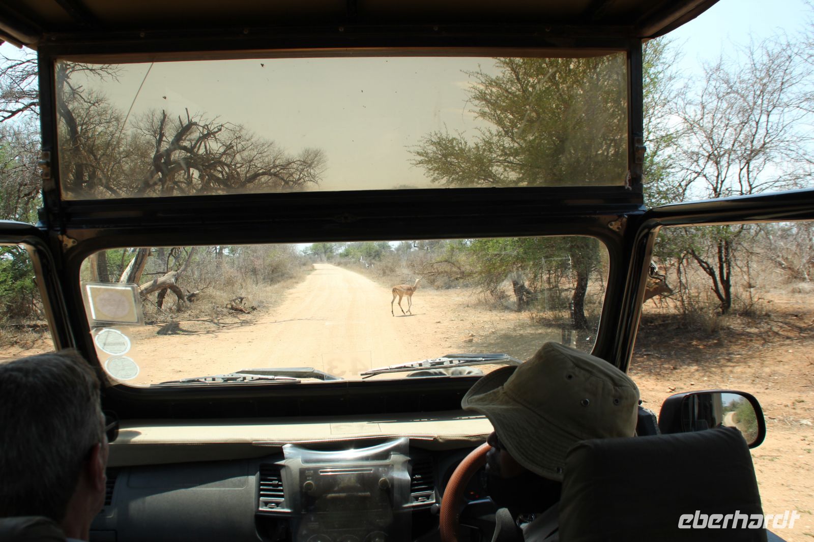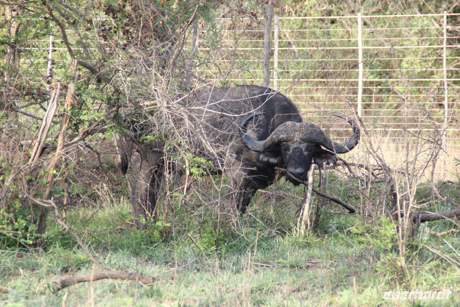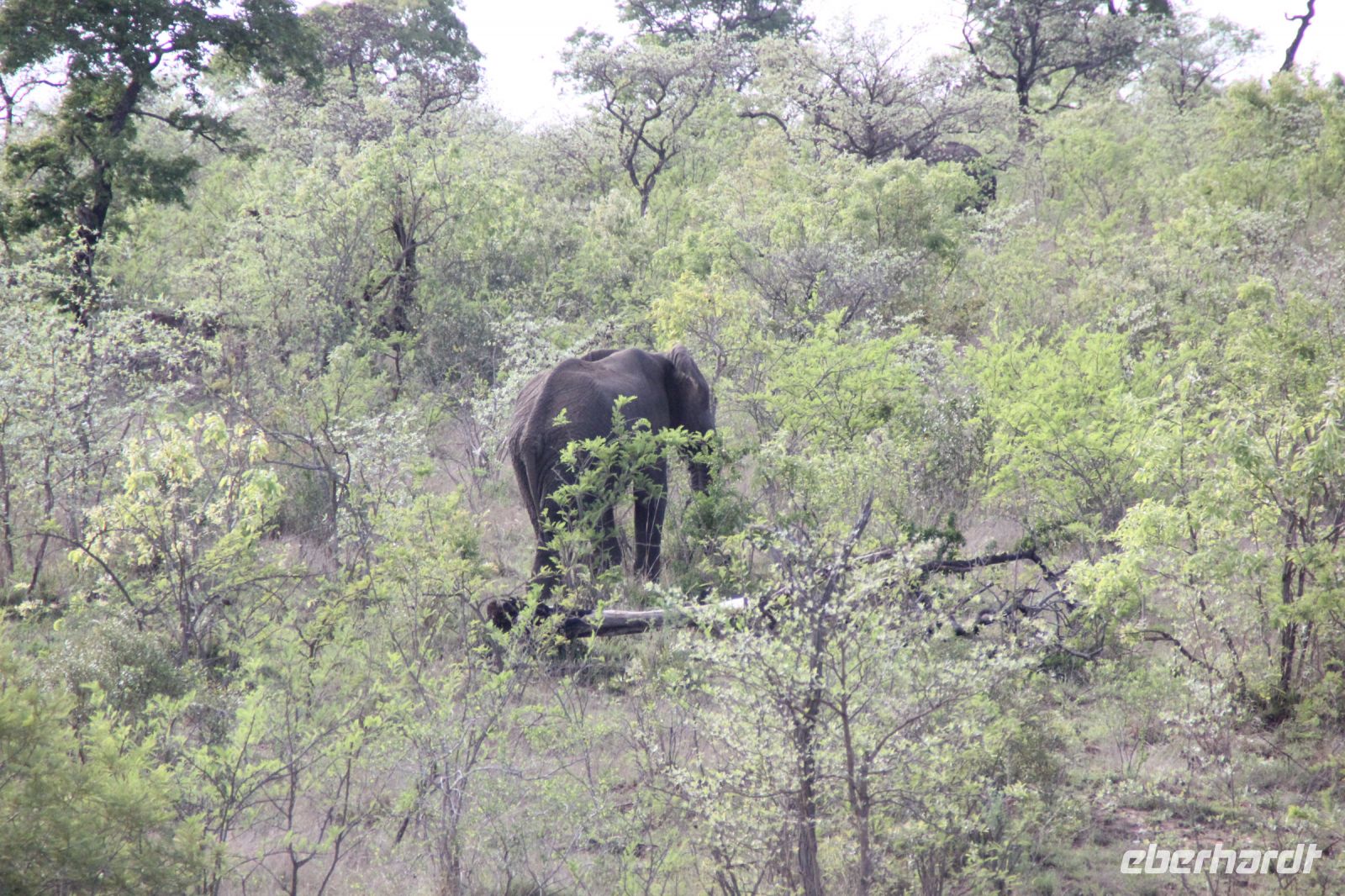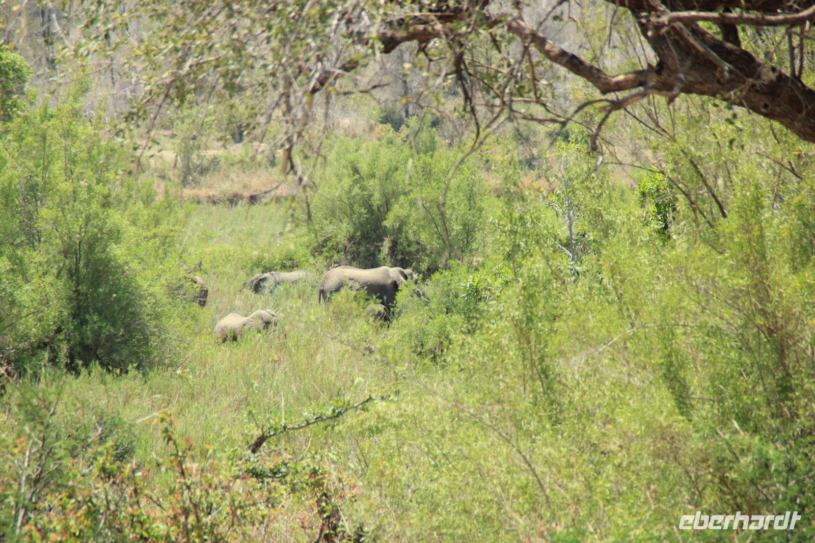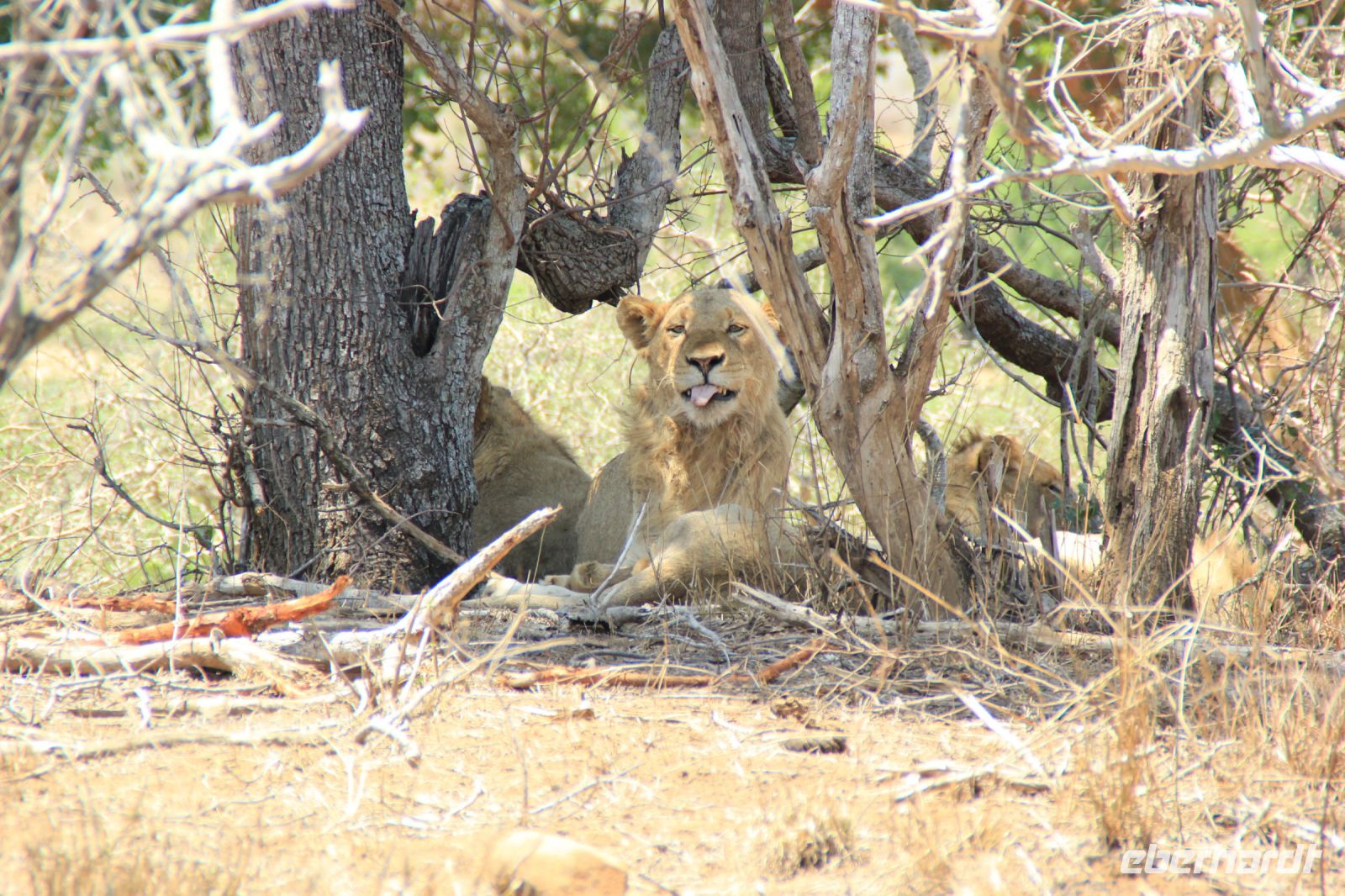 Guten Morgen Krüger-Nationalpark! Mit Sonnenaufgang trafen wir uns zu einem kurzen Frühstück und dann sollte unsere Safari auch schon losgehen. Kurz nachdem wir unsere Lodge verlassen hatten, begegneten wir auch schon zwei der Big Five. Wir sahen einen Büffel und einen frühstückenden Elefanten. Begeistert fuhren wir zum Tor Nnumbi Gate, meldeten unsere kleine illustre Gruppe an und schon machten wir uns auf, die wilden Tiere des Krüger zu entdecken. Schon bald sahen wir Zebras, Impalas, welche sich als Fast Food für die großen Raubtiere herausstellten, und auch ein paar Giraffen. Wir fuhren Wasserlöcher mit Flusspferden an, retteten kleine Schildkröten, kamen einer Büffelherde ganz nah, konnten uns von der Schönheit der Warzenschweine persönlich ein Bild von machen und befanden die majestätischen Kudus für zu schön, um gefressen zu werden. Plötzlich erspähte unser Fahrer etwas in der Ferne. Andere Autos standen bereits vor Ort. Da muss was sein! Und tatsächlich hatte es sich ein Rudel Wildhunde unter einem Baum gemütlich gemacht. Er erzählte uns, dass man sie nur sehr selten zu Gesicht bekommt. Nach einer Erfrischungspause in einem der nahe gelegenen Camps ging unsere Erkundungstour weiter. Nun endlich entdeckten wir auch eine Elefantenherde in der Ferne. Ein weiteres Highlight folgte direkt im Anschluss. Ganz in der Ferne konnte man an einem Wasserloch drei Löwen erkennen. Gut, dass ein Gast ein Fernglas dabei hatte. Während wir weiterfuhren, wären wir doch fast an einem kleinen Rudel junger Löwen vorbeigefahren. Auch diese entspannten sich in der Mittagssonne im Schatten. Die Mähne des Löwen bildet sich erst im frühen Erwachsenenalter vollständig aus, wenn die Löwen vier bis sechs Jahre alt sind. Bis zum Nachmittag sahen wir noch weitere Tiere, wie Dik Diks, Paviane, Gnus, Giraffen und nochmal Elefanten. Somit hatten wir über den Tag verteilt drei der Big Five entdecken können. Nur das Nashorn und den Leopard ließ sich nicht blicken. Da wir noch Zeit bis zum Abendessen hatten, genossen wir ein Bad im Pool. Das Wetter schwang gerade um von sehr heiß und sonnig über den Tag in Gewitter mit kräftigen Regenschauern für den Abend. Schade, hatten wir uns doch auf traditionelles Braai-Abendessen unter freiem Himmel gefreut. Trotzdem glücklich über das Gesehene, verschwanden wir nach dem Abendessen in unseren Bungalows.