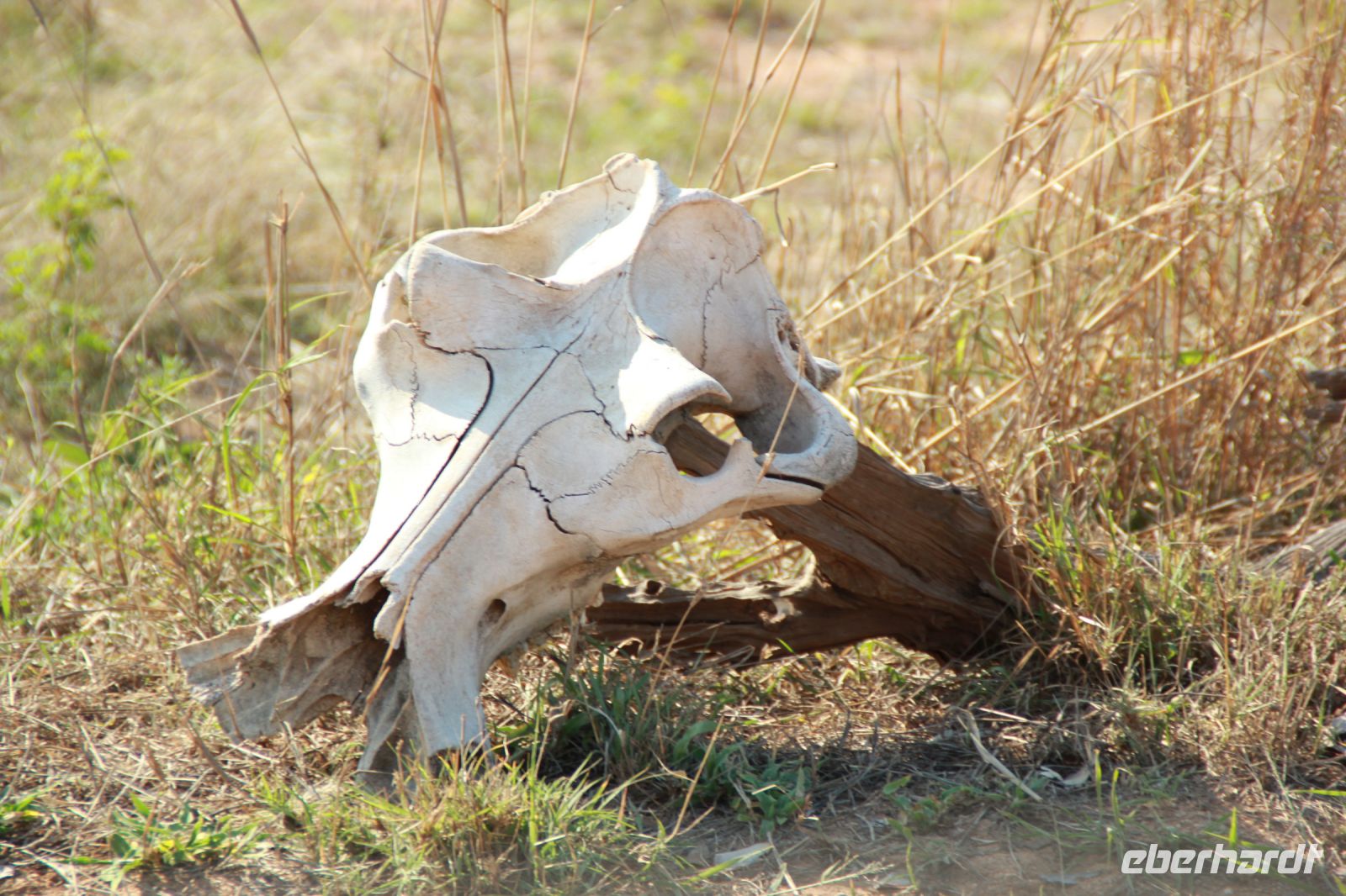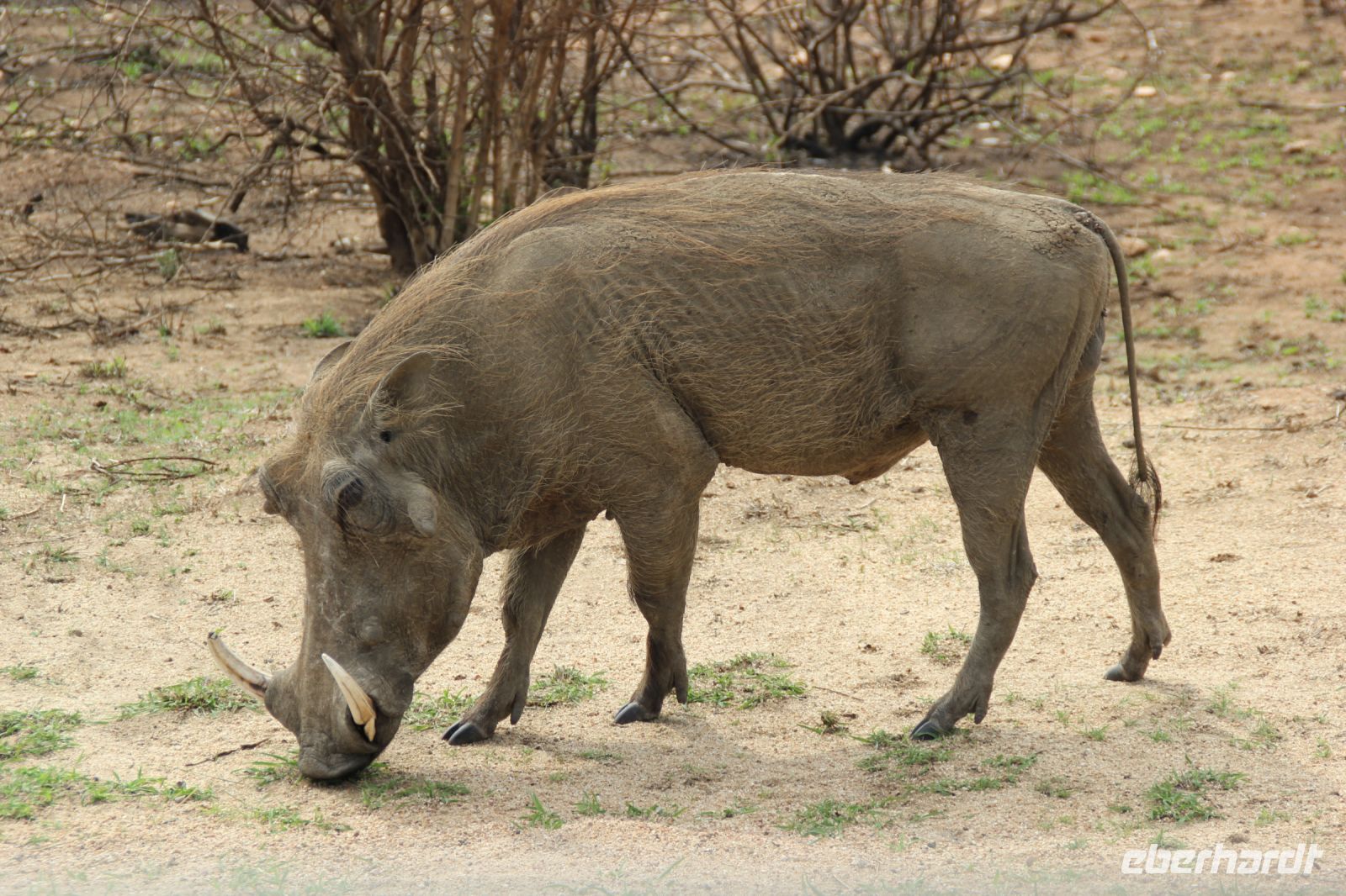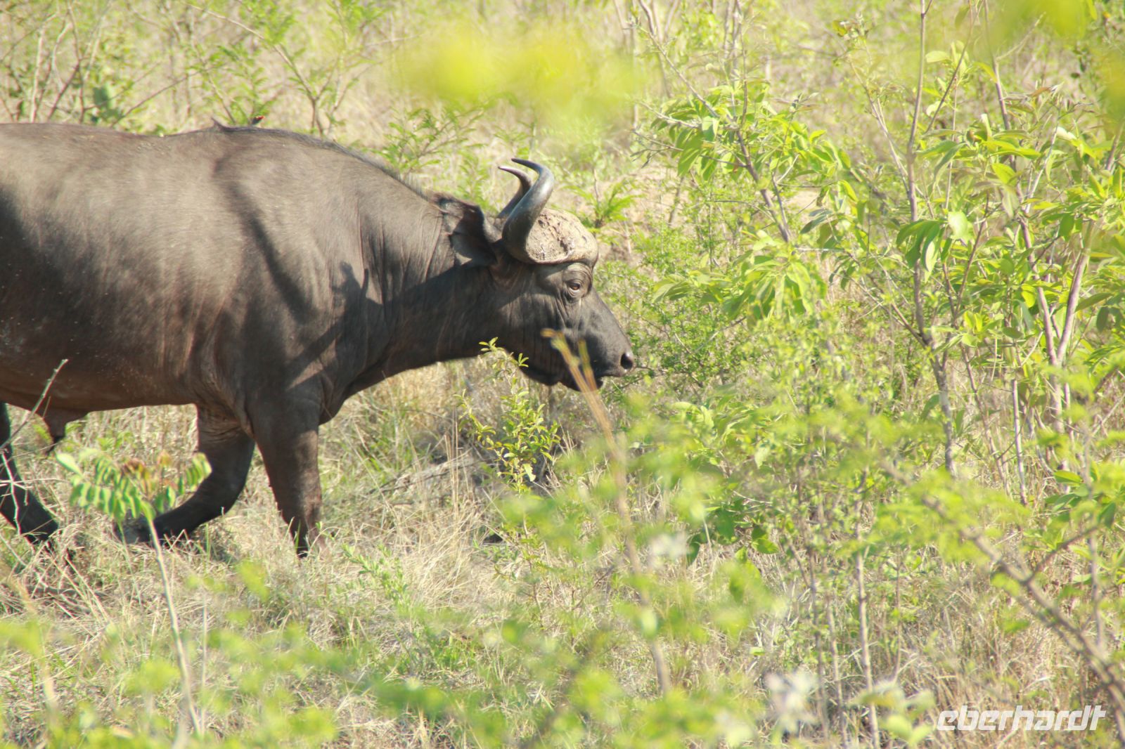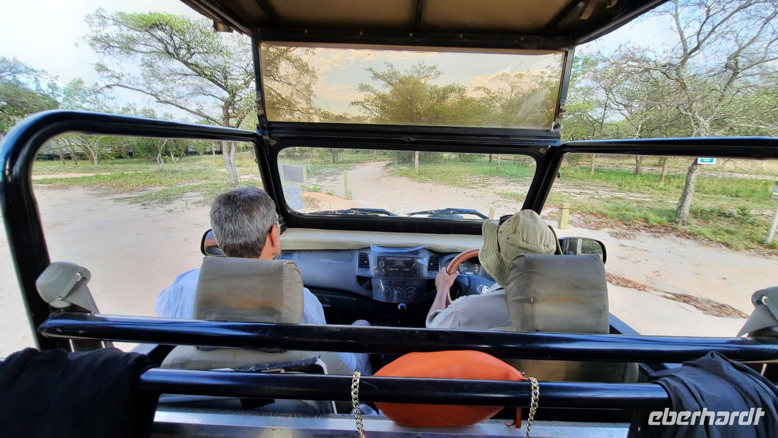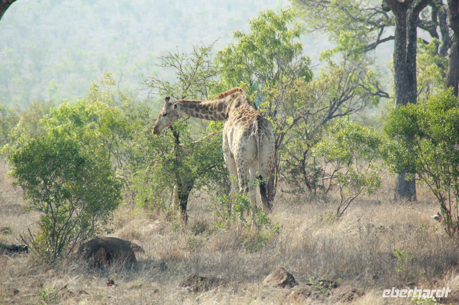 Guten Morgen Krüger-Nationalpark! Mit Sonnenaufgang trafen wir uns zu einem kurzen Frühstück und dann sollte unsere Safari auch schon losgehen. Kurz nachdem wir unsere Lodge verlassen hatten, begegneten wir auch schon zwei der Big Five. Wir sahen einen Büffel und einen frühstückenden Elefanten. Begeistert fuhren wir zum Tor Nnumbi Gate, meldeten unsere kleine illustre Gruppe an und schon machten wir uns auf, die wilden Tiere des Krüger zu entdecken. Schon bald sahen wir Zebras, Impalas, welche sich als Fast Food für die großen Raubtiere herausstellten, und auch ein paar Giraffen. Wir fuhren Wasserlöcher mit Flusspferden an, retteten kleine Schildkröten, kamen einer Büffelherde ganz nah, konnten uns von der Schönheit der Warzenschweine persönlich ein Bild von machen und befanden die majestätischen Kudus für zu schön, um gefressen zu werden. Plötzlich erspähte unser Fahrer etwas in der Ferne. Andere Autos standen bereits vor Ort. Da muss was sein! Und tatsächlich hatte es sich ein Rudel Wildhunde unter einem Baum gemütlich gemacht. Er erzählte uns, dass man sie nur sehr selten zu Gesicht bekommt. Nach einer Erfrischungspause in einem der nahe gelegenen Camps ging unsere Erkundungstour weiter. Nun endlich entdeckten wir auch eine Elefantenherde in der Ferne. Ein weiteres Highlight folgte direkt im Anschluss. Ganz in der Ferne konnte man an einem Wasserloch drei Löwen erkennen. Gut, dass ein Gast ein Fernglas dabei hatte. Während wir weiterfuhren, wären wir doch fast an einem kleinen Rudel junger Löwen vorbeigefahren. Auch diese entspannten sich in der Mittagssonne im Schatten. Die Mähne des Löwen bildet sich erst im frühen Erwachsenenalter vollständig aus, wenn die Löwen vier bis sechs Jahre alt sind. Bis zum Nachmittag sahen wir noch weitere Tiere, wie Dik Diks, Paviane, Gnus, Giraffen und nochmal Elefanten. Somit hatten wir über den Tag verteilt drei der Big Five entdecken können. Nur das Nashorn und den Leopard ließ sich nicht blicken. Da wir noch Zeit bis zum Abendessen hatten, genossen wir ein Bad im Pool. Das Wetter schwang gerade um von sehr heiß und sonnig über den Tag in Gewitter mit kräftigen Regenschauern für den Abend. Schade, hatten wir uns doch auf traditionelles Braai-Abendessen unter freiem Himmel gefreut. Trotzdem glücklich über das Gesehene, verschwanden wir nach dem Abendessen in unseren Bungalows.