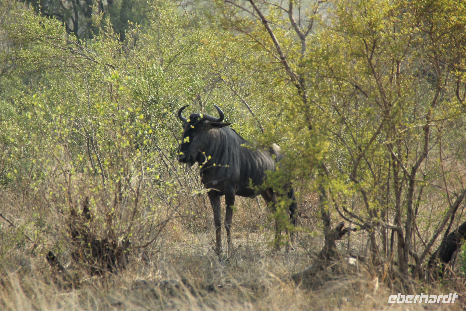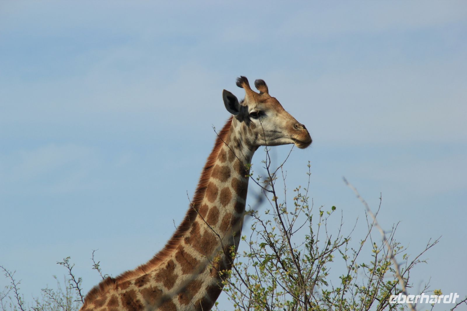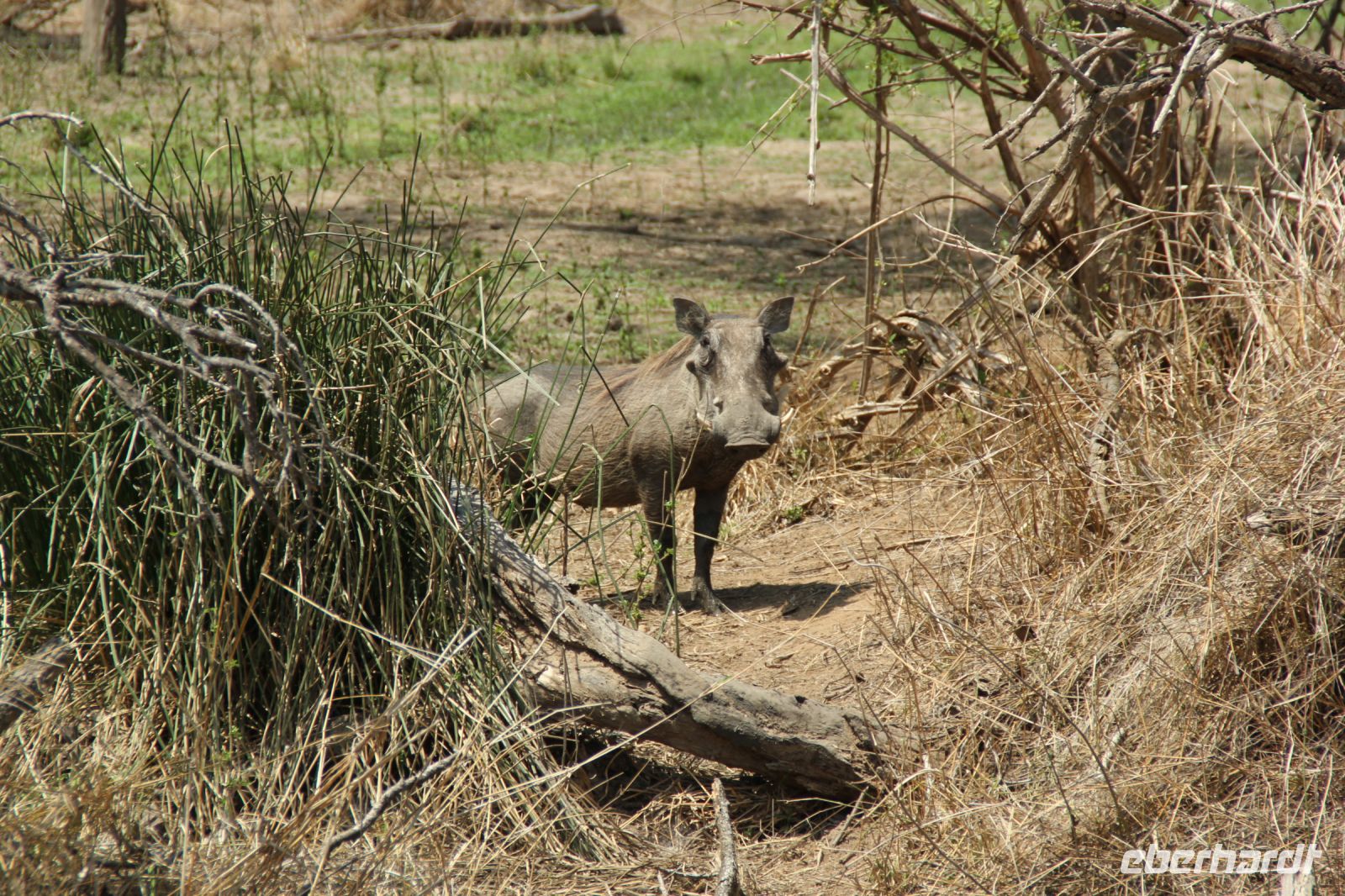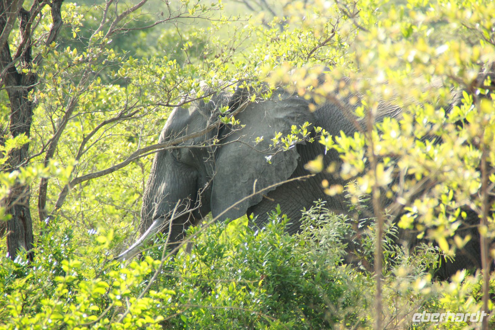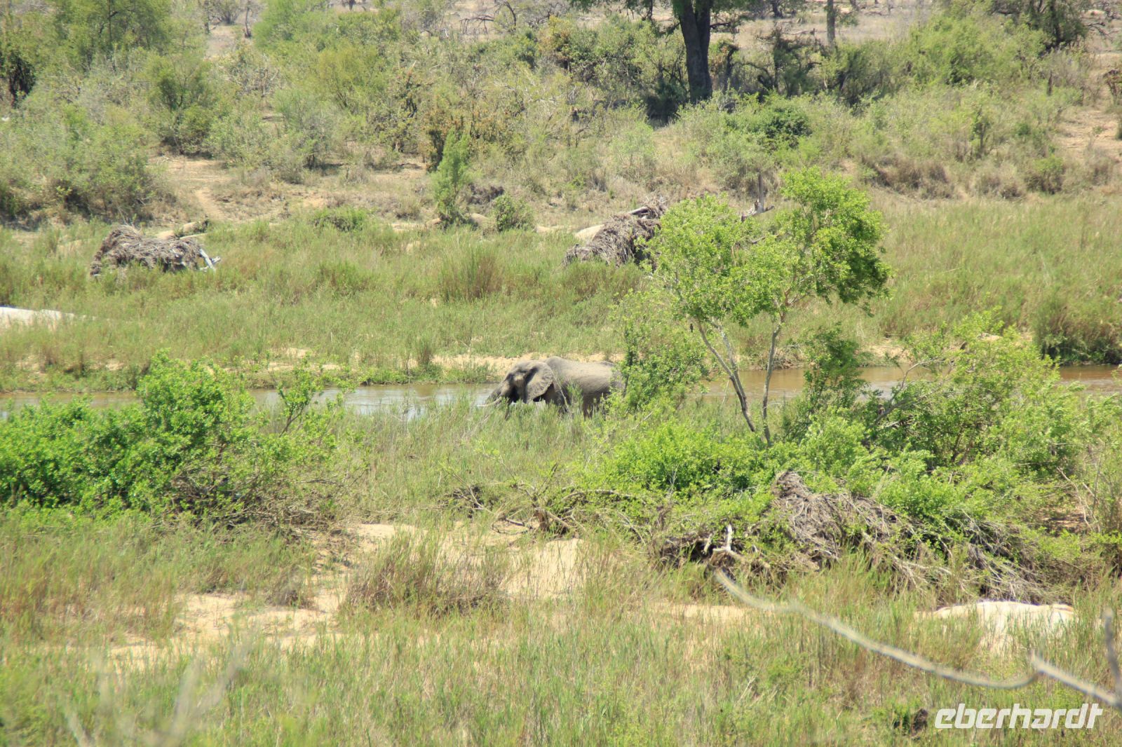 Guten Morgen Krüger-Nationalpark! Mit Sonnenaufgang trafen wir uns zu einem kurzen Frühstück und dann sollte unsere Safari auch schon losgehen. Kurz nachdem wir unsere Lodge verlassen hatten, begegneten wir auch schon zwei der Big Five. Wir sahen einen Büffel und einen frühstückenden Elefanten. Begeistert fuhren wir zum Tor Nnumbi Gate, meldeten unsere kleine illustre Gruppe an und schon machten wir uns auf, die wilden Tiere des Krüger zu entdecken. Schon bald sahen wir Zebras, Impalas, welche sich als Fast Food für die großen Raubtiere herausstellten, und auch ein paar Giraffen. Wir fuhren Wasserlöcher mit Flusspferden an, retteten kleine Schildkröten, kamen einer Büffelherde ganz nah, konnten uns von der Schönheit der Warzenschweine persönlich ein Bild von machen und befanden die majestätischen Kudus für zu schön, um gefressen zu werden. Plötzlich erspähte unser Fahrer etwas in der Ferne. Andere Autos standen bereits vor Ort. Da muss was sein! Und tatsächlich hatte es sich ein Rudel Wildhunde unter einem Baum gemütlich gemacht. Er erzählte uns, dass man sie nur sehr selten zu Gesicht bekommt. Nach einer Erfrischungspause in einem der nahe gelegenen Camps ging unsere Erkundungstour weiter. Nun endlich entdeckten wir auch eine Elefantenherde in der Ferne. Ein weiteres Highlight folgte direkt im Anschluss. Ganz in der Ferne konnte man an einem Wasserloch drei Löwen erkennen. Gut, dass ein Gast ein Fernglas dabei hatte. Während wir weiterfuhren, wären wir doch fast an einem kleinen Rudel junger Löwen vorbeigefahren. Auch diese entspannten sich in der Mittagssonne im Schatten. Die Mähne des Löwen bildet sich erst im frühen Erwachsenenalter vollständig aus, wenn die Löwen vier bis sechs Jahre alt sind. Bis zum Nachmittag sahen wir noch weitere Tiere, wie Dik Diks, Paviane, Gnus, Giraffen und nochmal Elefanten. Somit hatten wir über den Tag verteilt drei der Big Five entdecken können. Nur das Nashorn und den Leopard ließ sich nicht blicken. Da wir noch Zeit bis zum Abendessen hatten, genossen wir ein Bad im Pool. Das Wetter schwang gerade um von sehr heiß und sonnig über den Tag in Gewitter mit kräftigen Regenschauern für den Abend. Schade, hatten wir uns doch auf traditionelles Braai-Abendessen unter freiem Himmel gefreut. Trotzdem glücklich über das Gesehene, verschwanden wir nach dem Abendessen in unseren Bungalows.