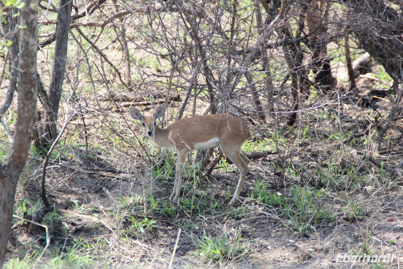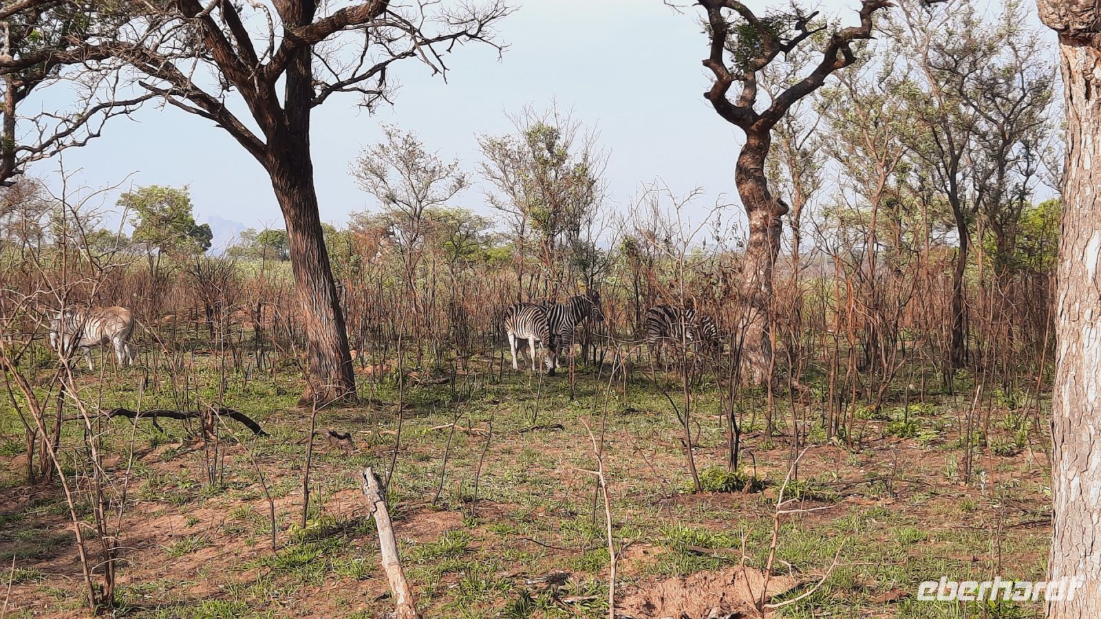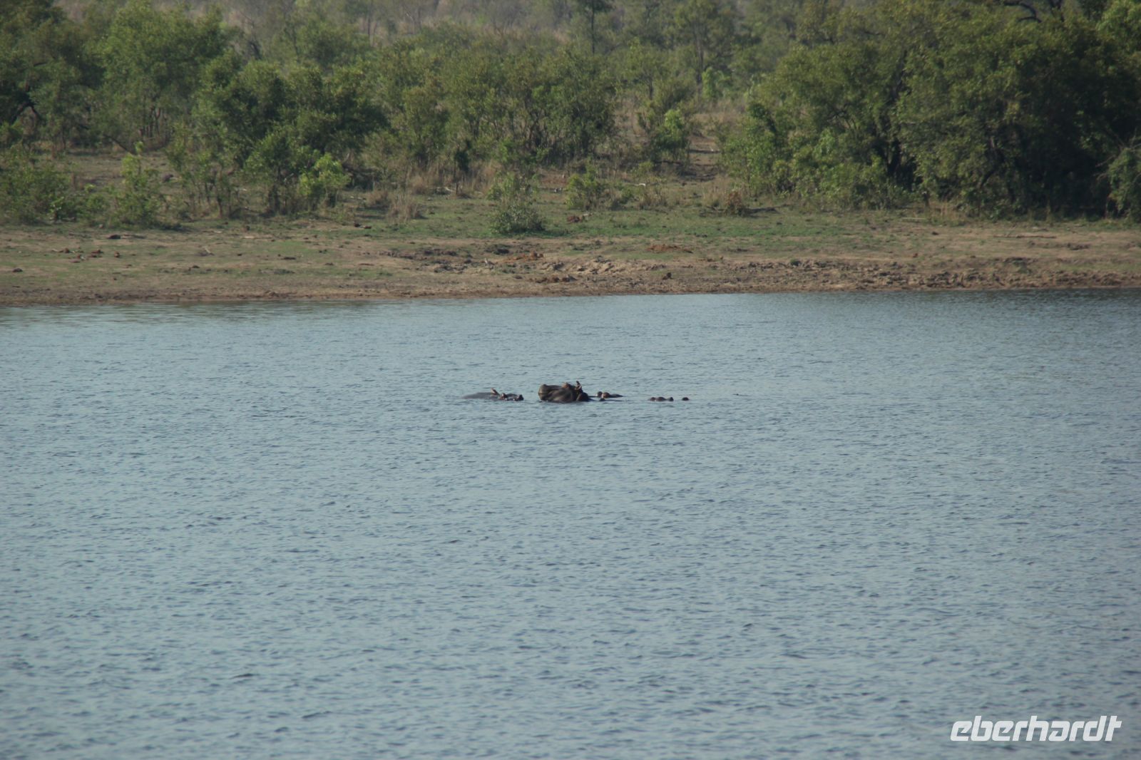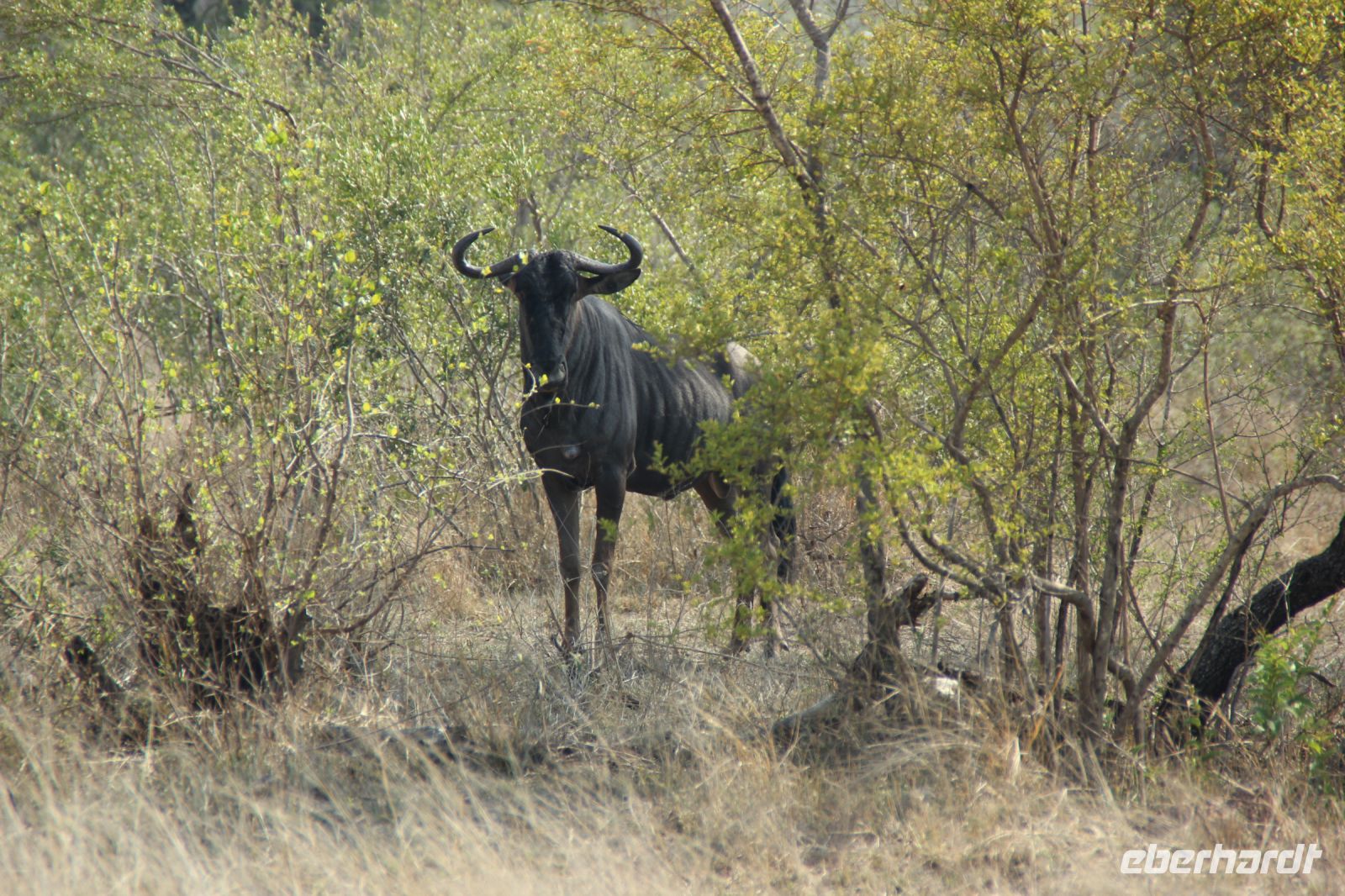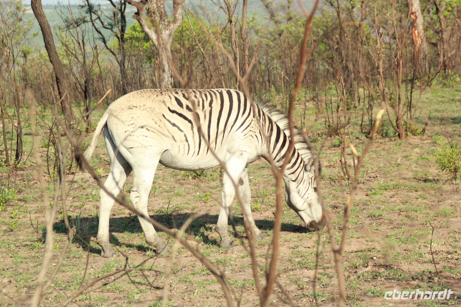 Guten Morgen Krüger-Nationalpark! Mit Sonnenaufgang trafen wir uns zu einem kurzen Frühstück und dann sollte unsere Safari auch schon losgehen. Kurz nachdem wir unsere Lodge verlassen hatten, begegneten wir auch schon zwei der Big Five. Wir sahen einen Büffel und einen frühstückenden Elefanten. Begeistert fuhren wir zum Tor Nnumbi Gate, meldeten unsere kleine illustre Gruppe an und schon machten wir uns auf, die wilden Tiere des Krüger zu entdecken. Schon bald sahen wir Zebras, Impalas, welche sich als Fast Food für die großen Raubtiere herausstellten, und auch ein paar Giraffen. Wir fuhren Wasserlöcher mit Flusspferden an, retteten kleine Schildkröten, kamen einer Büffelherde ganz nah, konnten uns von der Schönheit der Warzenschweine persönlich ein Bild von machen und befanden die majestätischen Kudus für zu schön, um gefressen zu werden. Plötzlich erspähte unser Fahrer etwas in der Ferne. Andere Autos standen bereits vor Ort. Da muss was sein! Und tatsächlich hatte es sich ein Rudel Wildhunde unter einem Baum gemütlich gemacht. Er erzählte uns, dass man sie nur sehr selten zu Gesicht bekommt. Nach einer Erfrischungspause in einem der nahe gelegenen Camps ging unsere Erkundungstour weiter. Nun endlich entdeckten wir auch eine Elefantenherde in der Ferne. Ein weiteres Highlight folgte direkt im Anschluss. Ganz in der Ferne konnte man an einem Wasserloch drei Löwen erkennen. Gut, dass ein Gast ein Fernglas dabei hatte. Während wir weiterfuhren, wären wir doch fast an einem kleinen Rudel junger Löwen vorbeigefahren. Auch diese entspannten sich in der Mittagssonne im Schatten. Die Mähne des Löwen bildet sich erst im frühen Erwachsenenalter vollständig aus, wenn die Löwen vier bis sechs Jahre alt sind. Bis zum Nachmittag sahen wir noch weitere Tiere, wie Dik Diks, Paviane, Gnus, Giraffen und nochmal Elefanten. Somit hatten wir über den Tag verteilt drei der Big Five entdecken können. Nur das Nashorn und den Leopard ließ sich nicht blicken. Da wir noch Zeit bis zum Abendessen hatten, genossen wir ein Bad im Pool. Das Wetter schwang gerade um von sehr heiß und sonnig über den Tag in Gewitter mit kräftigen Regenschauern für den Abend. Schade, hatten wir uns doch auf traditionelles Braai-Abendessen unter freiem Himmel gefreut. Trotzdem glücklich über das Gesehene, verschwanden wir nach dem Abendessen in unseren Bungalows.