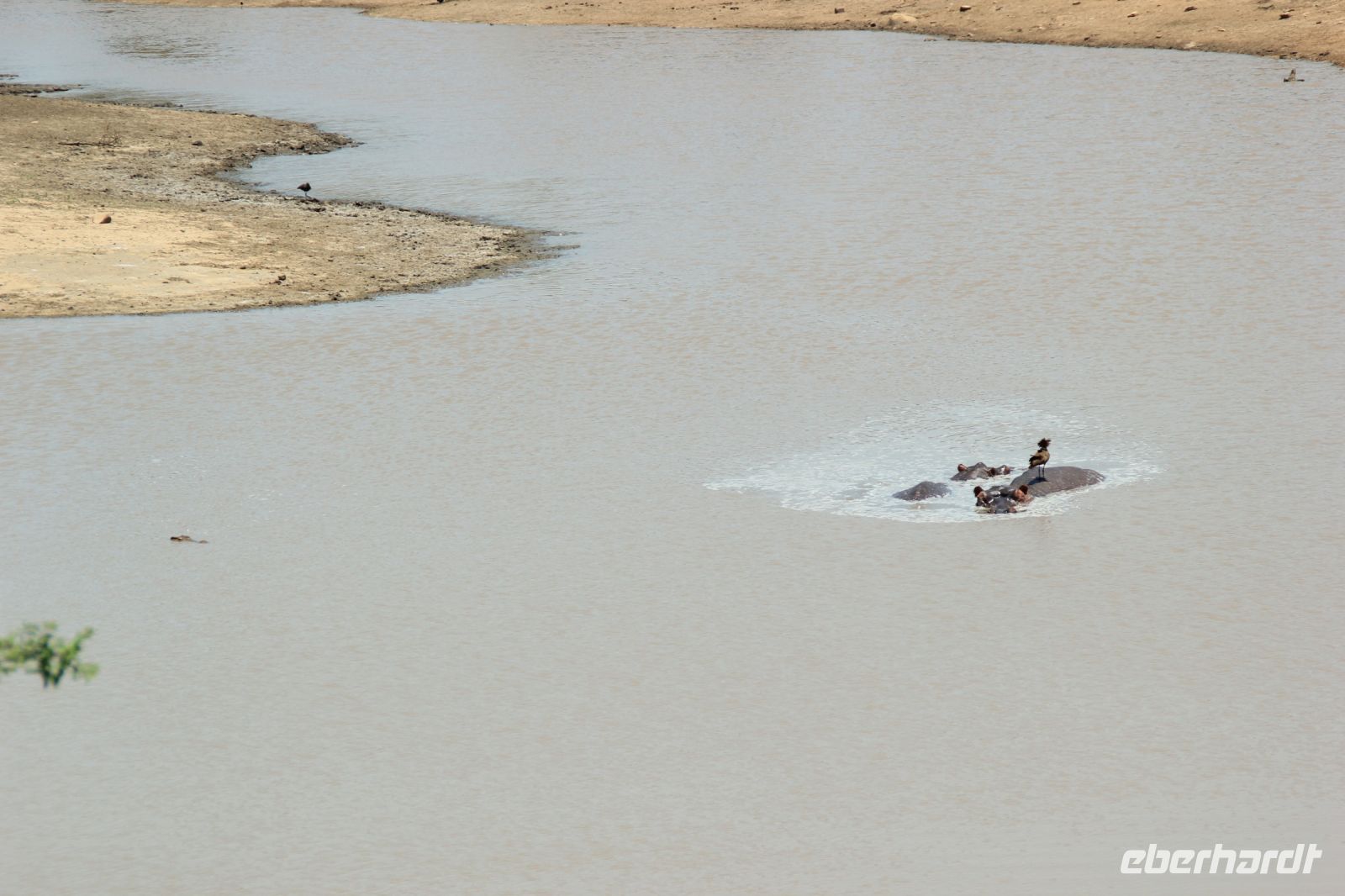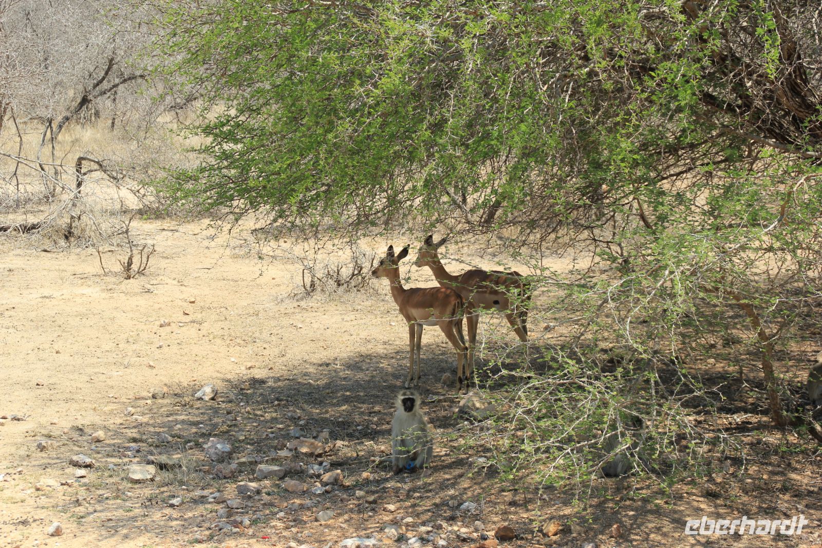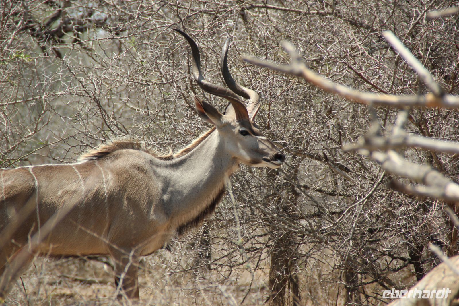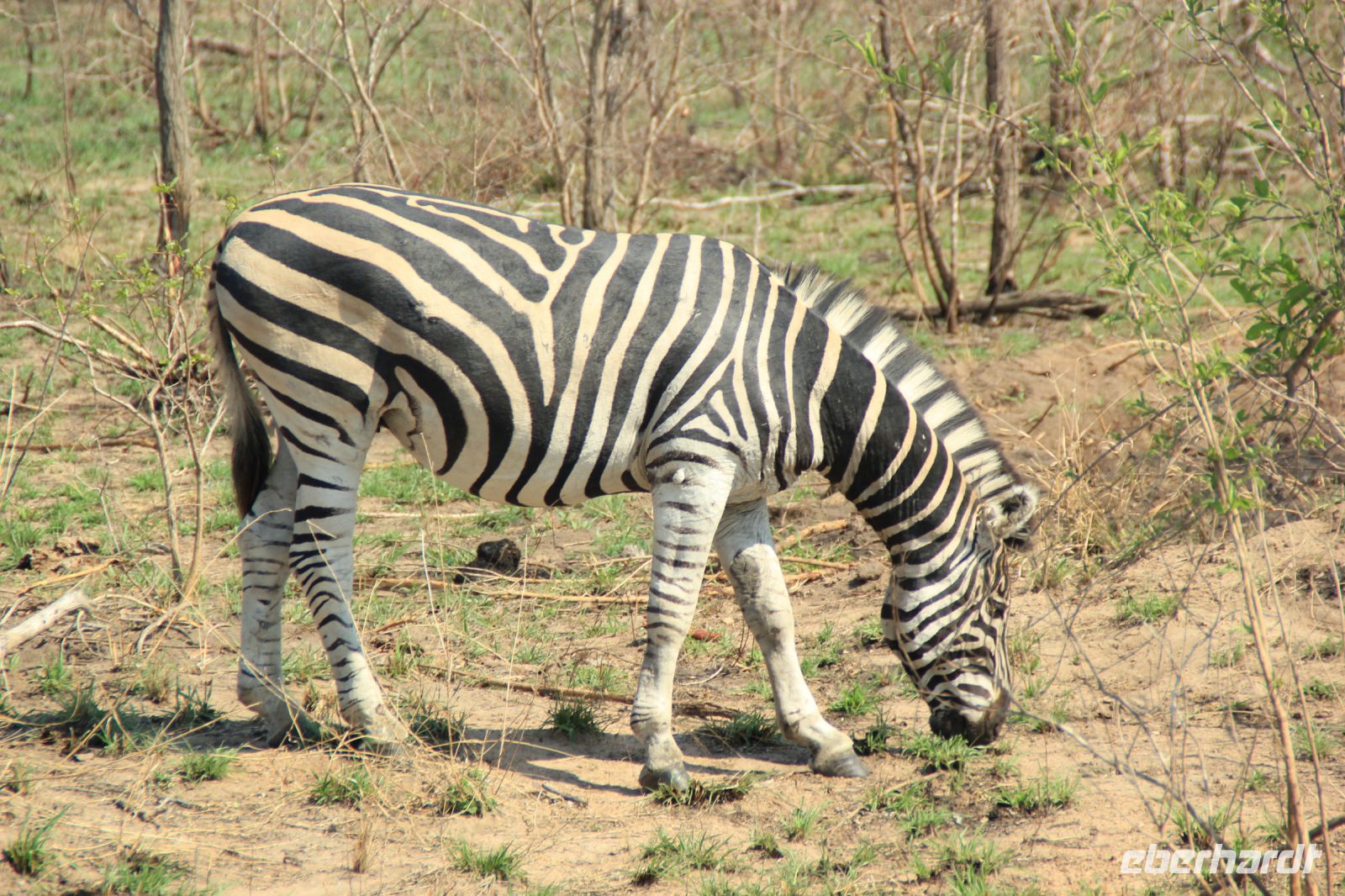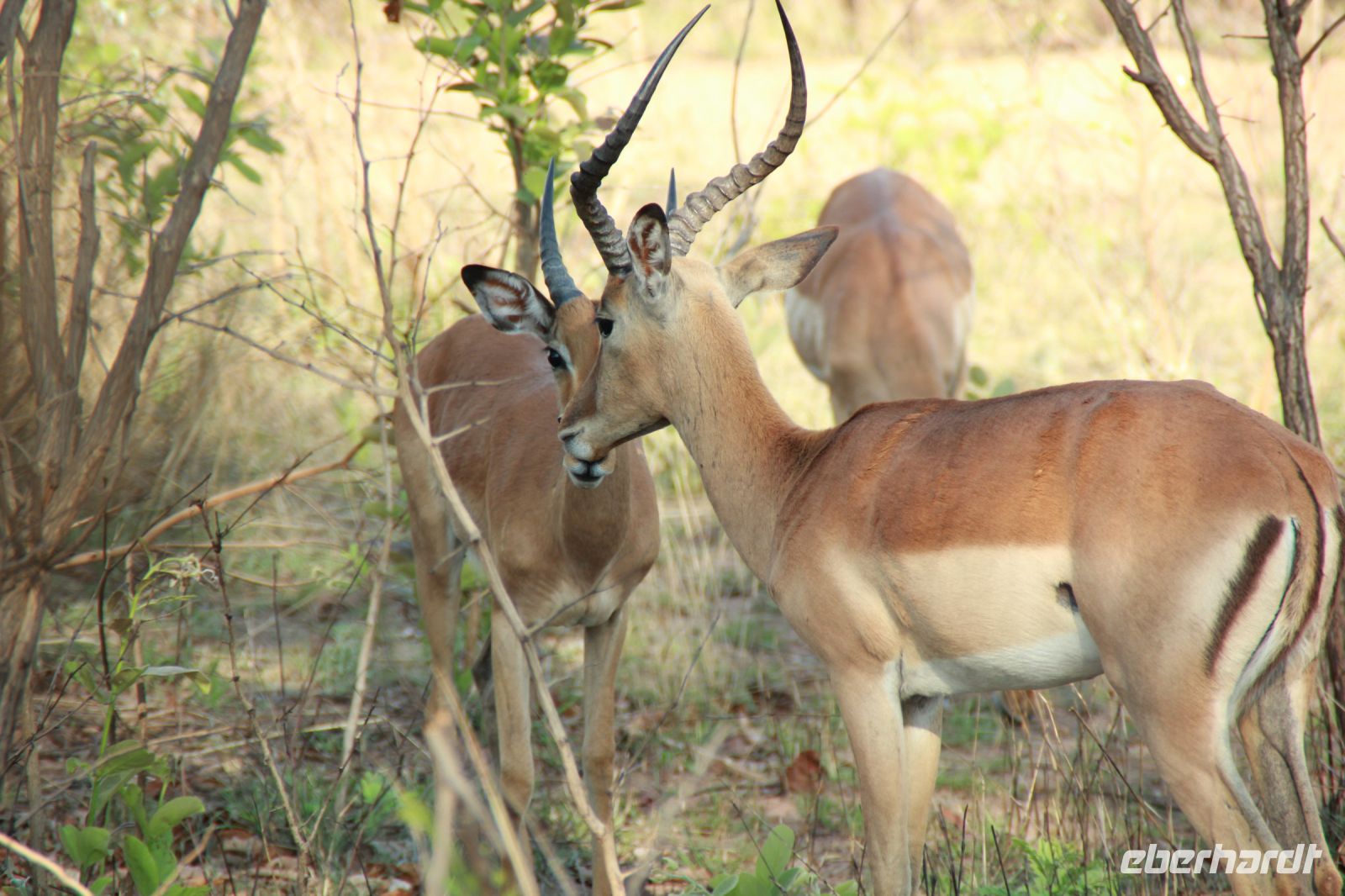 Guten Morgen Krüger-Nationalpark! Mit Sonnenaufgang trafen wir uns zu einem kurzen Frühstück und dann sollte unsere Safari auch schon losgehen. Kurz nachdem wir unsere Lodge verlassen hatten, begegneten wir auch schon zwei der Big Five. Wir sahen einen Büffel und einen frühstückenden Elefanten. Begeistert fuhren wir zum Tor Nnumbi Gate, meldeten unsere kleine illustre Gruppe an und schon machten wir uns auf, die wilden Tiere des Krüger zu entdecken. Schon bald sahen wir Zebras, Impalas, welche sich als Fast Food für die großen Raubtiere herausstellten, und auch ein paar Giraffen. Wir fuhren Wasserlöcher mit Flusspferden an, retteten kleine Schildkröten, kamen einer Büffelherde ganz nah, konnten uns von der Schönheit der Warzenschweine persönlich ein Bild von machen und befanden die majestätischen Kudus für zu schön, um gefressen zu werden. Plötzlich erspähte unser Fahrer etwas in der Ferne. Andere Autos standen bereits vor Ort. Da muss was sein! Und tatsächlich hatte es sich ein Rudel Wildhunde unter einem Baum gemütlich gemacht. Er erzählte uns, dass man sie nur sehr selten zu Gesicht bekommt. Nach einer Erfrischungspause in einem der nahe gelegenen Camps ging unsere Erkundungstour weiter. Nun endlich entdeckten wir auch eine Elefantenherde in der Ferne. Ein weiteres Highlight folgte direkt im Anschluss. Ganz in der Ferne konnte man an einem Wasserloch drei Löwen erkennen. Gut, dass ein Gast ein Fernglas dabei hatte. Während wir weiterfuhren, wären wir doch fast an einem kleinen Rudel junger Löwen vorbeigefahren. Auch diese entspannten sich in der Mittagssonne im Schatten. Die Mähne des Löwen bildet sich erst im frühen Erwachsenenalter vollständig aus, wenn die Löwen vier bis sechs Jahre alt sind. Bis zum Nachmittag sahen wir noch weitere Tiere, wie Dik Diks, Paviane, Gnus, Giraffen und nochmal Elefanten. Somit hatten wir über den Tag verteilt drei der Big Five entdecken können. Nur das Nashorn und den Leopard ließ sich nicht blicken. Da wir noch Zeit bis zum Abendessen hatten, genossen wir ein Bad im Pool. Das Wetter schwang gerade um von sehr heiß und sonnig über den Tag in Gewitter mit kräftigen Regenschauern für den Abend. Schade, hatten wir uns doch auf traditionelles Braai-Abendessen unter freiem Himmel gefreut. Trotzdem glücklich über das Gesehene, verschwanden wir nach dem Abendessen in unseren Bungalows.