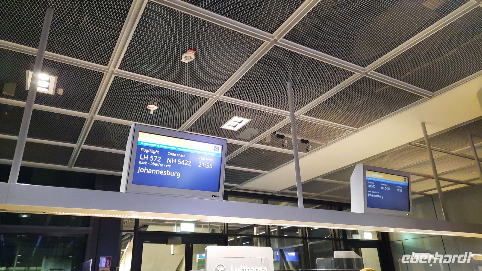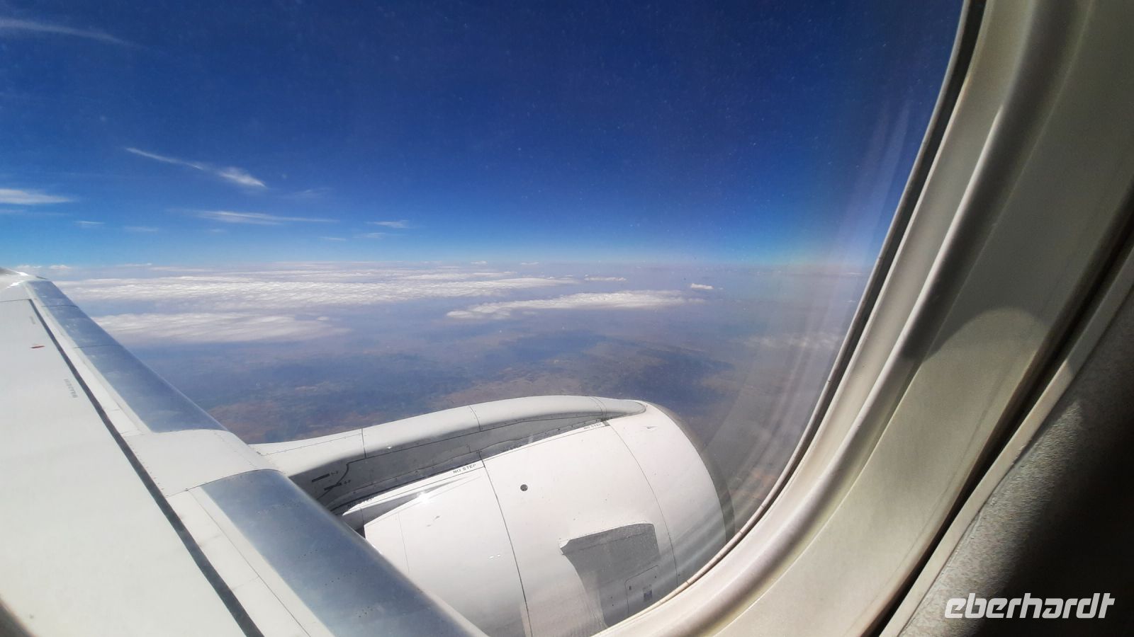 Gemeinsam trafen wir uns auf dem Flughafen in Frankfurt am Main und flogen mit Lufthansa nach Südafrika. Wir flogen mit der "Königin der Lüfte", einer Boing 747, welche seit ihrer Entwicklung in den 60-Jahren über mehrere Jahrzehnte das weltgrößte Passagierflugzeug war. Der Flug war sehr ruhig und so konnten wir die ein oder ander Minute auch in den Schlaf finden.