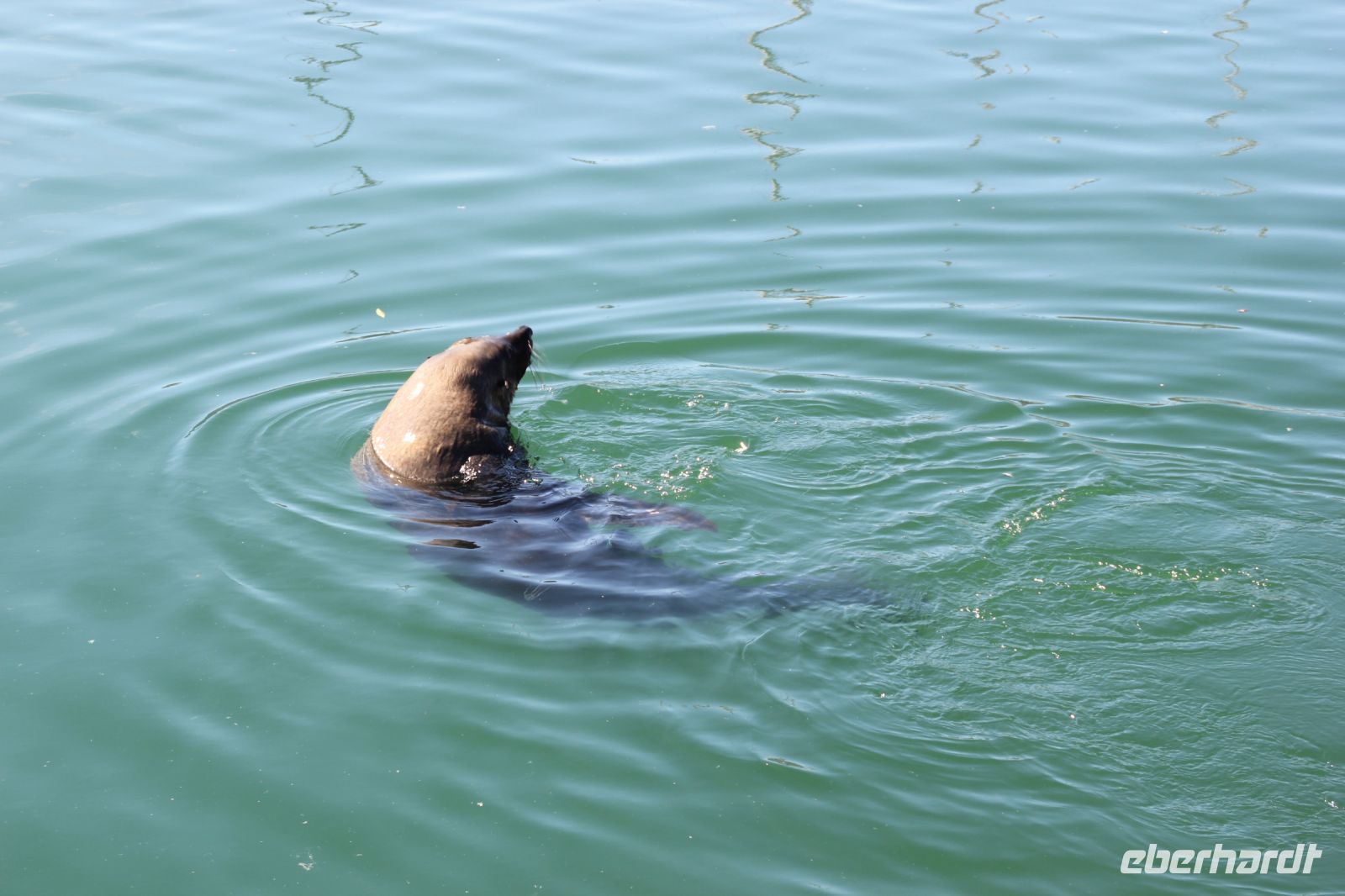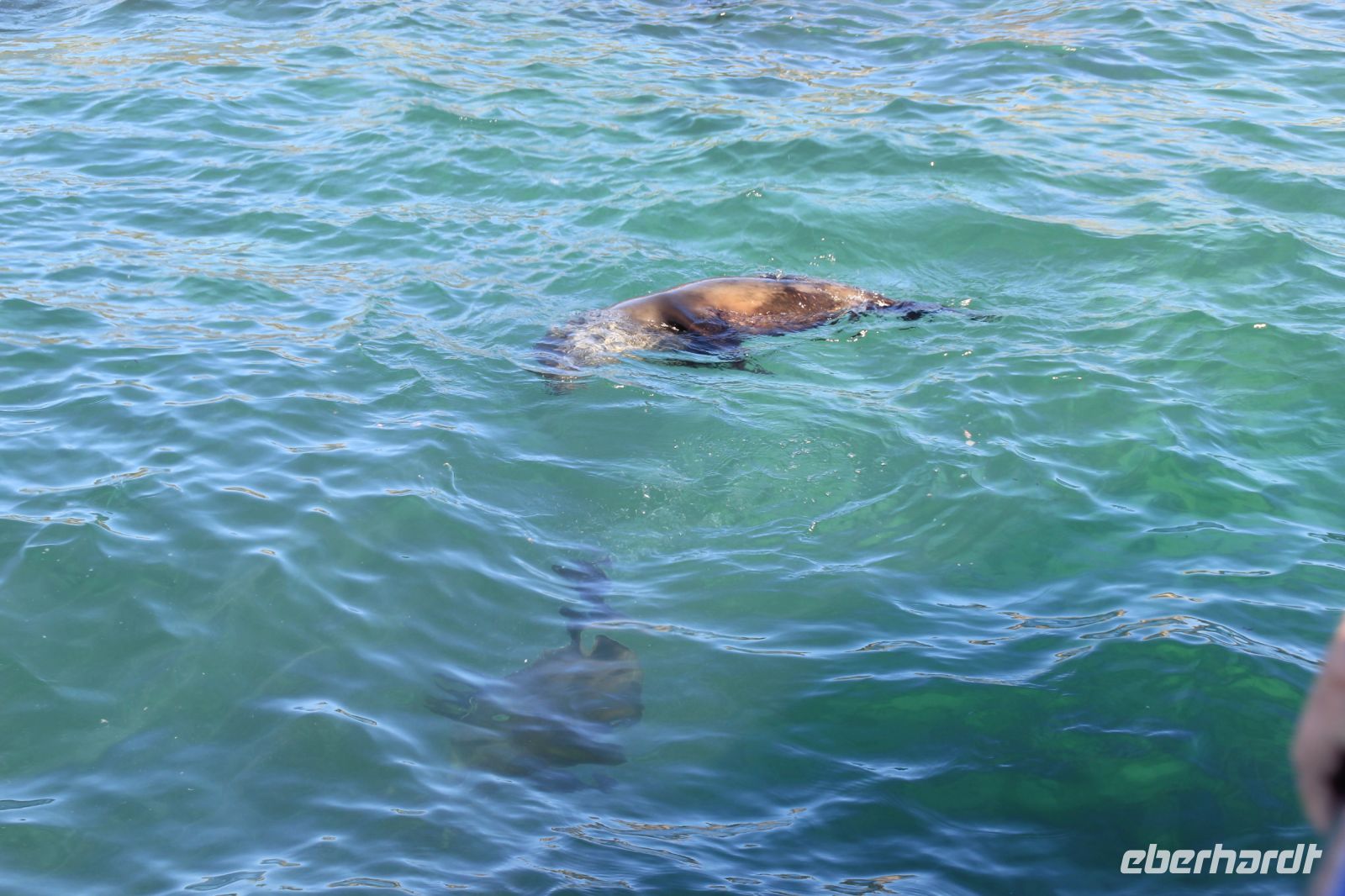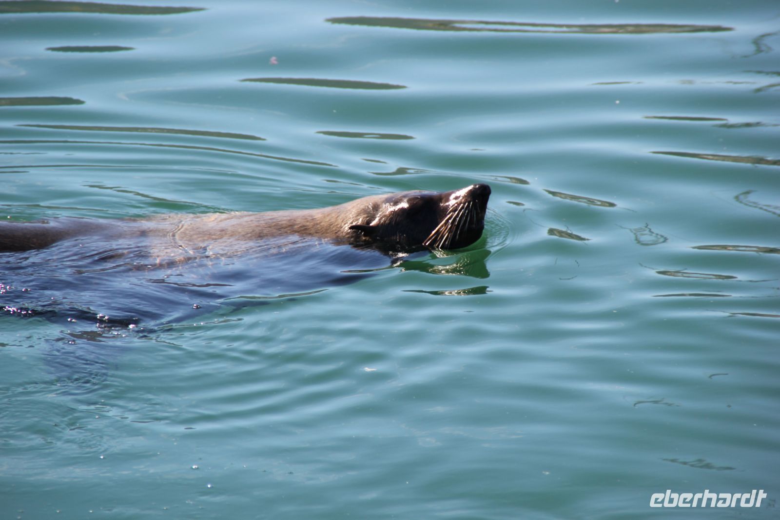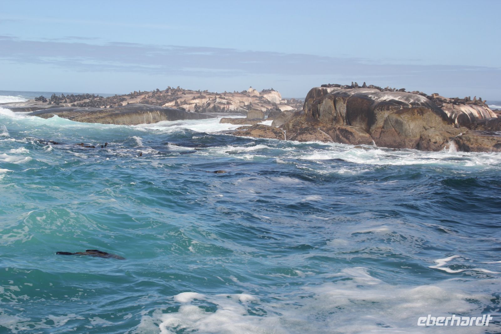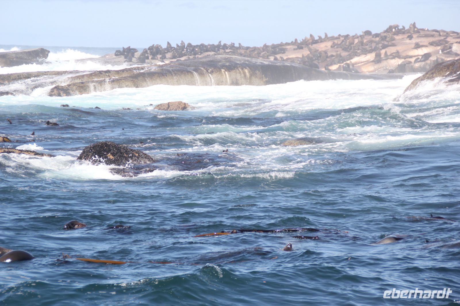 Nach einem guten Frühstück starteten wir vergnügt in den Tag. Das Wetter war perfekt, die Sonne schien und der Himmel war blau. Über Green Point mit seinem kaum genutzten WM-Stadium bis zum gehobenen Stadtteil Clifton fuhren wir immer an der Küste Kapstadts entlang. Im Vorort Camps Bay hielten wir für einen Fotostopp und bewunderten abermals die weißen Sandstrände und natürlichen Felsenpools. Der Ausblick auf die Bergkette „Zwölf Apostel“ war beeindruckend. In Hout Bay angekommen, stiegen wir im Hafen auf ein Boot und schipperten auf das Meer. Wir genossen den im Bauch kribbelnden Wellengang und steuerten dabei auf die Seal-Island zu, welche tausende Robben beherbergte. Gespannt sahen wir auf das quirlige Treiben im Wasser und auf den Felsen. Egal, wo man hinschaute, eine Flosse, eine Nase oder schwarze Kulleraugen konnte man immer entdecken. Wieder zurück im Hafen bummelten wir entlang der bunten Stände und fuhren anschließend Richtung Kap-Nationalpark. Da der Chapmans Peak geschlossen war, nahmen wir einen kurzen Umweg und sahen bereits jetzt schon die bunten Holzhäuser von Muizenberg. Diese werden als Umkleidekabinen genutzt und „Edwardian Beach Houses“ genannt. Auch eine kleine Pavianfamilie kreuzte unseren Weg. Während eines kleinen Stopps in Simons Town konnten wir die Beine vertreten und der Statue von der Dogge Just Nuisance einen Besuch abstatten. Die Dogge wurde in den 40er Jahren bei der Royal Navy als Vollmatrose geführt und war er der einzige Hund, der jemals eine solche Position einnahm. Er spendete während des Zweiten Weltkrieges mit seiner zutraulichen Art vielen Soldaten Trost, trennte sich streitende Seeleute aber fuhr niemals selbst zur See. 1985 wurde dann ihm zu Ehren dieses Denkmal am Jubilee Square aufgestellt.