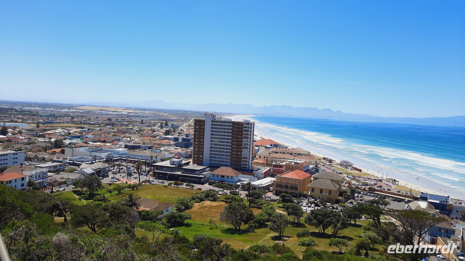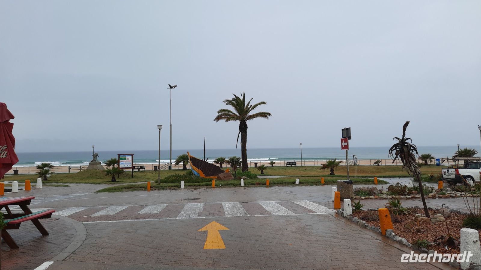 Nach dem Frühstück wurden wir Frans zum Flughafen Johannesburg gefahren und nachdem alle Probleme behoben waren, flogen wir mit SA Airlink Richtung Süden nach Port Elisabeth. Dort wurden wir von Herbie herzlich in Empfang genommen und wir fuhren zum Hotel am Strand. Es war sehr regnerisch, windig und kalt. Ebenso gar nicht das Wetter, was man von einem Hafen- und auch Badeort an der Sunshine Coast am Indischen Ozean erwartet hätte. Da wir diese Tatsache aber leider nicht ändern konnten, starteten wir unsere kleine Rundfahrt in Port Elisabeth. Wir spazierten am Gedenkpark Donkin Reserve mit der Steinpyramide und dem Leuchtturm, betrachteten ein altes verlassenes Hotel, schnatterten mit Sicherheitskräften über den Verbleib des Hotels und hielten kurz am Spar. Es war Sonntag, somit hatte nur dieser Supermarkt geöffnet. Den Nachmittag konnte jeder nach seiner Facon verbringen. Einige Gäste spazierten entlang der Strandpromenade, hielten die Füße ins Wasser und besuchten ein Café. Den Abend verbrachten wir in geselliger Runde.