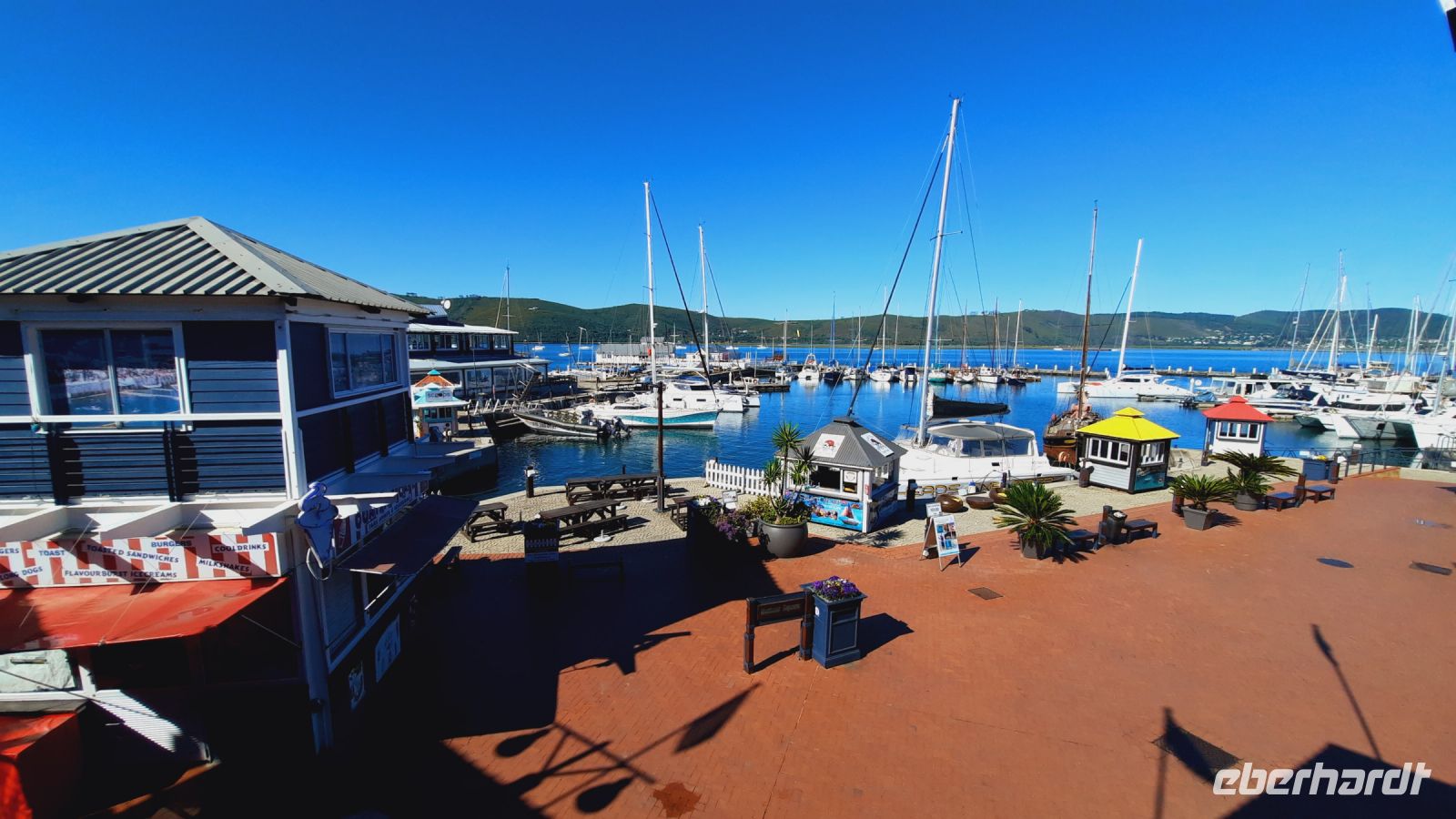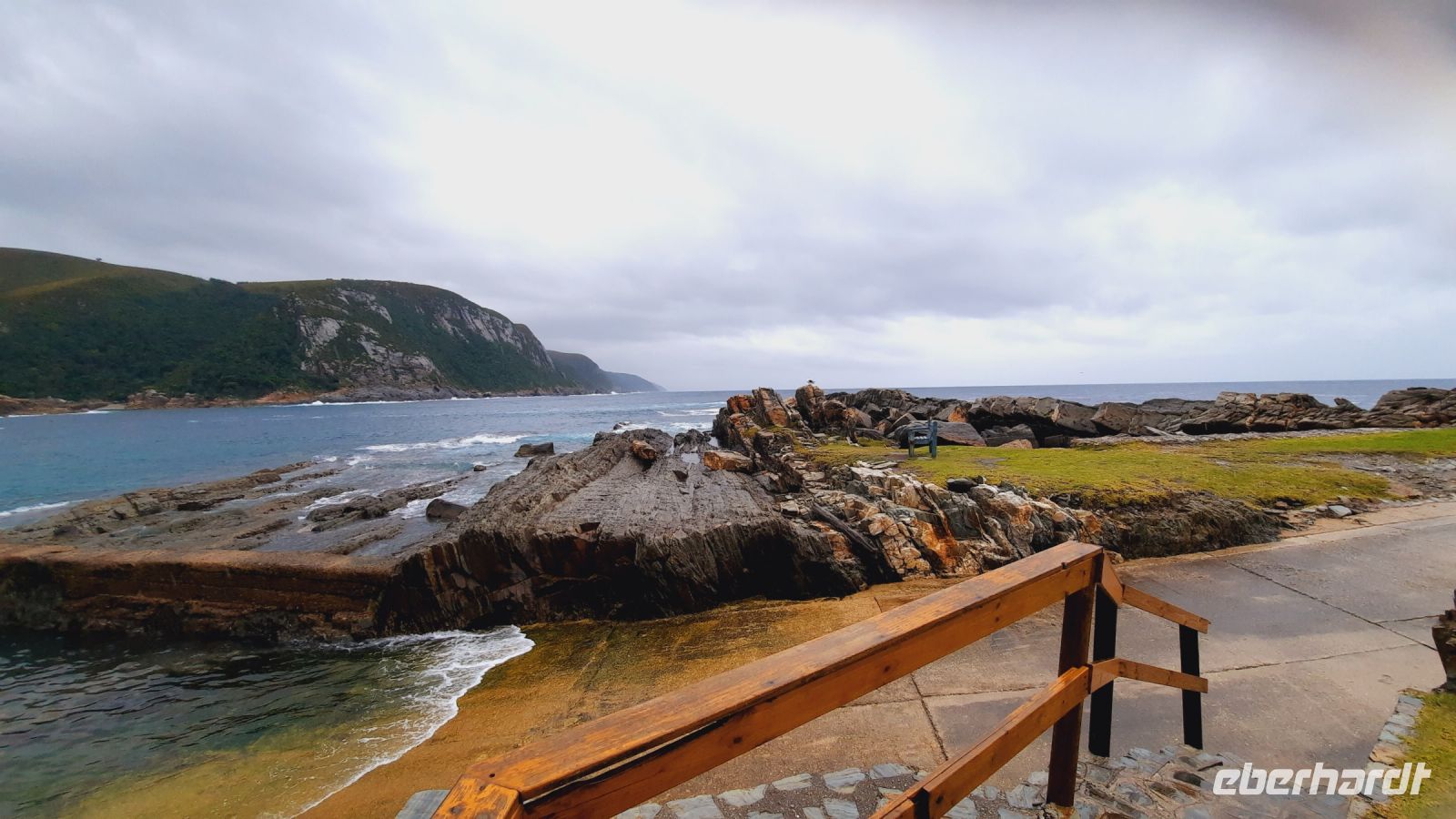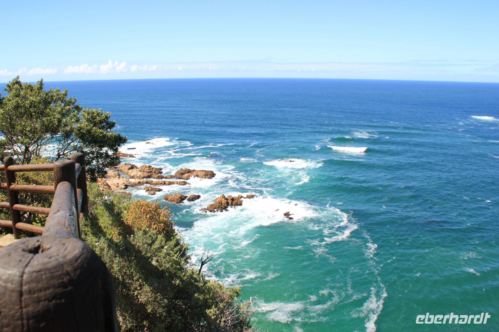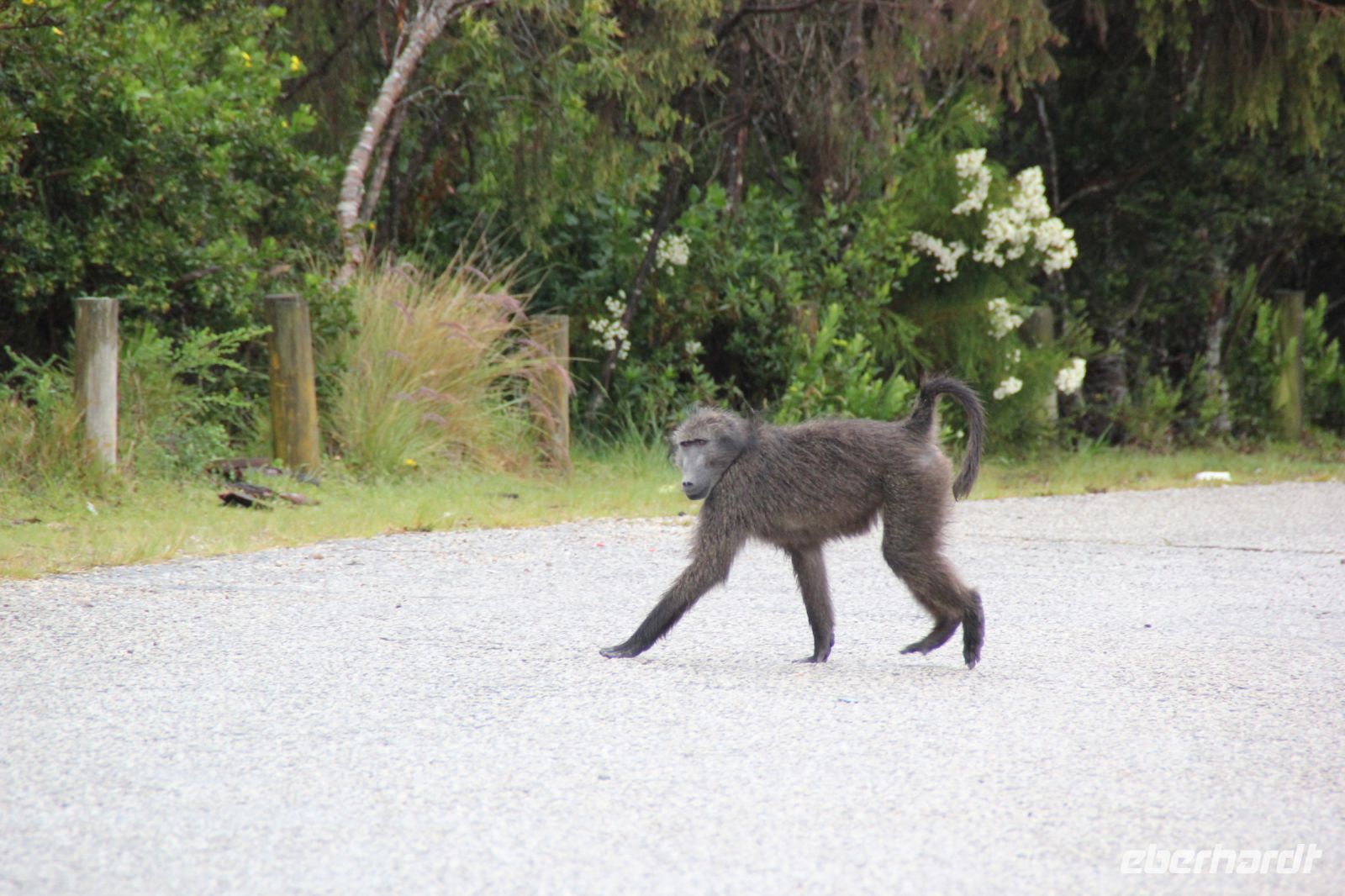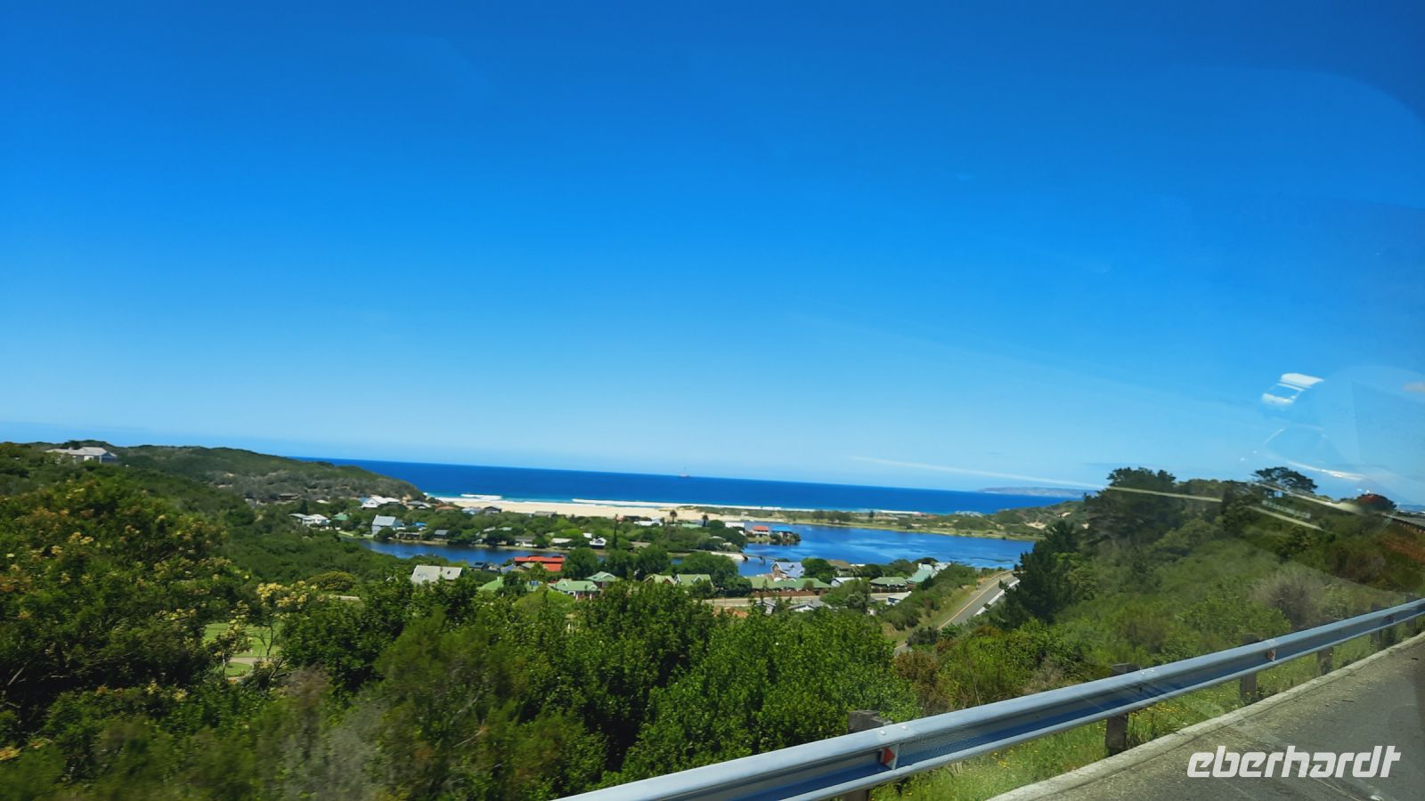 Beim Big Tree hatten wir leider kein Glück, so konnten wir den 1.000 Jahre alten Gelbholzbaum nicht live und in Farbe sehen. Wir fuhren weiter zur legendären Bluekrans-Bridge, einer 190 Meter langen Betonbogenbrücke, die bei Bungee Jumpern sehr beliebt ist. Bei unserer Ankunft störten wir eine Pavian-Familie, die an den Souvenirständen umherspazierte und so fuhren wir rasch weiter. Unterwegs nach Knysna hielten wir noch in Plettenberg Bay, ein Ort der direkt am Meer liegt und für seine langen Sandstrände bei Urlaubern sehr beliebt ist. Am Aussichtspunkt hielten wir Ausschau nach Walen, bemerkten allerdings, dass wir heute kein Glück hatten. Also machten wir uns auf den Weg nach Knysna, ebenfalls ein sehr beliebter Urlaubsort in einer 20 Quadratkilometer großen Lagune. Der Ort liegt am Fuß der Outeniqua Berge und ist weit bekannt für seine Austern. Wir checkten im Hotel ein und trafen uns zum gemeinsamen Abendessen an der Waterfront, welche dem großen Vorbild in Kapstadt nachempfunden wurde und ließen uns frischen Fisch schmecken.
