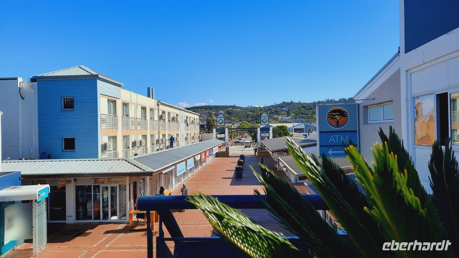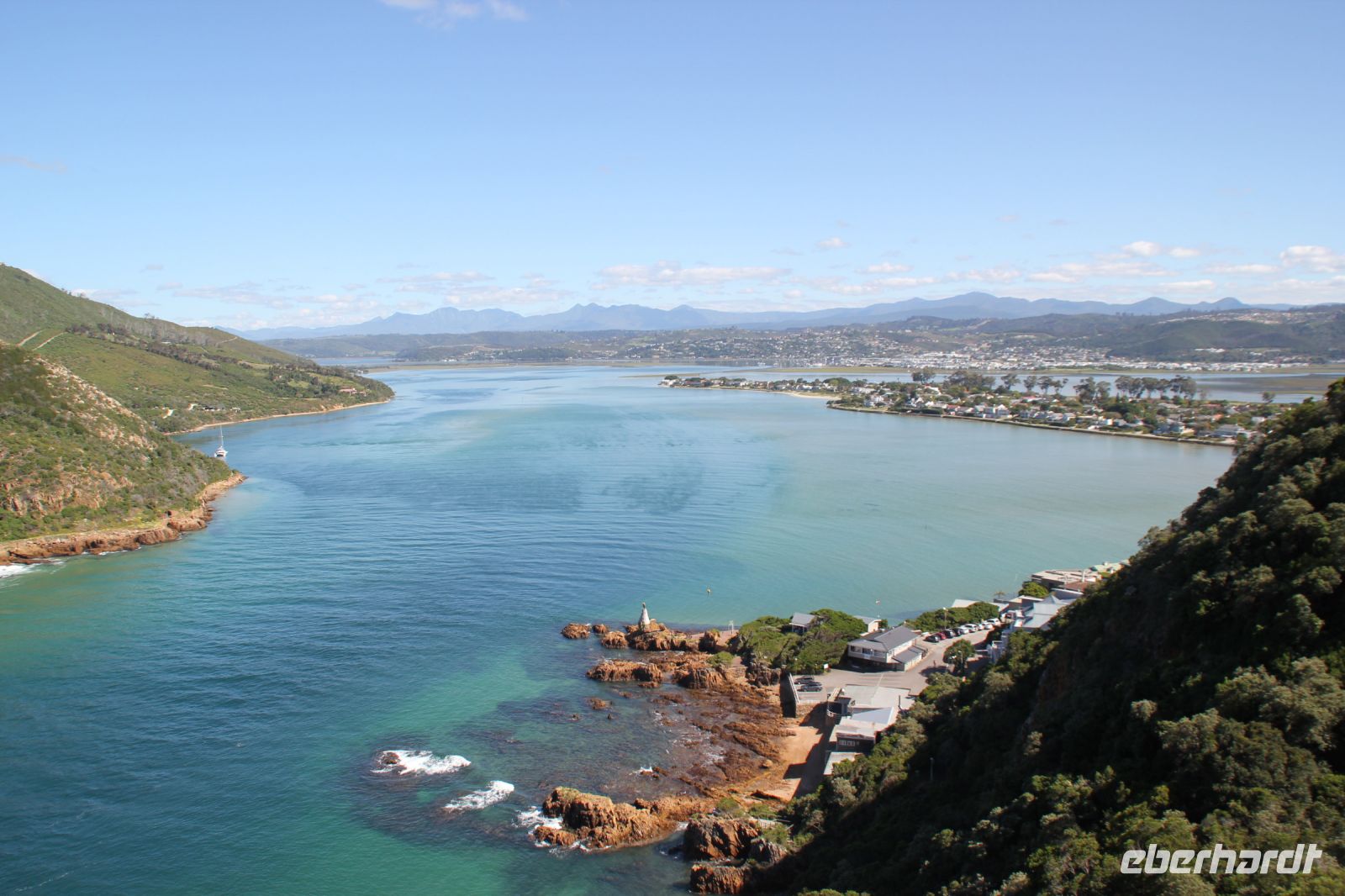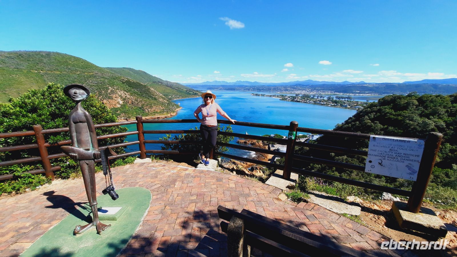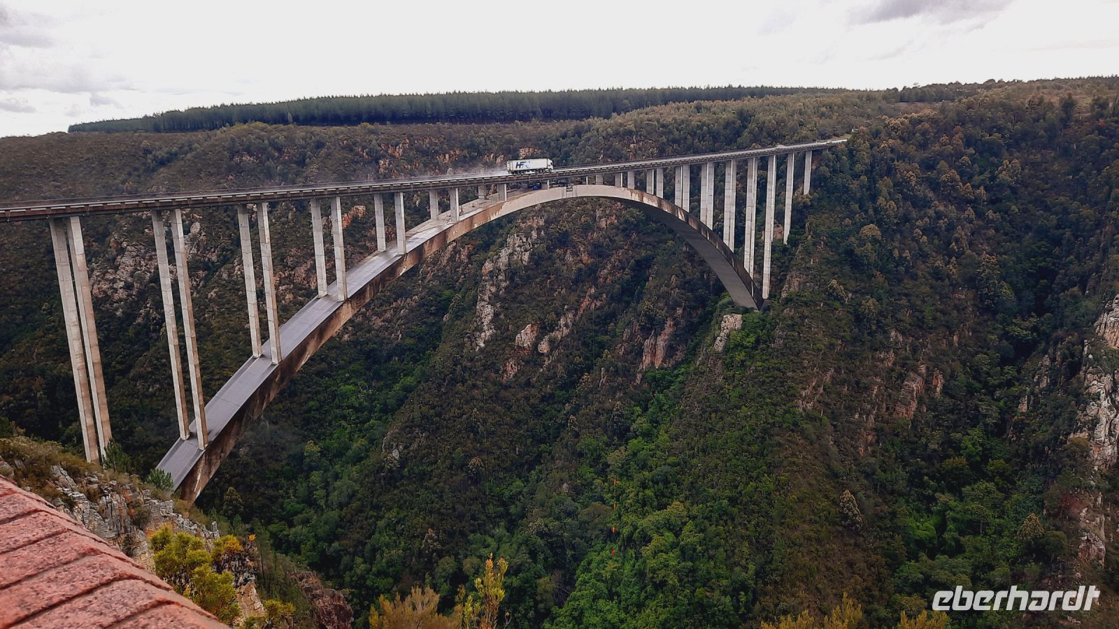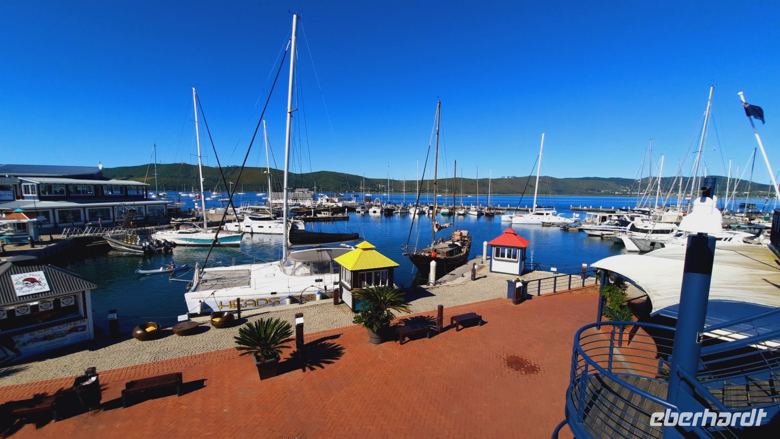 Beim Big Tree hatten wir leider kein Glück, so konnten wir den 1.000 Jahre alten Gelbholzbaum nicht live und in Farbe sehen. Wir fuhren weiter zur legendären Bluekrans-Bridge, einer 190 Meter langen Betonbogenbrücke, die bei Bungee Jumpern sehr beliebt ist. Bei unserer Ankunft störten wir eine Pavian-Familie, die an den Souvenirständen umherspazierte und so fuhren wir rasch weiter. Unterwegs nach Knysna hielten wir noch in Plettenberg Bay, ein Ort der direkt am Meer liegt und für seine langen Sandstrände bei Urlaubern sehr beliebt ist. Am Aussichtspunkt hielten wir Ausschau nach Walen, bemerkten allerdings, dass wir heute kein Glück hatten. Also machten wir uns auf den Weg nach Knysna, ebenfalls ein sehr beliebter Urlaubsort in einer 20 Quadratkilometer großen Lagune. Der Ort liegt am Fuß der Outeniqua Berge und ist weit bekannt für seine Austern. Wir checkten im Hotel ein und trafen uns zum gemeinsamen Abendessen an der Waterfront, welche dem großen Vorbild in Kapstadt nachempfunden wurde und ließen uns frischen Fisch schmecken.