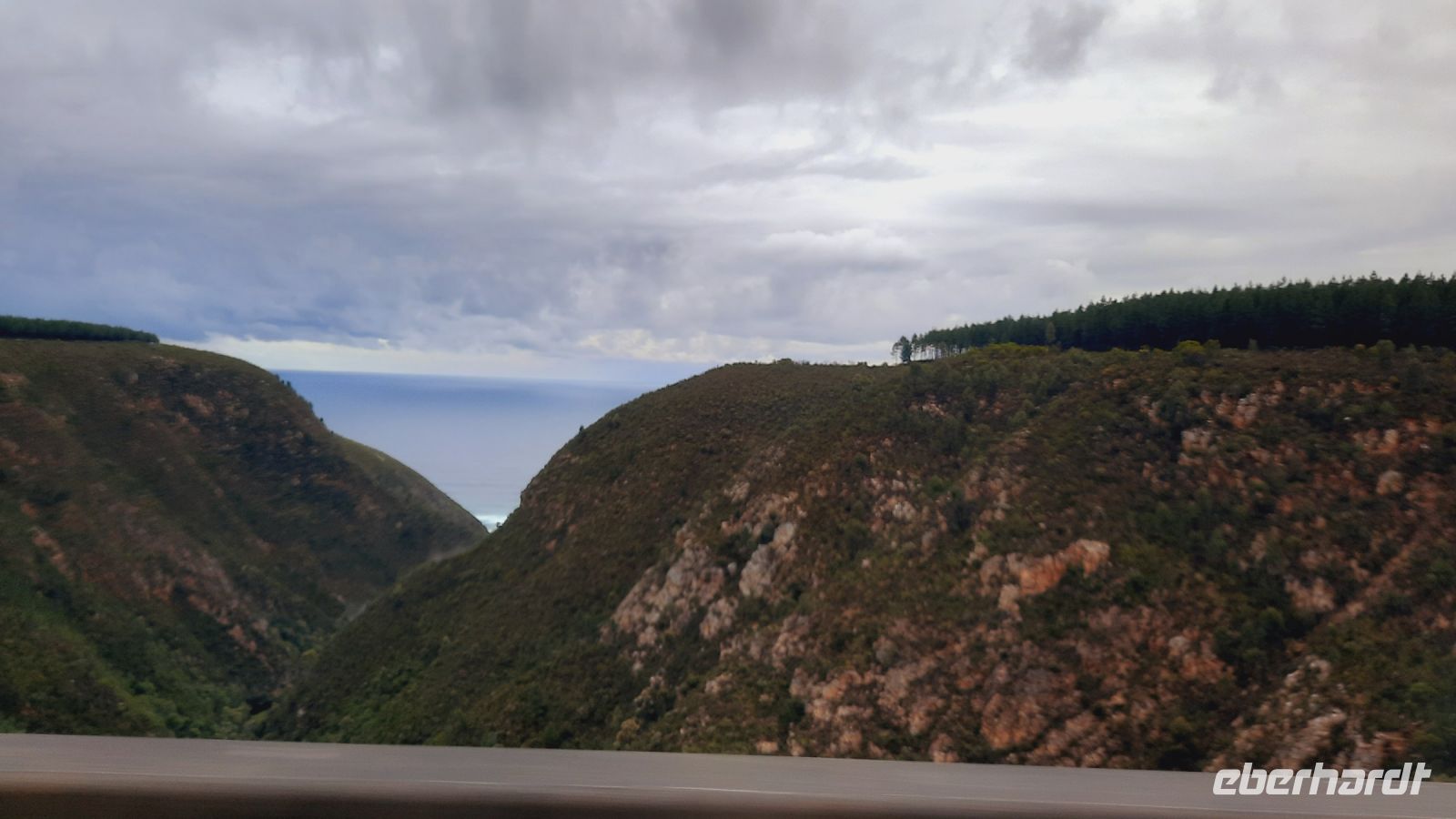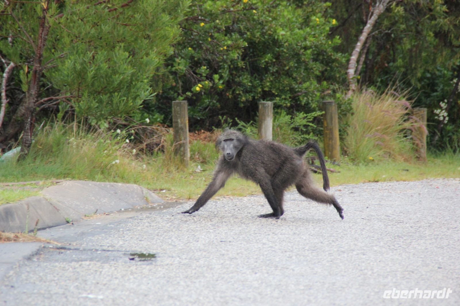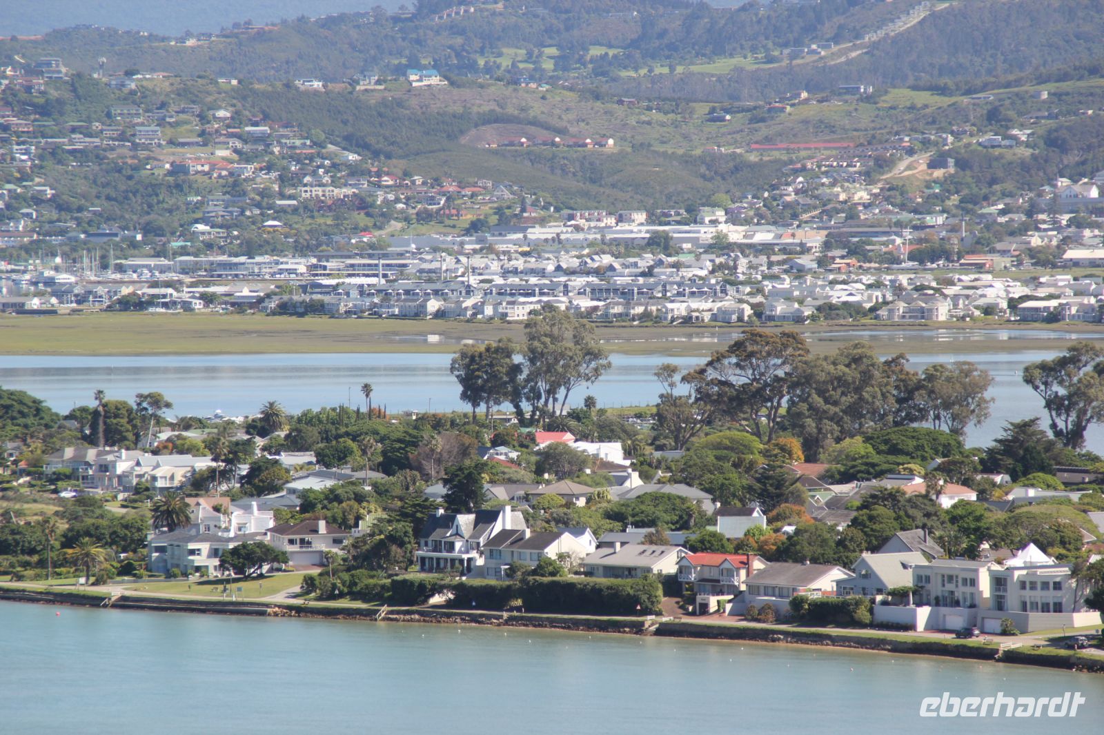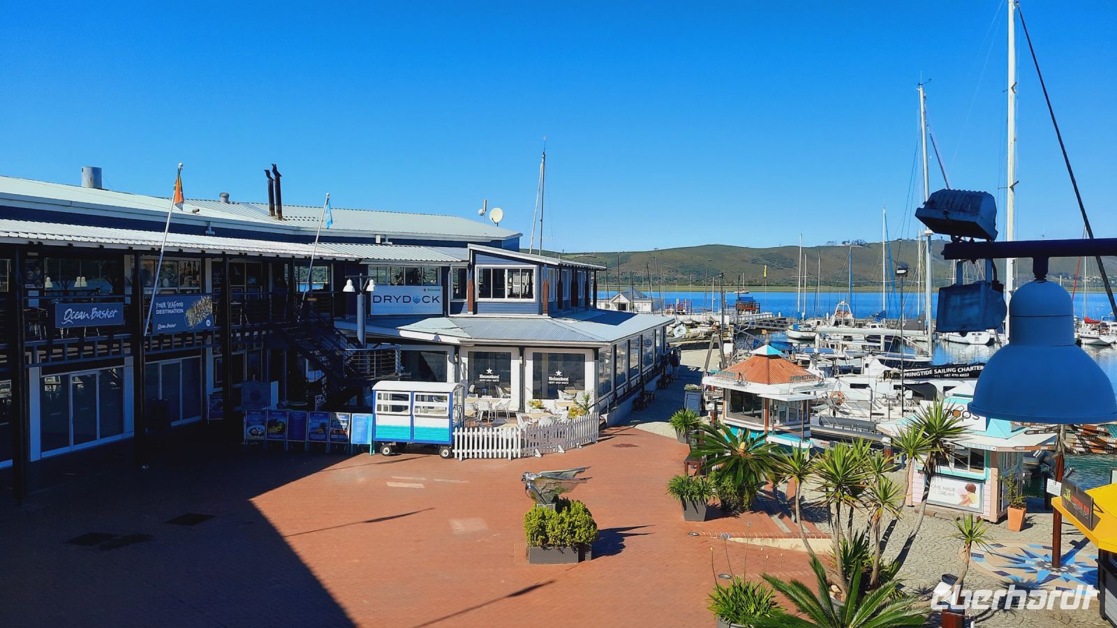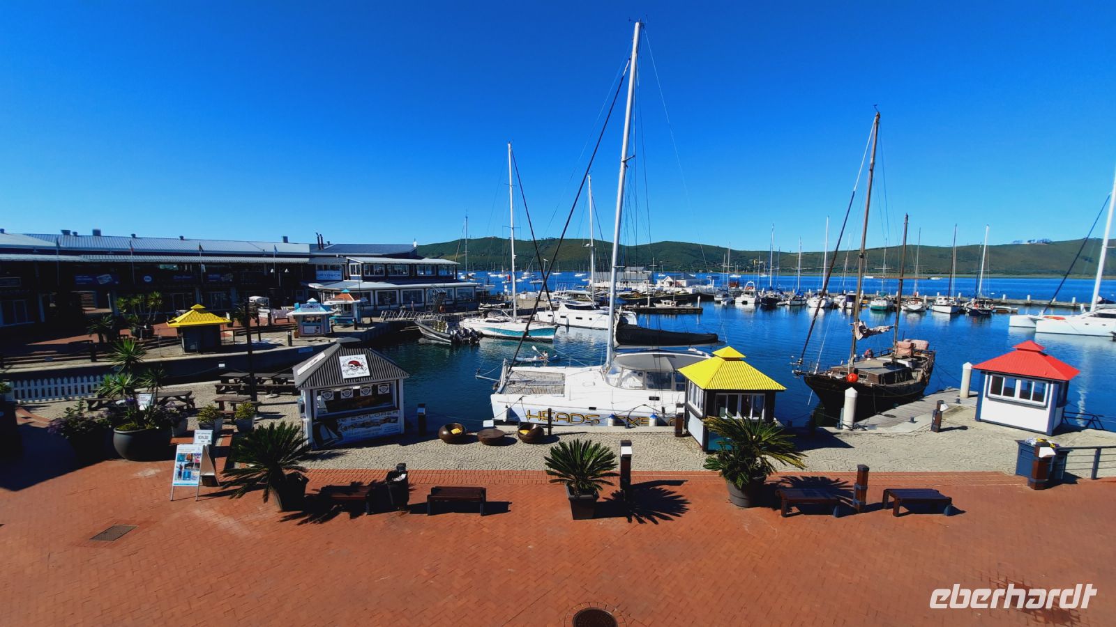 Beim Big Tree hatten wir leider kein Glück, so konnten wir den 1.000 Jahre alten Gelbholzbaum nicht live und in Farbe sehen. Wir fuhren weiter zur legendären Bluekrans-Bridge, einer 190 Meter langen Betonbogenbrücke, die bei Bungee Jumpern sehr beliebt ist. Bei unserer Ankunft störten wir eine Pavian-Familie, die an den Souvenirständen umherspazierte und so fuhren wir rasch weiter. Unterwegs nach Knysna hielten wir noch in Plettenberg Bay, ein Ort der direkt am Meer liegt und für seine langen Sandstrände bei Urlaubern sehr beliebt ist. Am Aussichtspunkt hielten wir Ausschau nach Walen, bemerkten allerdings, dass wir heute kein Glück hatten. Also machten wir uns auf den Weg nach Knysna, ebenfalls ein sehr beliebter Urlaubsort in einer 20 Quadratkilometer großen Lagune. Der Ort liegt am Fuß der Outeniqua Berge und ist weit bekannt für seine Austern. Wir checkten im Hotel ein und trafen uns zum gemeinsamen Abendessen an der Waterfront, welche dem großen Vorbild in Kapstadt nachempfunden wurde und ließen uns frischen Fisch schmecken.
