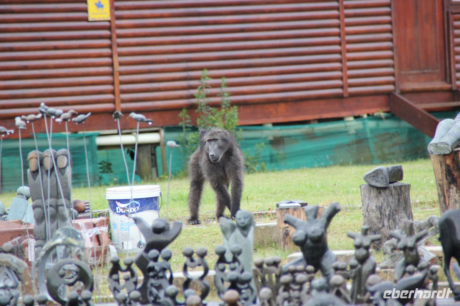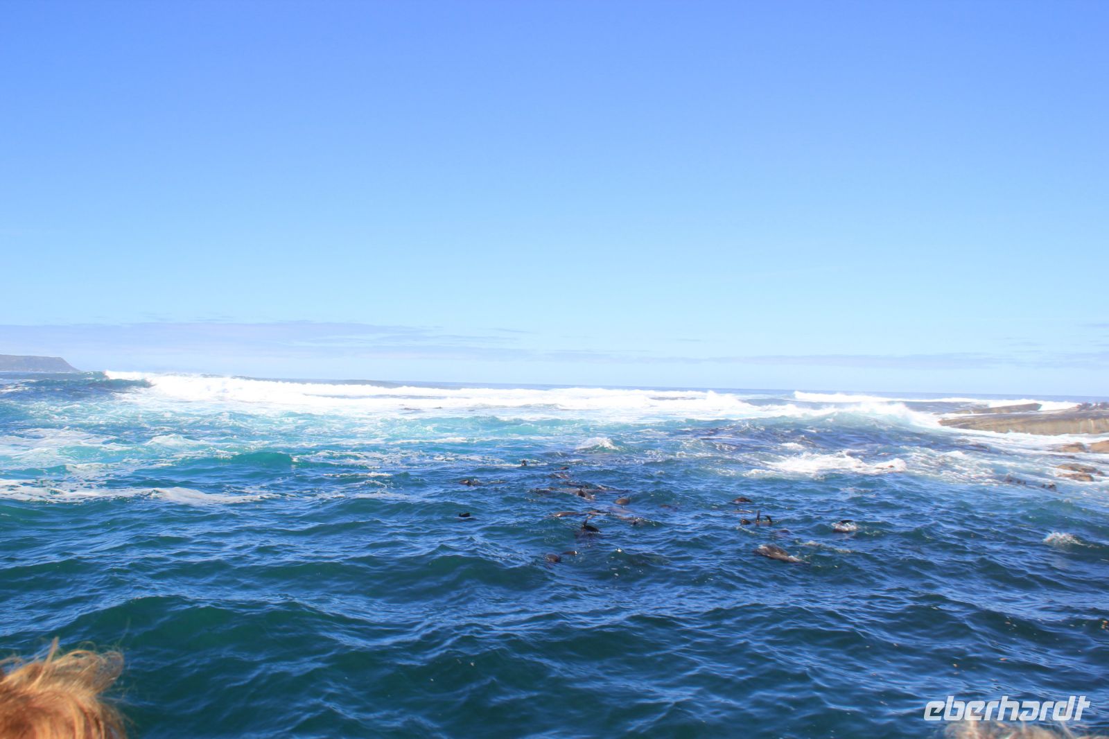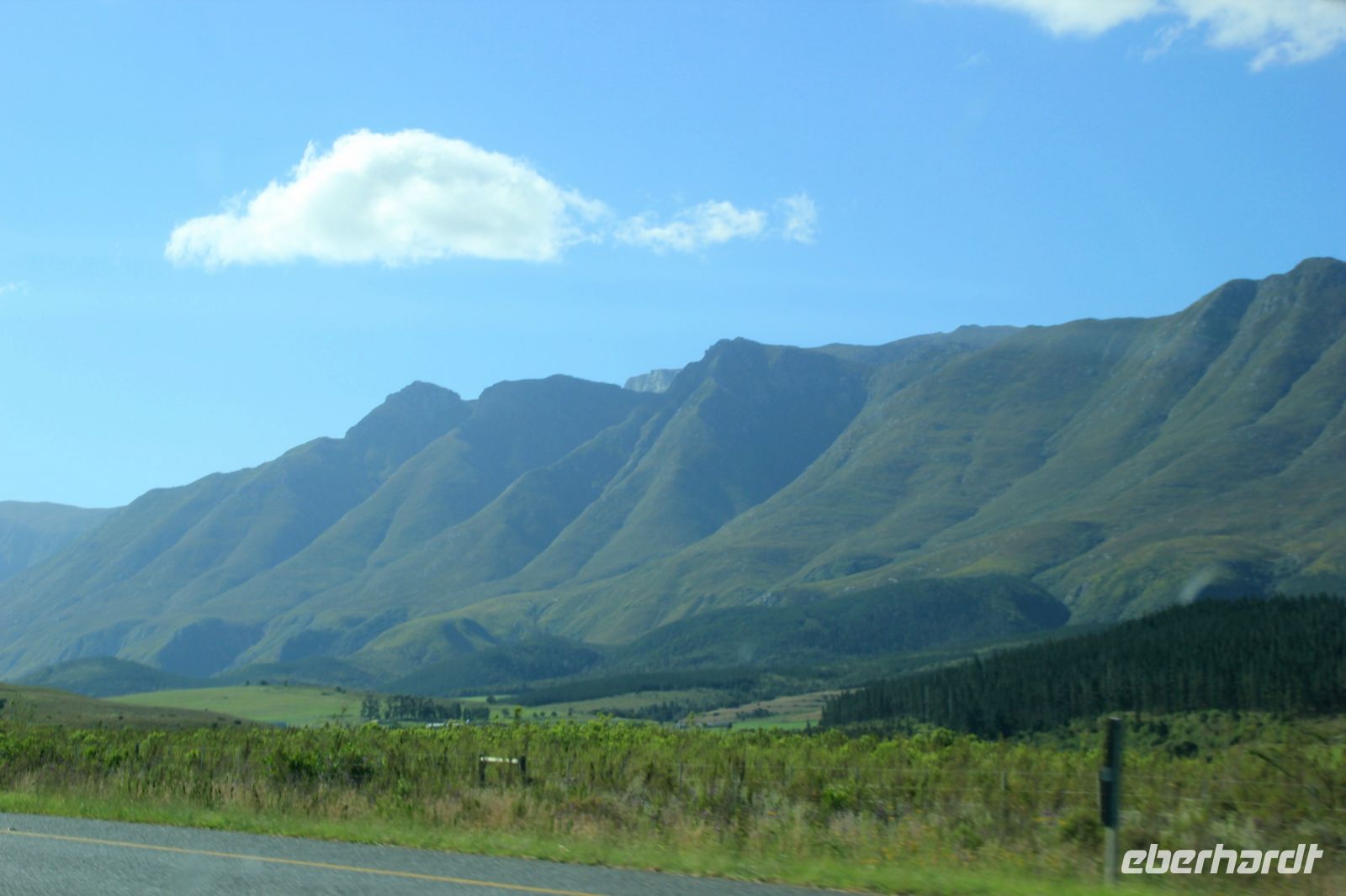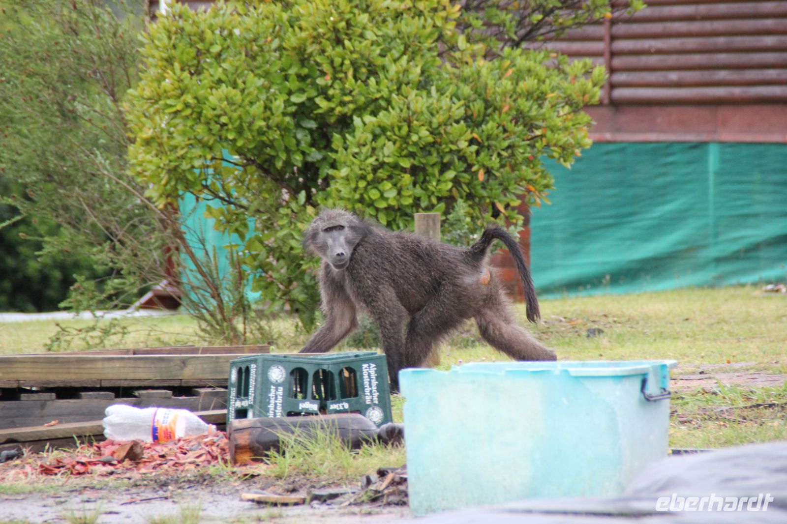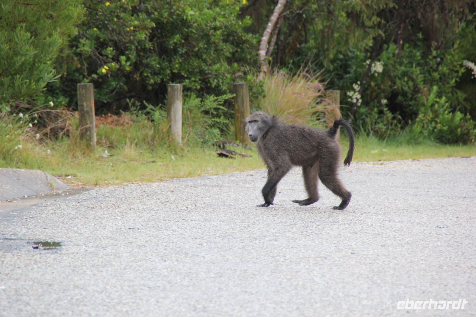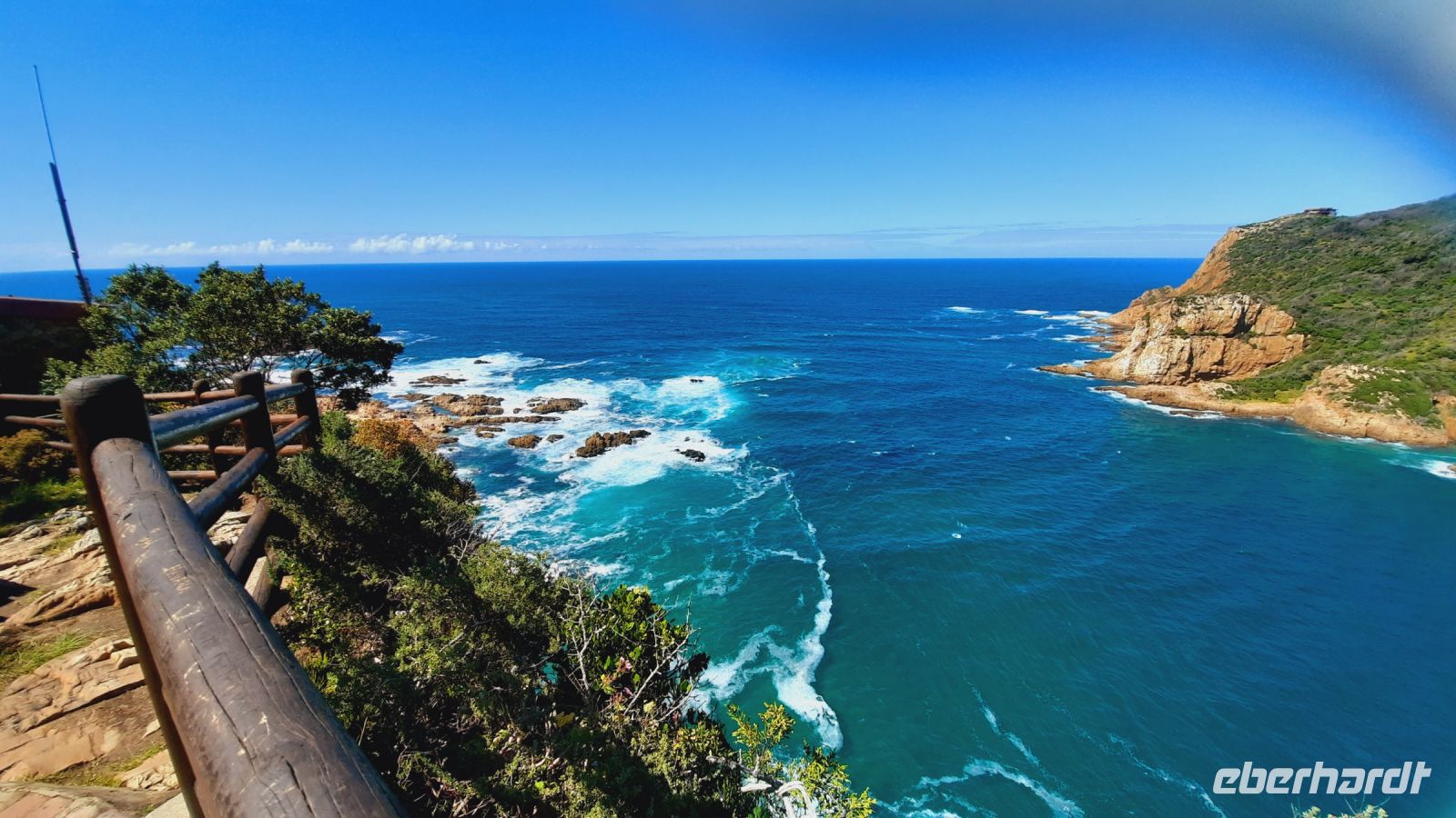 Beim Big Tree hatten wir leider kein Glück, so konnten wir den 1.000 Jahre alten Gelbholzbaum nicht live und in Farbe sehen. Wir fuhren weiter zur legendären Bluekrans-Bridge, einer 190 Meter langen Betonbogenbrücke, die bei Bungee Jumpern sehr beliebt ist. Bei unserer Ankunft störten wir eine Pavian-Familie, die an den Souvenirständen umherspazierte und so fuhren wir rasch weiter. Unterwegs nach Knysna hielten wir noch in Plettenberg Bay, ein Ort der direkt am Meer liegt und für seine langen Sandstrände bei Urlaubern sehr beliebt ist. Am Aussichtspunkt hielten wir Ausschau nach Walen, bemerkten allerdings, dass wir heute kein Glück hatten. Also machten wir uns auf den Weg nach Knysna, ebenfalls ein sehr beliebter Urlaubsort in einer 20 Quadratkilometer großen Lagune. Der Ort liegt am Fuß der Outeniqua Berge und ist weit bekannt für seine Austern. Wir checkten im Hotel ein und trafen uns zum gemeinsamen Abendessen an der Waterfront, welche dem großen Vorbild in Kapstadt nachempfunden wurde und ließen uns frischen Fisch schmecken.