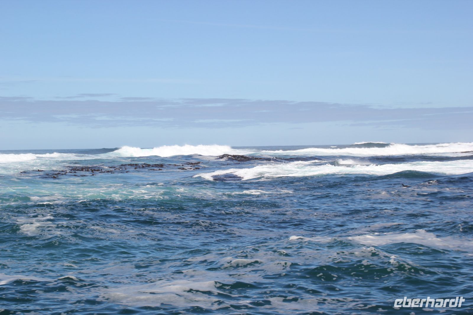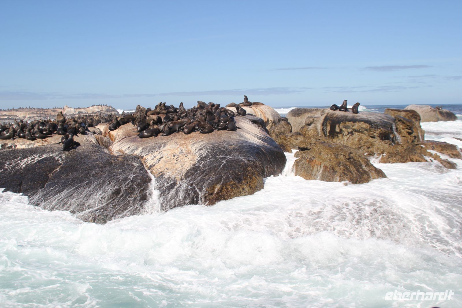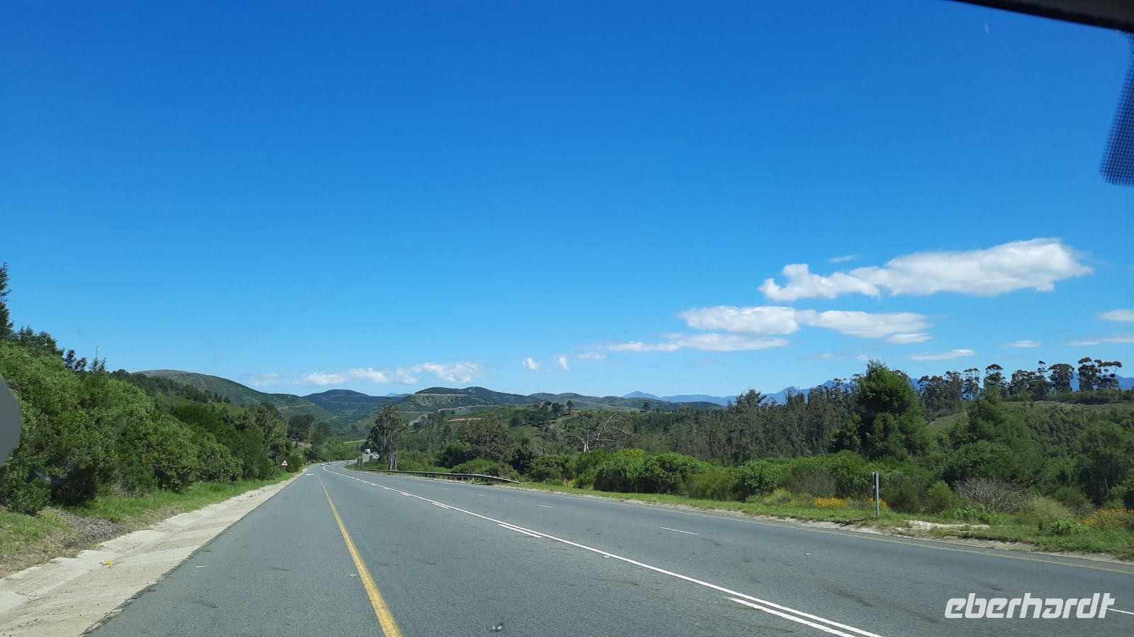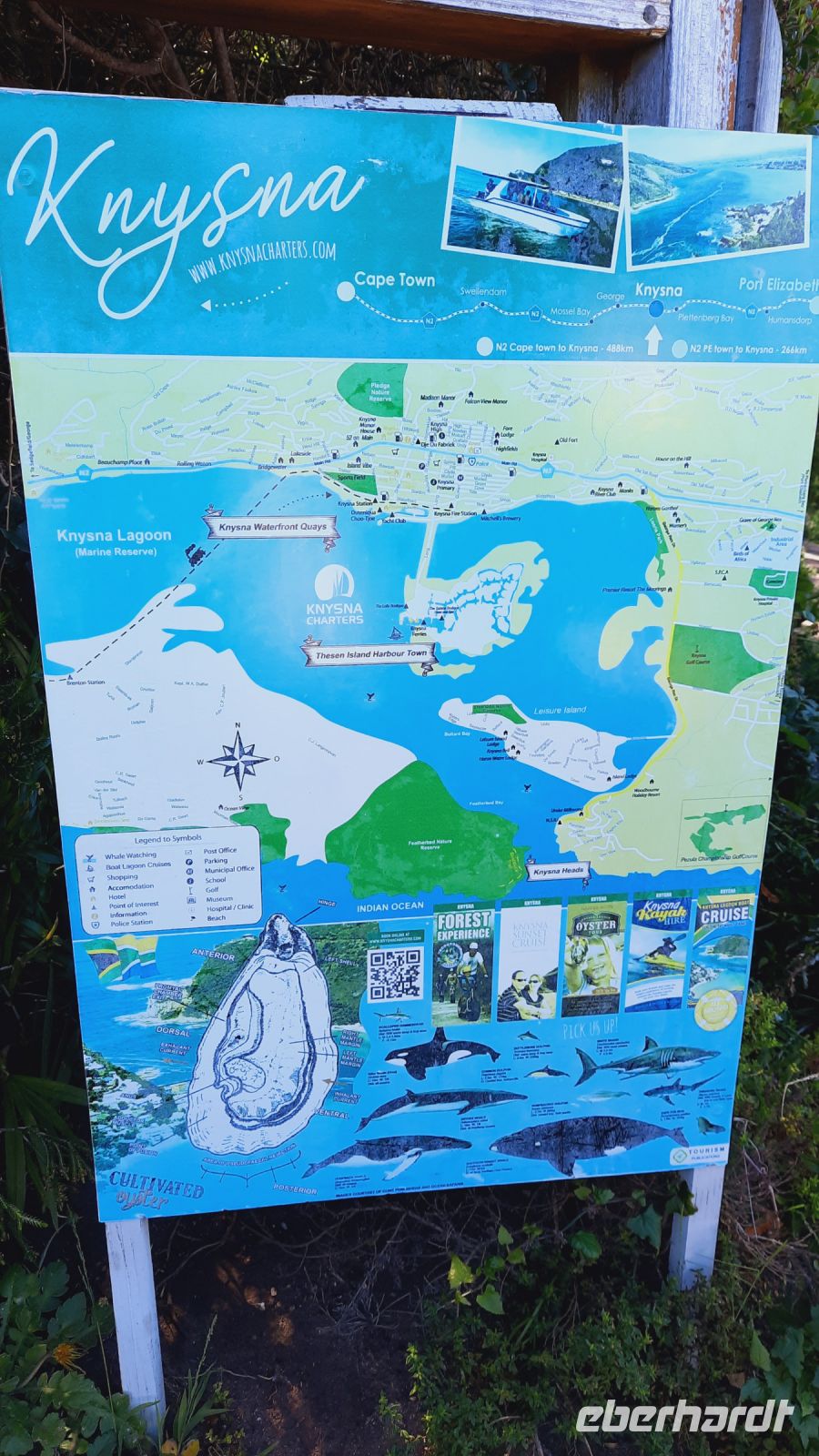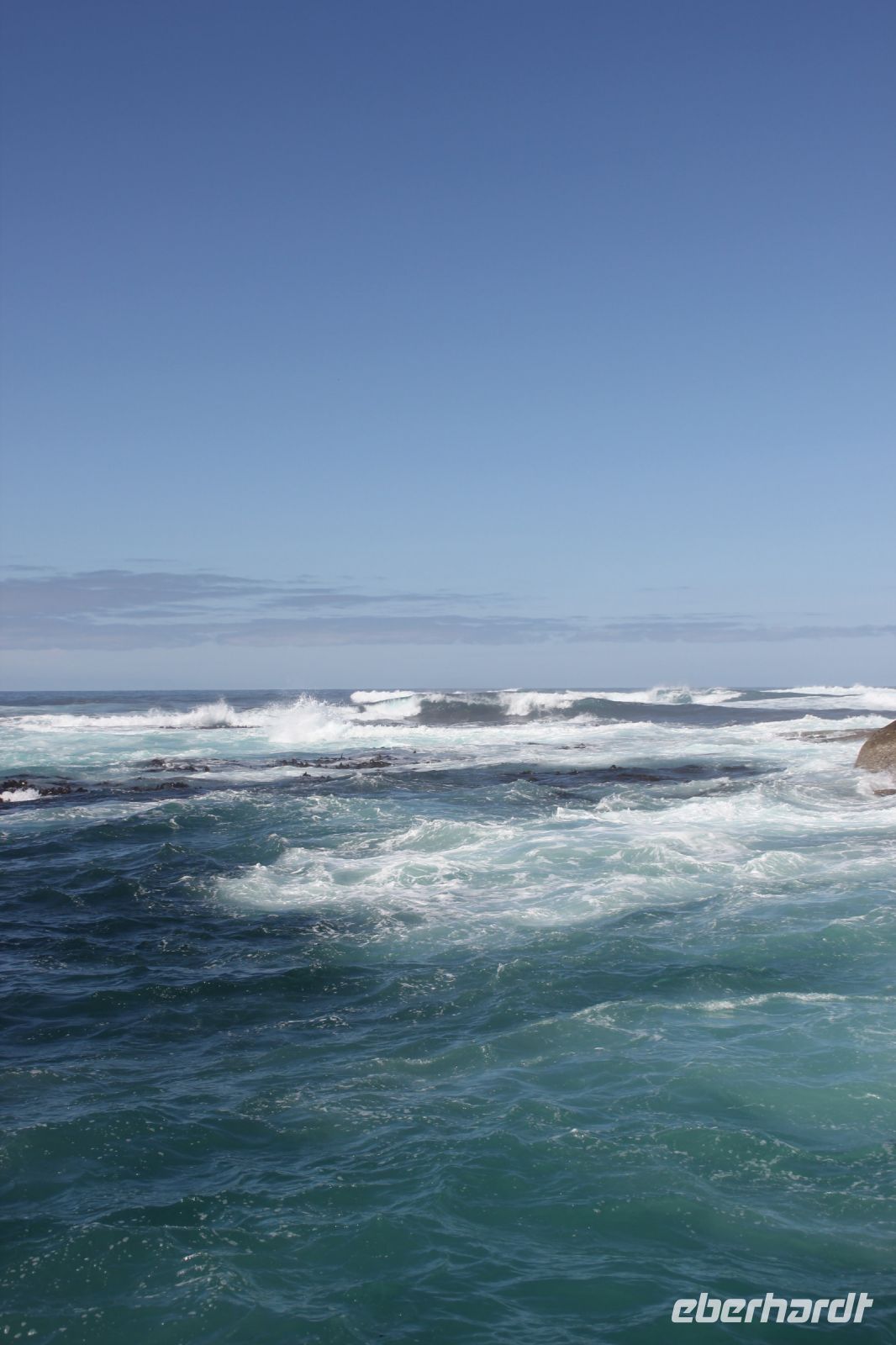 Beim Big Tree hatten wir leider kein Glück, so konnten wir den 1.000 Jahre alten Gelbholzbaum nicht live und in Farbe sehen. Wir fuhren weiter zur legendären Bluekrans-Bridge, einer 190 Meter langen Betonbogenbrücke, die bei Bungee Jumpern sehr beliebt ist. Bei unserer Ankunft störten wir eine Pavian-Familie, die an den Souvenirständen umherspazierte und so fuhren wir rasch weiter. Unterwegs nach Knysna hielten wir noch in Plettenberg Bay, ein Ort der direkt am Meer liegt und für seine langen Sandstrände bei Urlaubern sehr beliebt ist. Am Aussichtspunkt hielten wir Ausschau nach Walen, bemerkten allerdings, dass wir heute kein Glück hatten. Also machten wir uns auf den Weg nach Knysna, ebenfalls ein sehr beliebter Urlaubsort in einer 20 Quadratkilometer großen Lagune. Der Ort liegt am Fuß der Outeniqua Berge und ist weit bekannt für seine Austern. Wir checkten im Hotel ein und trafen uns zum gemeinsamen Abendessen an der Waterfront, welche dem großen Vorbild in Kapstadt nachempfunden wurde und ließen uns frischen Fisch schmecken.