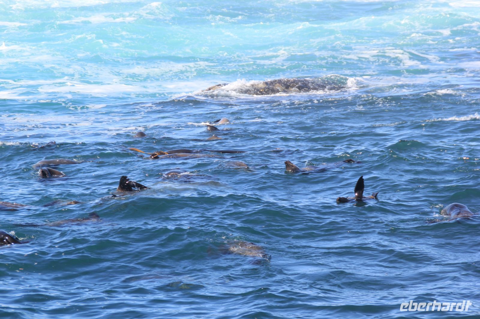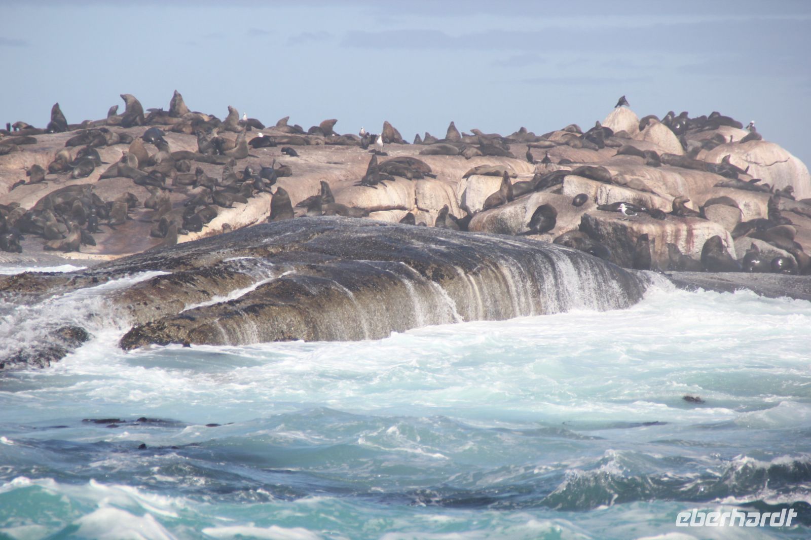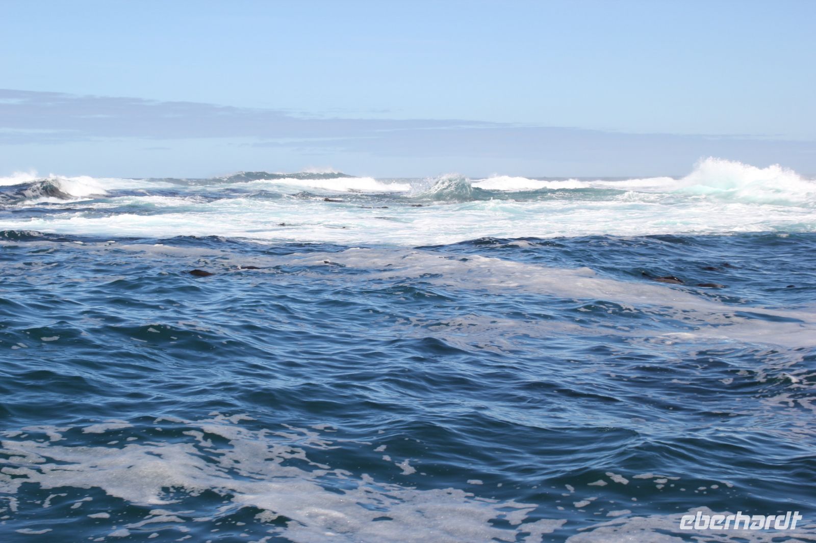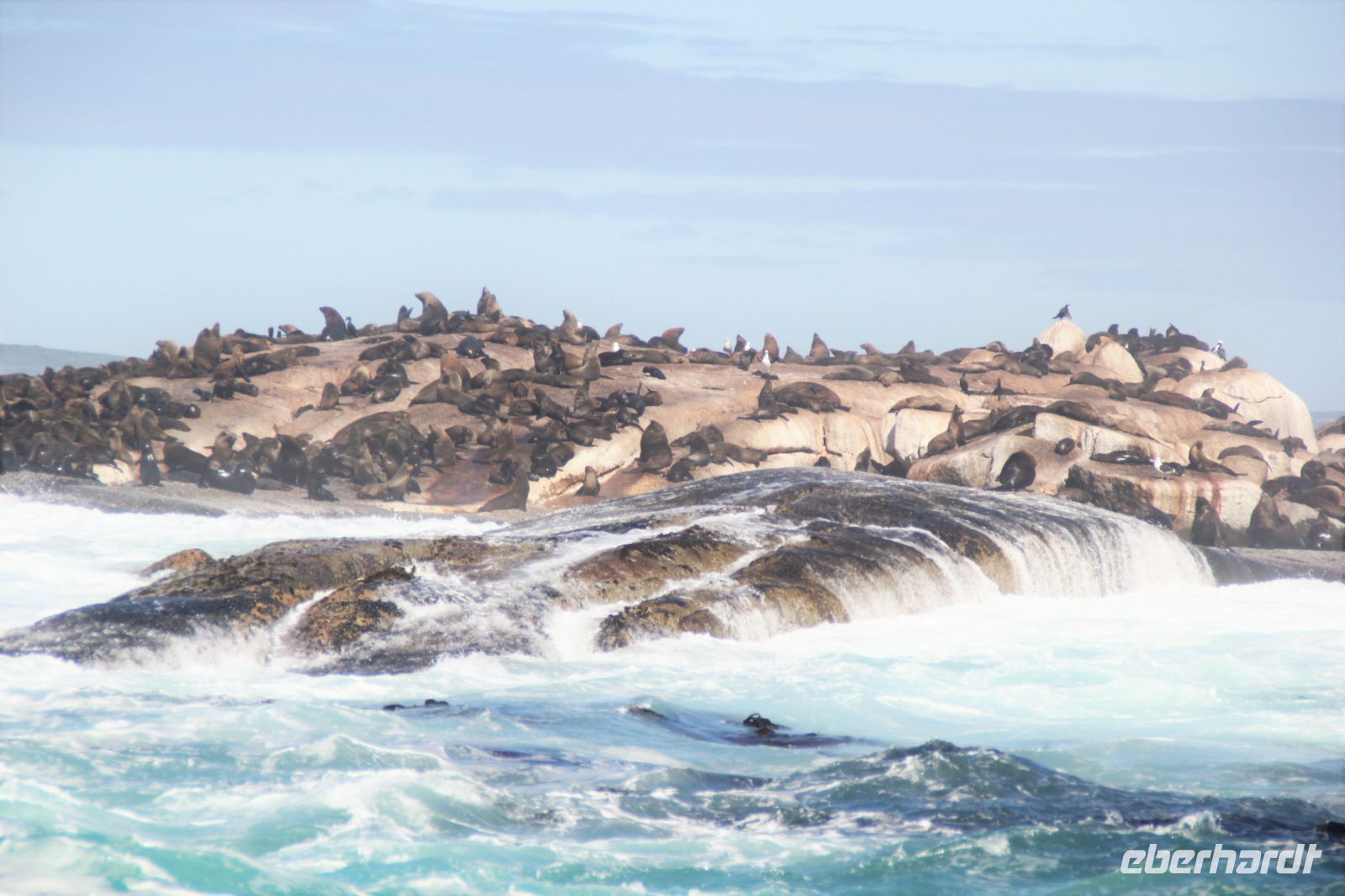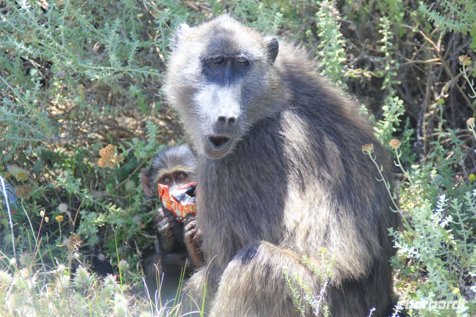 Beim Big Tree hatten wir leider kein Glück, so konnten wir den 1.000 Jahre alten Gelbholzbaum nicht live und in Farbe sehen. Wir fuhren weiter zur legendären Bluekrans-Bridge, einer 190 Meter langen Betonbogenbrücke, die bei Bungee Jumpern sehr beliebt ist. Bei unserer Ankunft störten wir eine Pavian-Familie, die an den Souvenirständen umherspazierte und so fuhren wir rasch weiter. Unterwegs nach Knysna hielten wir noch in Plettenberg Bay, ein Ort der direkt am Meer liegt und für seine langen Sandstrände bei Urlaubern sehr beliebt ist. Am Aussichtspunkt hielten wir Ausschau nach Walen, bemerkten allerdings, dass wir heute kein Glück hatten. Also machten wir uns auf den Weg nach Knysna, ebenfalls ein sehr beliebter Urlaubsort in einer 20 Quadratkilometer großen Lagune. Der Ort liegt am Fuß der Outeniqua Berge und ist weit bekannt für seine Austern. Wir checkten im Hotel ein und trafen uns zum gemeinsamen Abendessen an der Waterfront, welche dem großen Vorbild in Kapstadt nachempfunden wurde und ließen uns frischen Fisch schmecken.