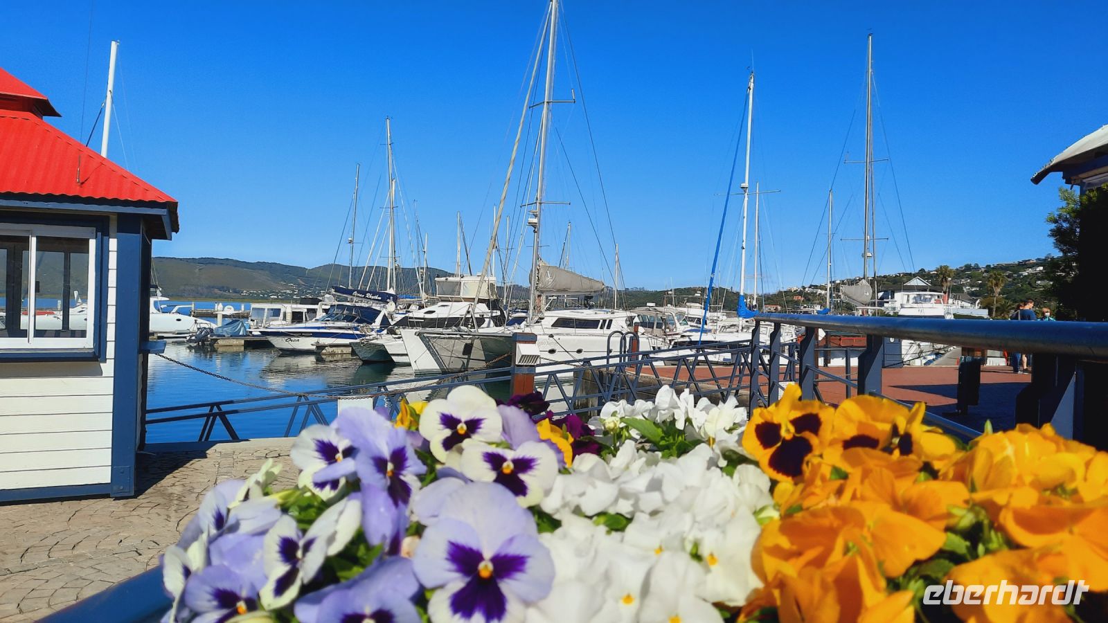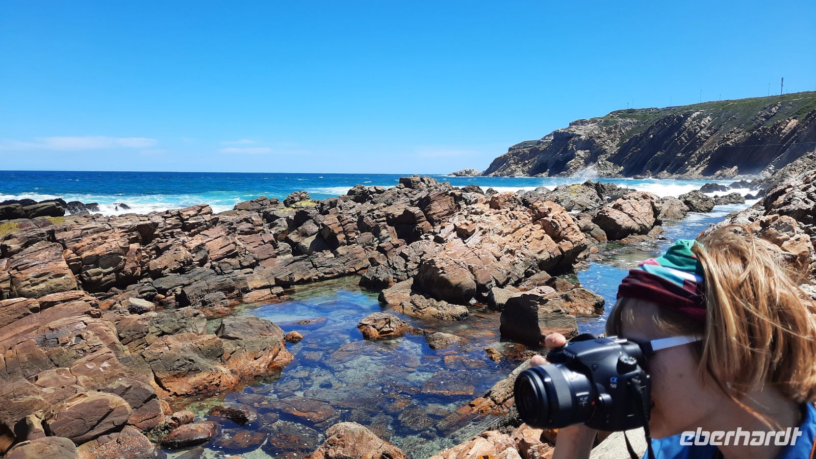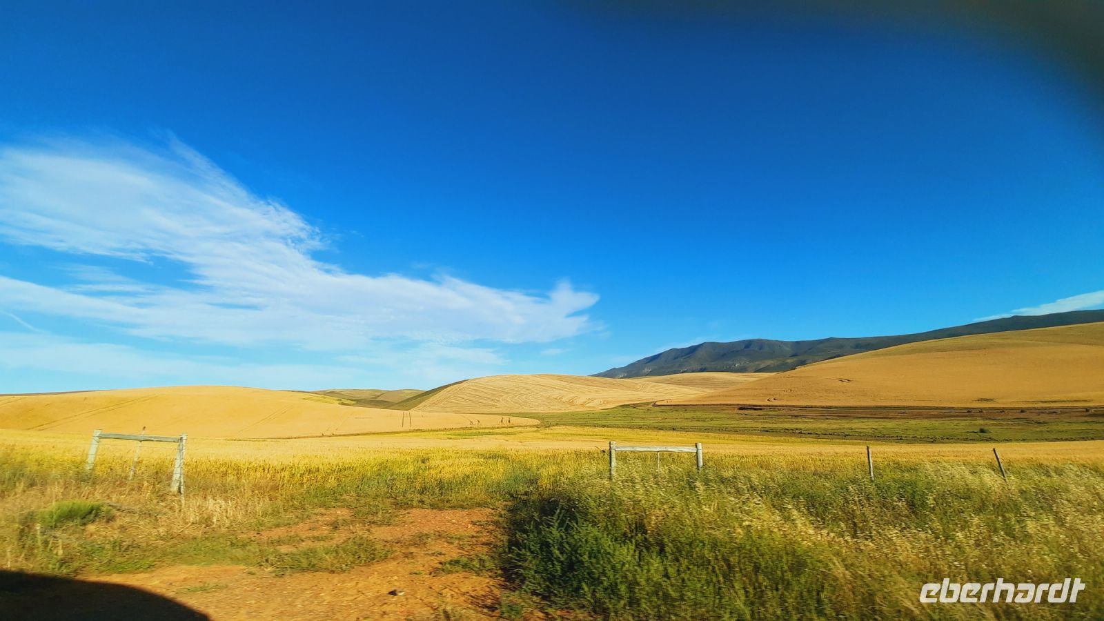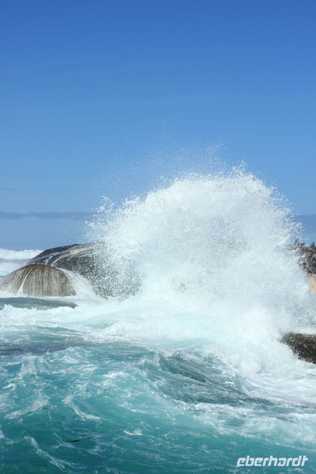 Endlich wieder Sonne, dachten wir uns, als wir diesen Tag begrüßten. Ein langer Tag stand uns bevor, also nix wie los. Wir erkundeten die Waterfront in Knysna und entdeckten sogar einige Rochen im Wasser. Anschließend fuhr Herbie mit uns vorbei an Leisure Island zu den Knysna Heads zur Flussmündung und wir erfuhren von Herbie, dass die Royal Navy die Einfahrt zur Lagune einst als die gefährlichste Einfahrt der Welt bezeichnete. Wir standen oberhalb der Sandsteinklippen und genossen die einmalige Aussicht auf die Lagune und den Indischen Ozean. Während der Weiterreise Richtung Mosselbay durchfuhren wir wirklich schöne Landschaften, sahen tolle Buchten mit weißen Stränden und türkisblauem Meer. Die Wellen brachen und man sah aus der Ferne die weiße Gicht – ein herrliches Spiel der Farben, welches neben der üppig grünen Bewachsung ein traumhaftes Bild abgab. Wir konnten gut verstehen, warum die Gartenroute eine beliebte Strecke bei Urlaubern ist. Wir erreichten Mosselbay und besichtigten das Diaz-Museum. Zuerst ging Herbie mit uns zum Postbaum, welcher seit 1500 als Postumschlagsplatz für Seefahrer genutzt wurde. Anschließend besichtigten wir die originalgetreue Nachbildung der Karavelle, mit der Bartholomäus Diaz 1488 anlandete und somit eine dringend benötigte Frischwasserquelle fand. Nach der Besichtigung zeigte uns Herbie, warum die Stadt ihren Namen trug. Wir stoppten an einem Strand, der über und über mit Muscheln übersäht war. Interessant fanden wir auch die natürlichen Gezeitenpools sowie den Eisladen vom Ice King. Weiter, immer weiter brachte uns Herbie in unserem Kleinbus Richtung Westen. Die Landschaften änderten sich zunehmend in weite Felder, auf denen Getreide angebaut und Viehzucht betrieben wurde. Begleitet wurden wir die ganze Zeit über vom Kap-Faltengürtel auf der rechten Seite. Wir erreichten den Küstenort Hermanus, welcher ein beliebtes Ziel zur Beobachtung von Glattwalen ist. Die riesigen Meeressäuger konnten wir nicht entdecken, dennoch genossen wir die Aussicht auf die Bucht und einen kleinen Klippschliefer. Entlang der Wale-Coast-Route kamen wir in Betty´s Bay an. Dort besuchten wir die Pinguinkolonie am Stony Point und waren ganz verliebt in die kleinen putzigen Tiere. Ganz nah kamen wir ihnen und der ein oder andere entdeckte regelrechte Fotomodels in den Pinguinen. Die Sonne war bereits unter gegangen und nun rasch nach Kapstadt. Spät erreichten wir unser Hotel nahe der Waterfront. Ein langer Tag mit ganz viel Eindrücken ging zu Ende.
