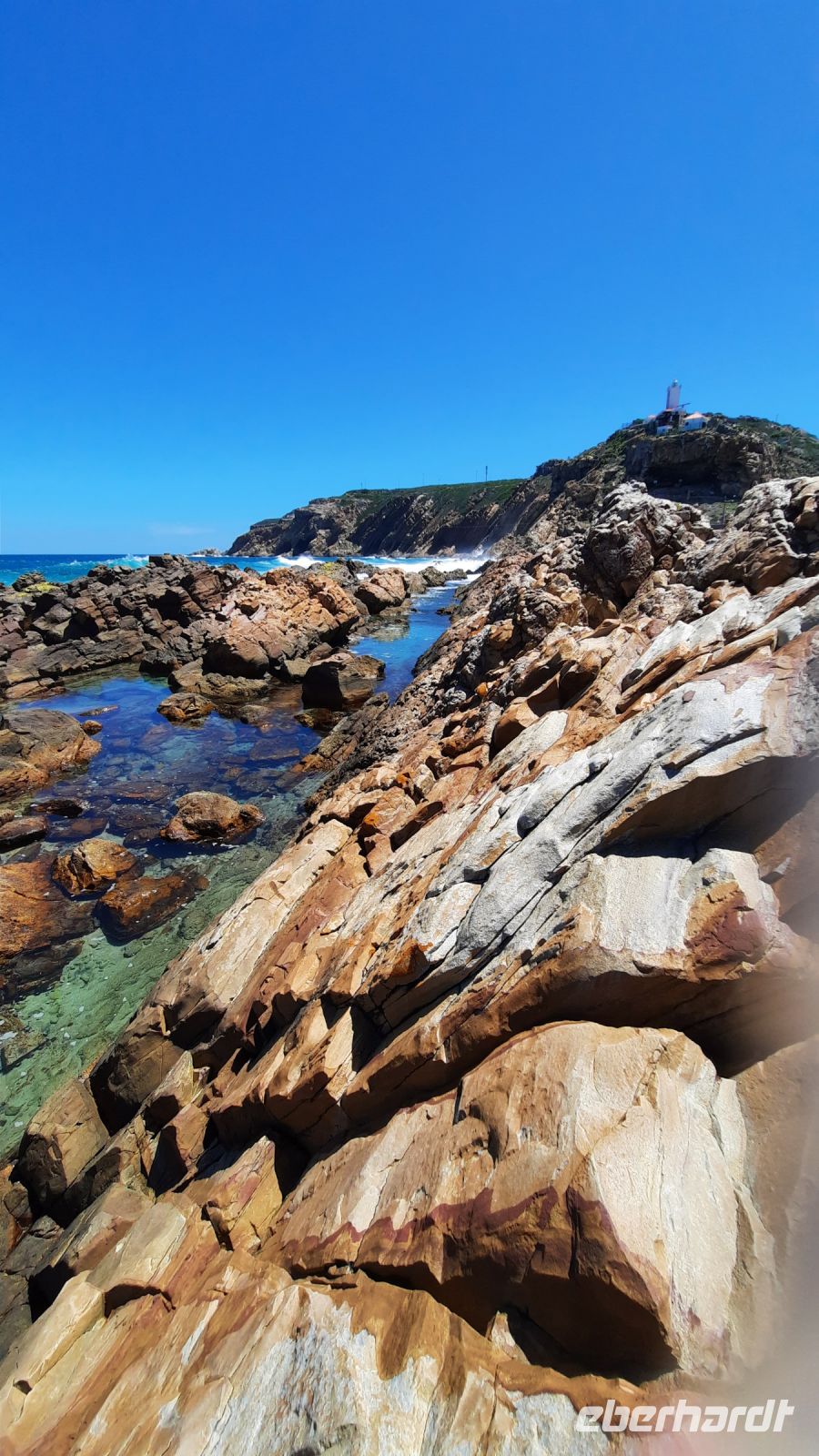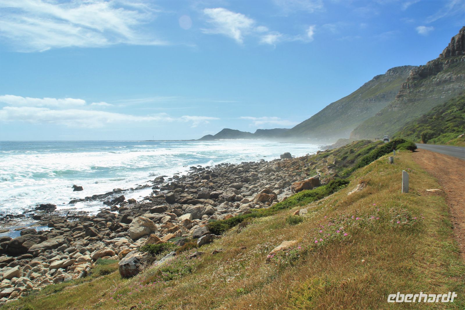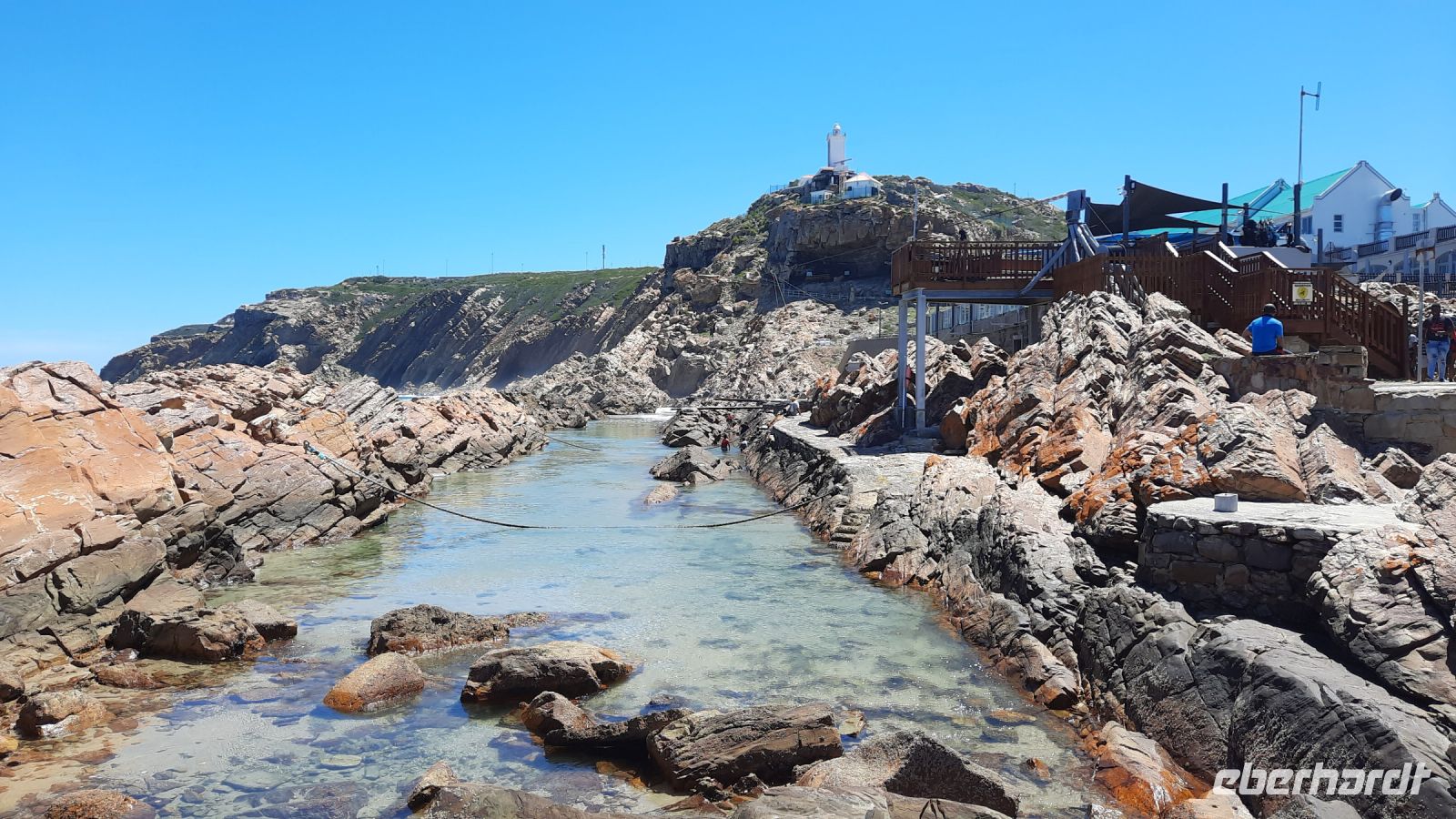 Nun endlich kamen wir am Nationalpark Kap-Halbinsel an. Nun noch schnell mit der Standseilbahn bis zum Leuchtturm gefahren und da waren wir: am Cape Point oder Kap der guten Hoffnung. Das Kap selbst hat eine lange bewegte Vergangenheit. Bartholomäus Diaz, dessen Karavelle wir einen Tag zuvor bin Mosselbay besichtigten, umrundete das Kap 1488. Er war im Auftrag von Prinz Heinrich dem Seefahrer unterwegs und benannte es „Kap der Stürme“. Zehn Jahre später fuhr Vasco da Gama die gleiche Route lang und segelte bis nach Indien. Der portugiesische König Johann II. oder ein Forscher aus Portugal, da sind sich die Quellen uneinig, ernannte das Kap jetzt Gute Hoffnung, da er durch den Erfolg neuer erschlossener Handelswege inspiriert war.