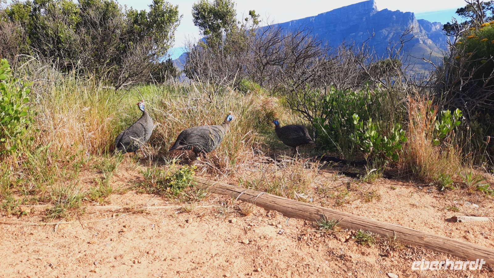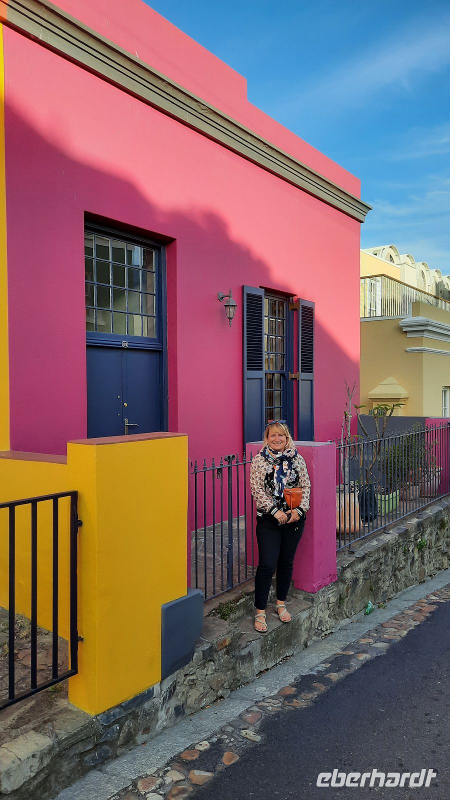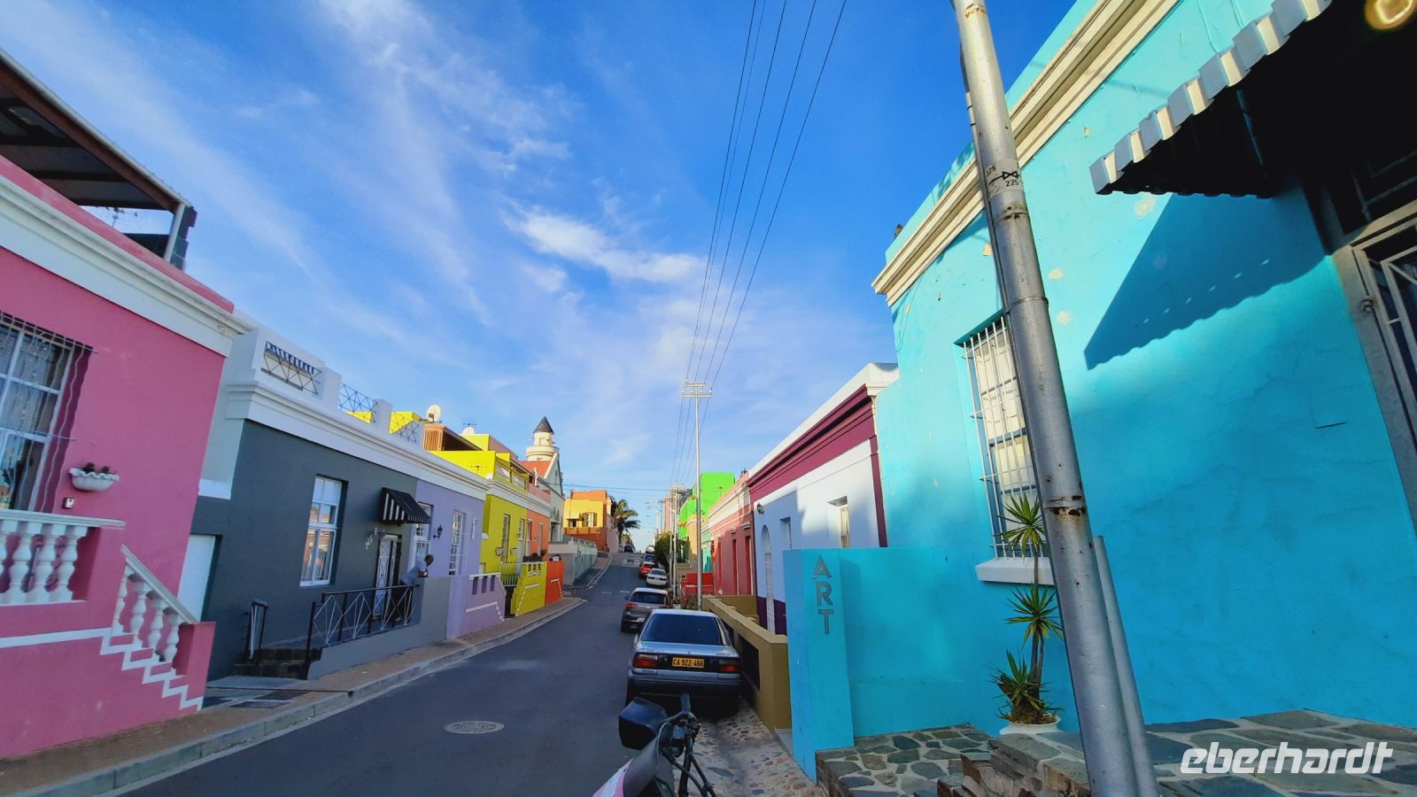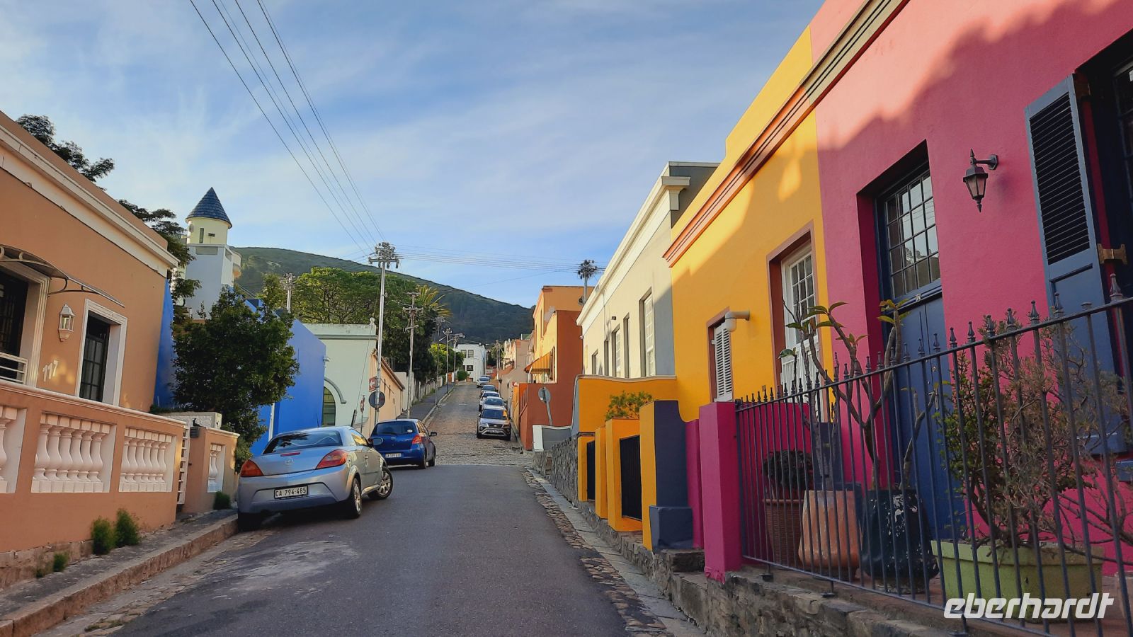 Wieder zurück in Kapstadt wollten wir den berühmten Tafelberg besuchen, doch die Corona-Öffnungszeiten machten uns einen Strich durch die Rechnung. Somit besuchten wir den benachbarten Signal Hill, von welchem man einen unvergleichlichen Blick auf den Hausberg Kapstadts bewundern konnte. Wir beobachteten frei umherlaufende Perlhühner und blickten bis zur Gefängnisinsel von Nelson Mandela. Ein Rundgang im buntesten Stadtteil Kapstadts, im Bo-Kaap Viertel, rundete den Tag ab. Im von Muslimen geprägten Viertel sind fast alle kapholländischen und georgianischen Doppelhäuser im Originalzustand und zählen somit zu den ältesten in ganz Kapstadt. Einer Legende nach, sollen die Häuser ursprünglich weiß gewesen sein, während diese an die Malaien vermietet wurden. Als diese Regel aufgehoben wurde und die Häuser nebst Grundstück gekauft werden durften, malten Sklaven ihre Häuser zum Ausdruck der erlangten Freiheit bunt an.
