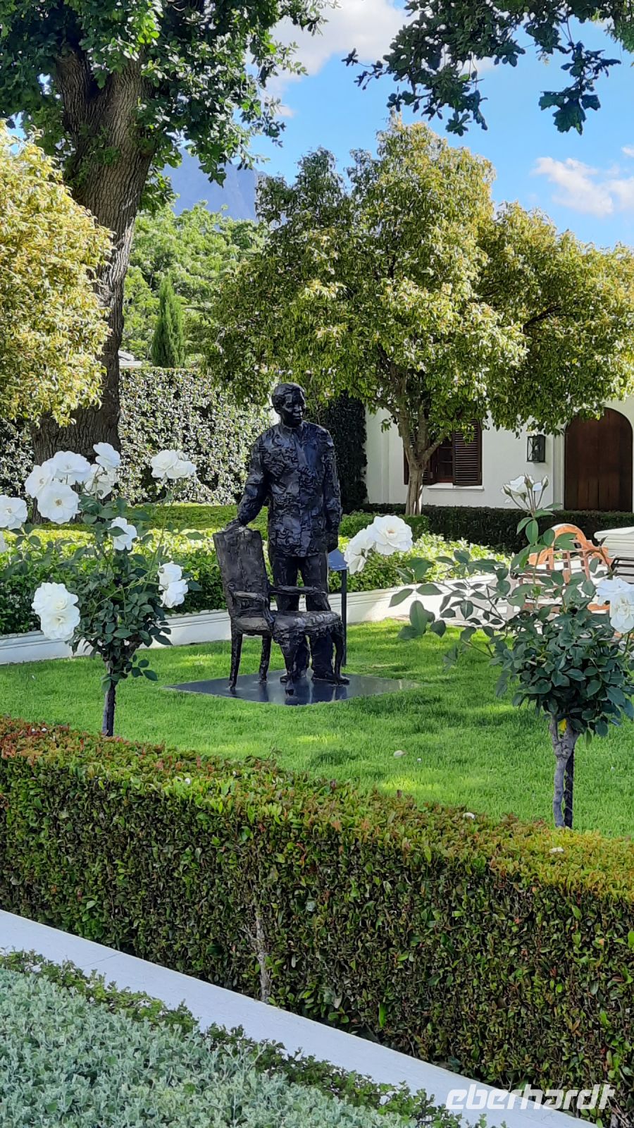 Eine Rundfahrt in der Universitätsstadt Stellenbosch ließ uns erkennen, was für eine tolle gemütliche Studentenstadt sie ist. Überall sah man kleine Cafés, von Birken gesäumte Straßen und zahlreiche kleine bunte Lädchen. Ein kurzer Stopp im Weingut Boschendal gewährte uns einen guten Einblick in ein traditionelles Weingut und in Franschhoek konnten wir erneut die Beine vertreten. Der 1688 von Hugenotten gegründete Ort liegt eingebettet in zahlreiche Wein- und Obstfarmen am Ostende des Drakenstein Valley. Wir schlenderten in dem sehr französisch angehauchten Ort entlang kleiner edler Boutiquen bis zum Hugenottendenkmal, an dem Thomas bereits auf uns wartete. Dieses Denkmal erinnerte an die Vertreibung der Hugenotten aus der europäischen Heimat. Ein letzter Stopp des Tages sollte nun das Drakenstein-Gefängnis sein, in welchem Nelson Mandela bis 1990 die letzten 14 Monate seines Gefängnisaufenthaltes verbracht hatte. Eine große Statue am Eingang erinnerte daran. Auf der Rückfahrt nach Kapstadt sahen wir dann, wie sich langsam eine Wolkendecke über den Tafelberg bildete. Was hatten wir für ein Glück am Vormittag. Nach einer Pause im Hotel brachte uns Thomas zum Abendessen im GOLD-Restaurant, wo ein besonderer Abschiedsabend auf uns wartete. Eine typisch afrikanische Trommel- und Gesangsshow wartete auf uns. Gepaart mit typisch afrikanischen Köstlichkeiten konnten wir somit Abschied von Afrika nehmen.