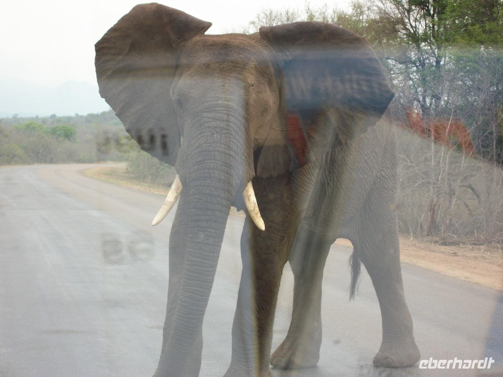 Halb fünf (04:30!!!) treffen wir uns alle an der Rezeption zum Morgenkaffee. Heute geht es zur ersten Exkursion in den Krüger (Kruger) Nationalpark. Als 05:30 die Tore des ca. eine halbe Fahrstunde entfernt liegenden Parks geöffnet werden sind wir gerade am Numbi Gate angekommen - die „Jagd“ auf die „Big Five“ kann beginnen.