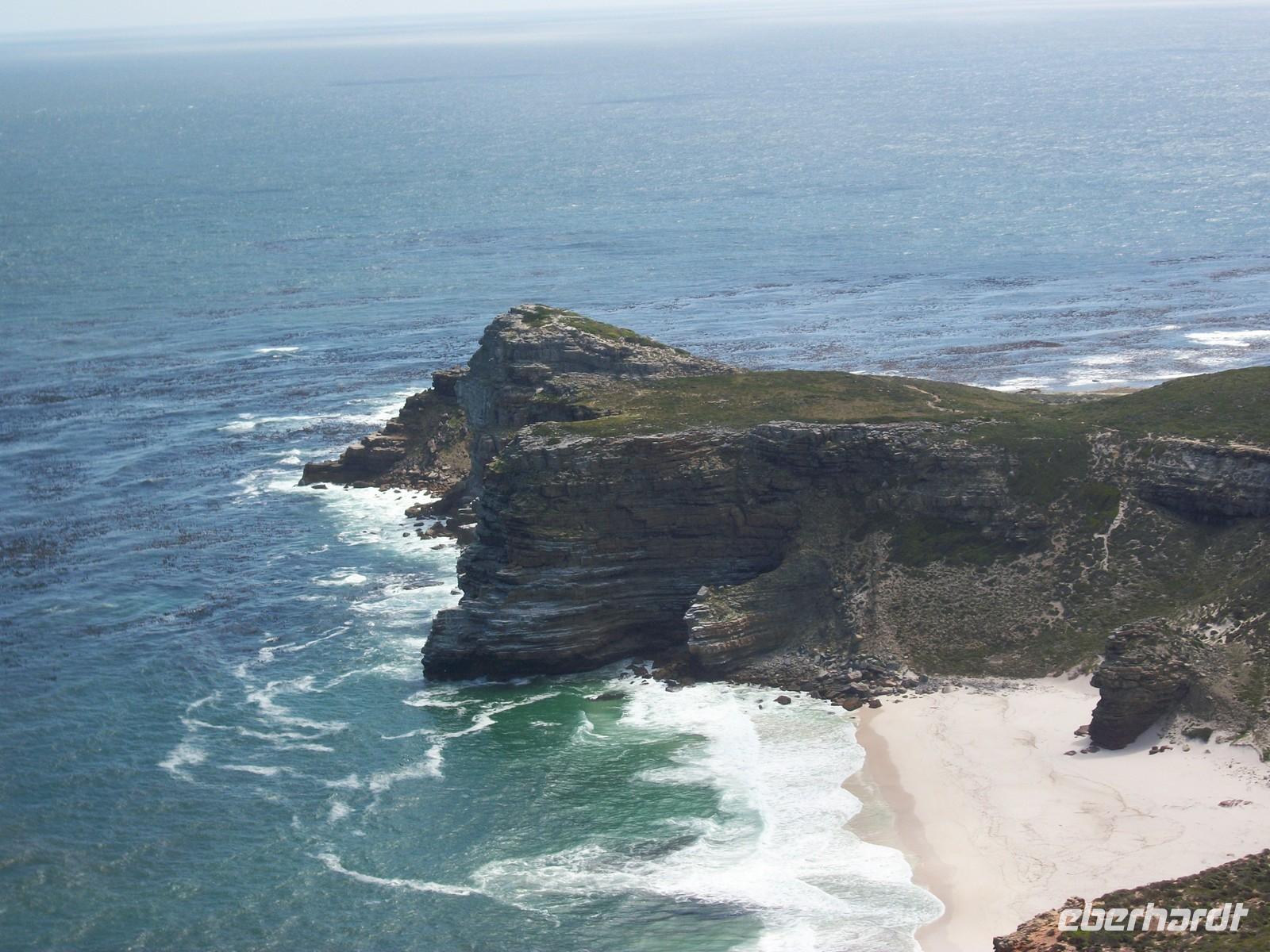 Das Ende der Kap-Halbinsel besteht eigentlich aus zwei Kapspitzen. Neben dem berühmten „Kap der Guten Hoffnung“ ist da auch „Cape Point“ mit dem Leuchtturm, das auf dem Berg 250 Meter über dem Meeresspiegel aufragt. Wir erreichen es bequem mit einer Zahnradbahn und sind wieder einmal beeindruckt von der Schönheit welche sich unseren Augen offenbart.