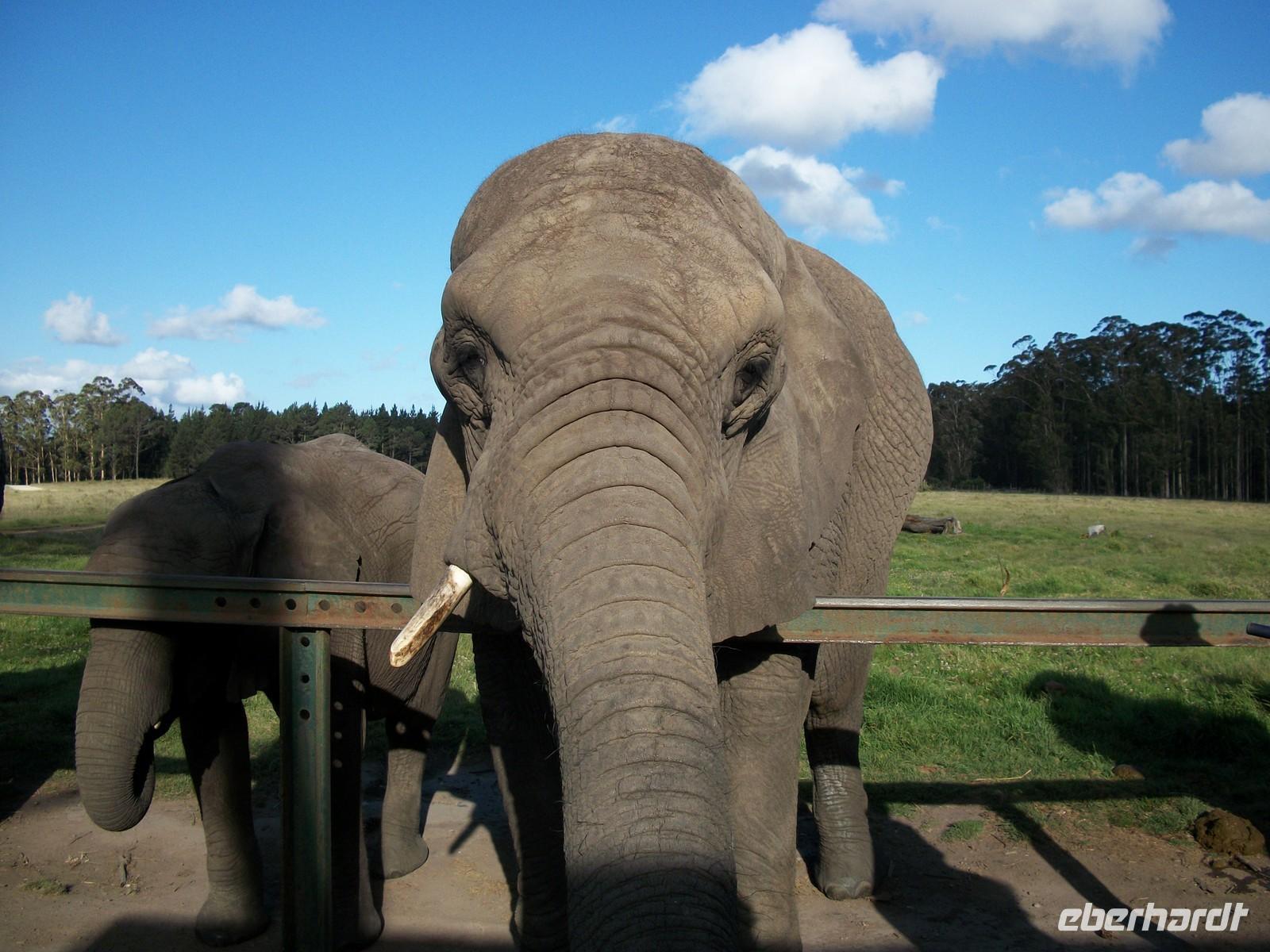 Es ist schon nicht mehr weit bis nach Knysna zum Hotel als wir am Nachmittag den Knysna Elephant Park erreichen. Was uns hier erwartet offenbart sich als einer der Höhepunkte der Reise; Wir füttern und berühren die mächtigen Tiere ohne dass uns irgendwelche Absperrungen von ihnen trennen.